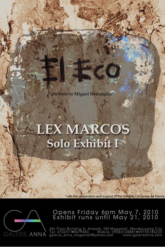 LEX MARCOS’ EL ECO will be exhibited at the GALERIE ANNA, 4th Level SM Megamall A, Mandaluyong City from May 7 to 21, 2010.