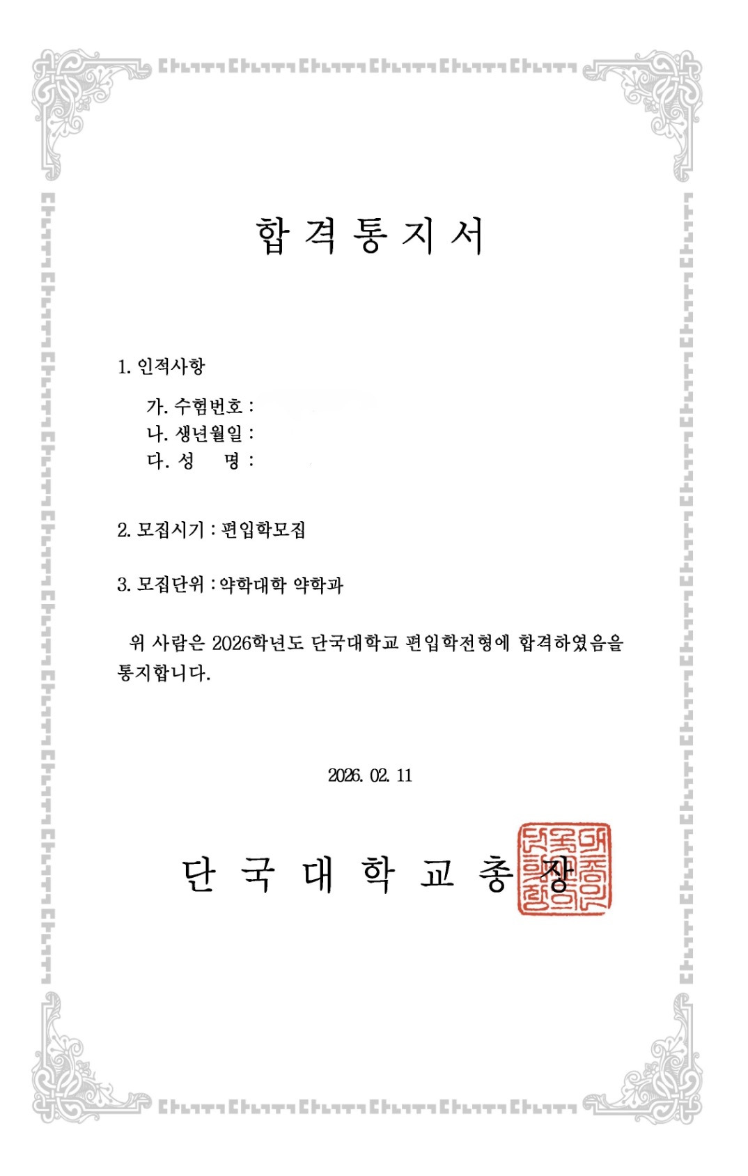 그동안 남몰래 흘린 땀과 눈물이 단국대 약대 최종 합격이라는 최고의 결과로 보답받으시게 되어 정말 기쁩니다.