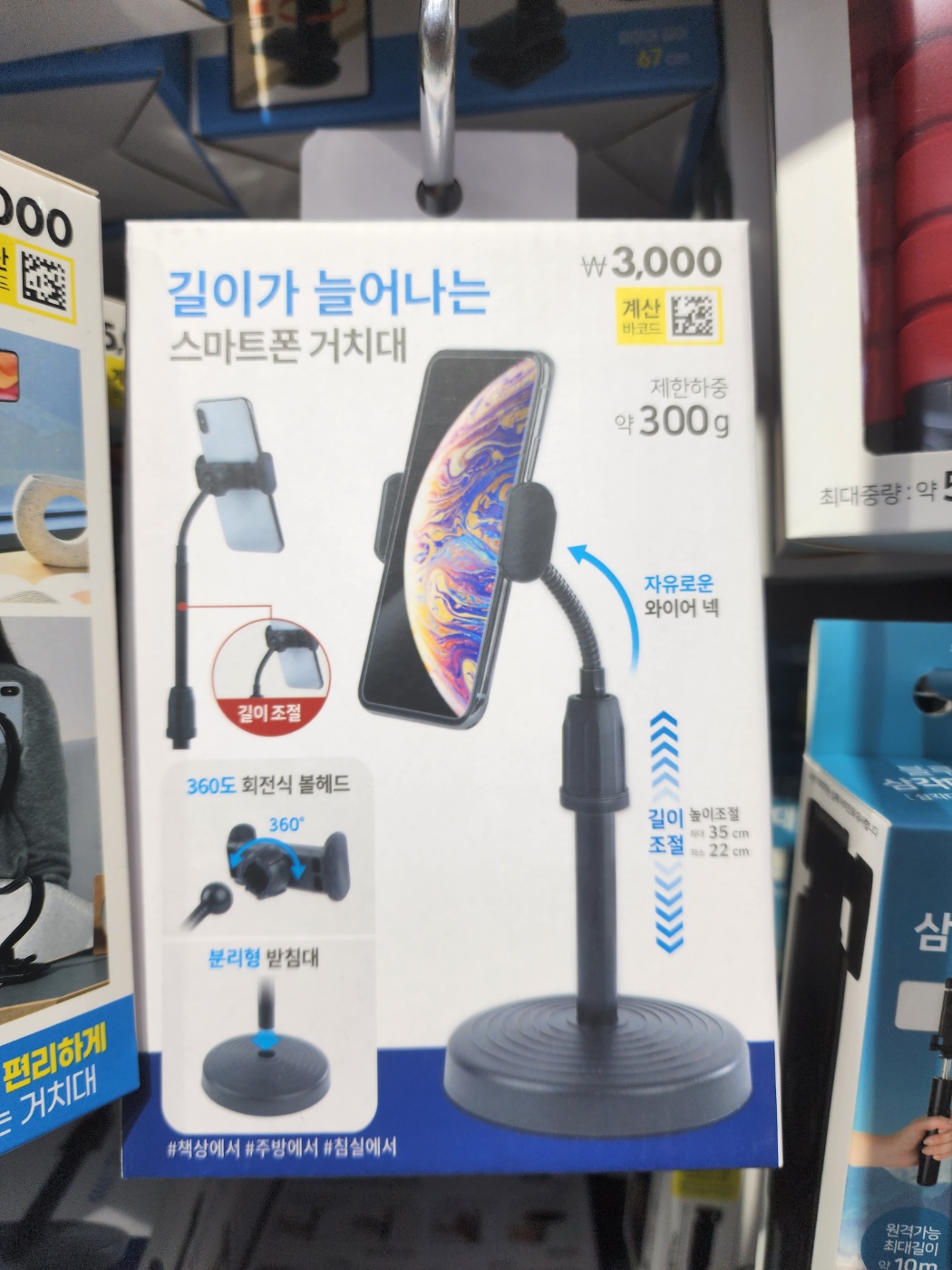 - 캠거치대는 다이소에서 구매 가능(약 3,000~5,000원, 샘플 거치대 첨부파일 참고)