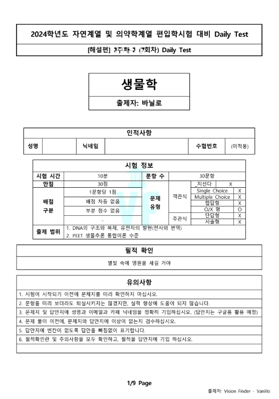 방대한 생물학 지식을 체계적으로 학습하기 위해서는 '중요단원의 반복학습 그리고 오개념 점검' 을 하는 것이 가장 중요합니다.