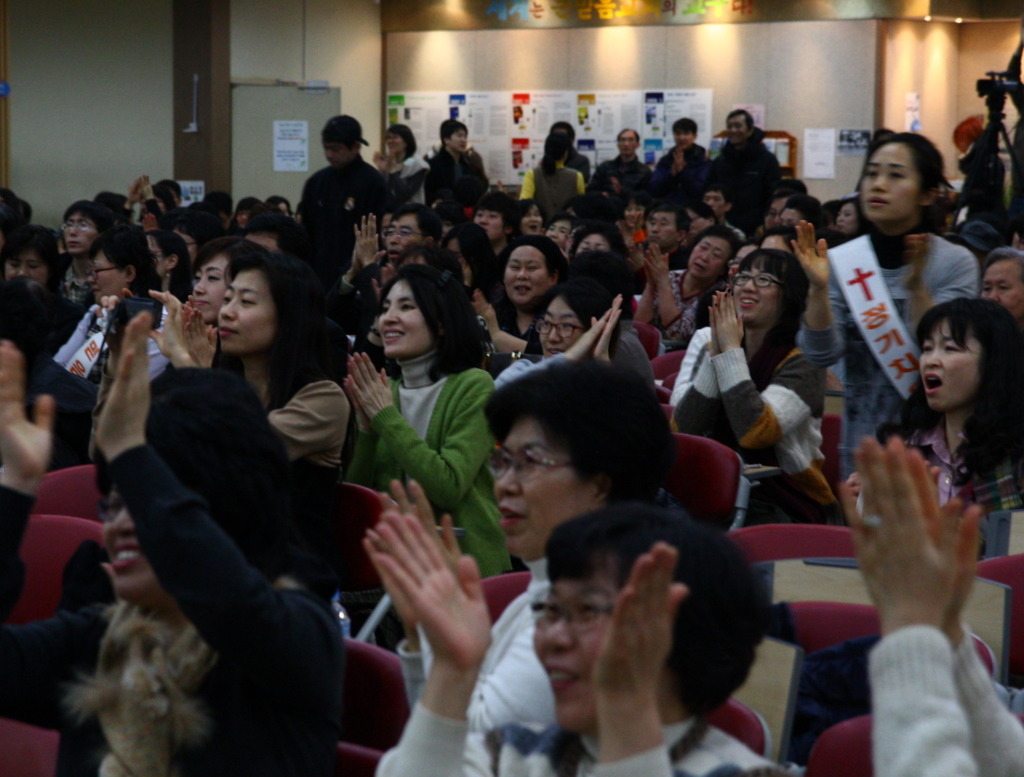 다른 사람의 간증을 들으면서 치유를 사모함으로 취하자 양쪽에 소리나던 무릎관절이 즉시 치유되어 걸어도 소리가 나지 않게 되었습니다.