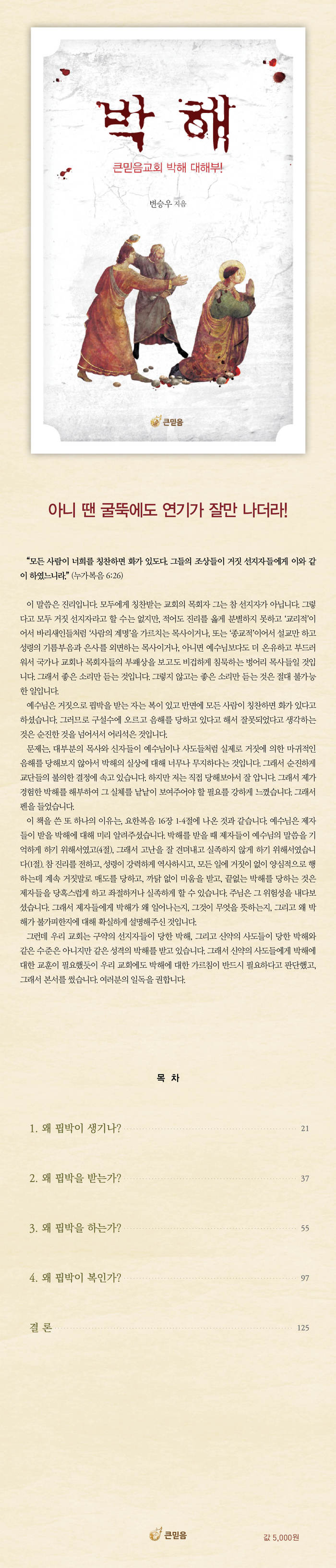 작성자주님 따를 힘을 주소서! 작성시간 14.10.07 이책을 통해 박해가 성경적인 것을 알고 박해속에서도 주님을 누릴수 있는 한국교회 성도들이 되게 하소서!