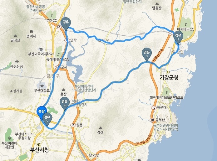 2. 코스 : 런바이크~브니엘고~철마~이곡~기장~반송고개~런바이크