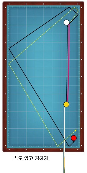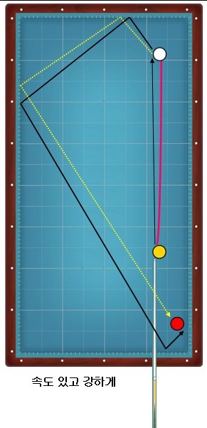 검은선처럼 진행시키고자 했으나 노란점선처럼 진행하여 2쿠션으로 끝나죠...