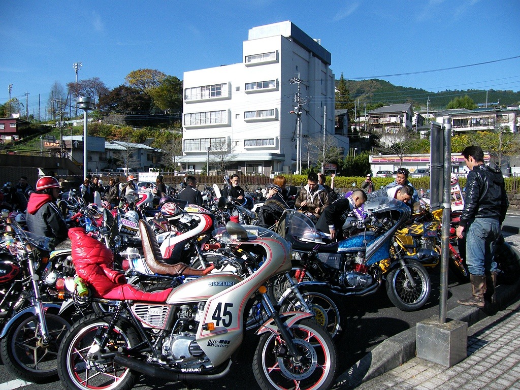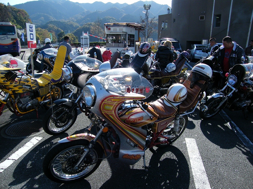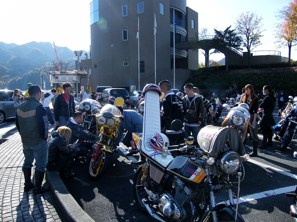 지난주에 사가미호수 라는 곳으로 투어를 갔다왔는데요 사가미호수 공원 주차장에서 30~40대 가량 밀집해 있는 폭주족 무리들을 봤습니다(정확히 말하면 폭주족 이라기 보다 큐샤카이)