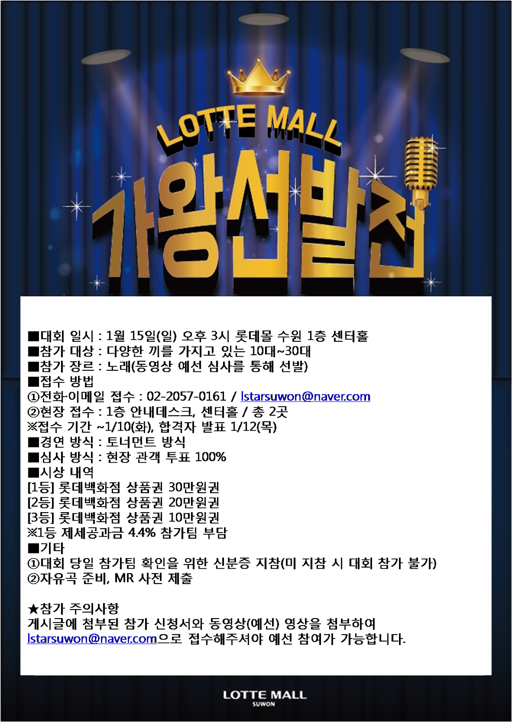 ■대회 일시 : 1월 15일(일) 오후 3시 롯데몰 수원 1층 센터홀