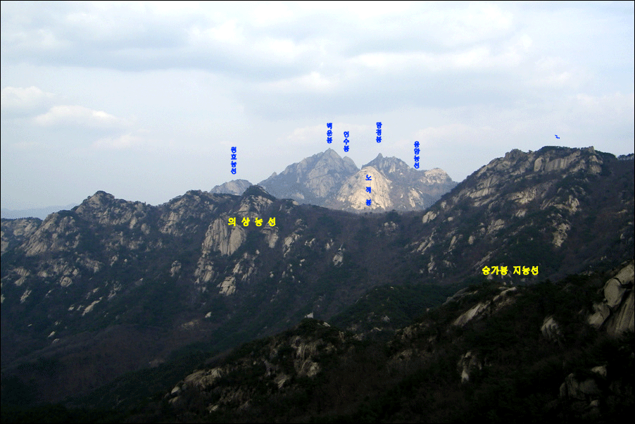 ▲ 응봉능선과 의상능선들이 보인다.