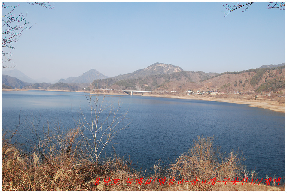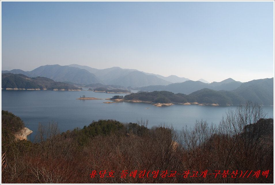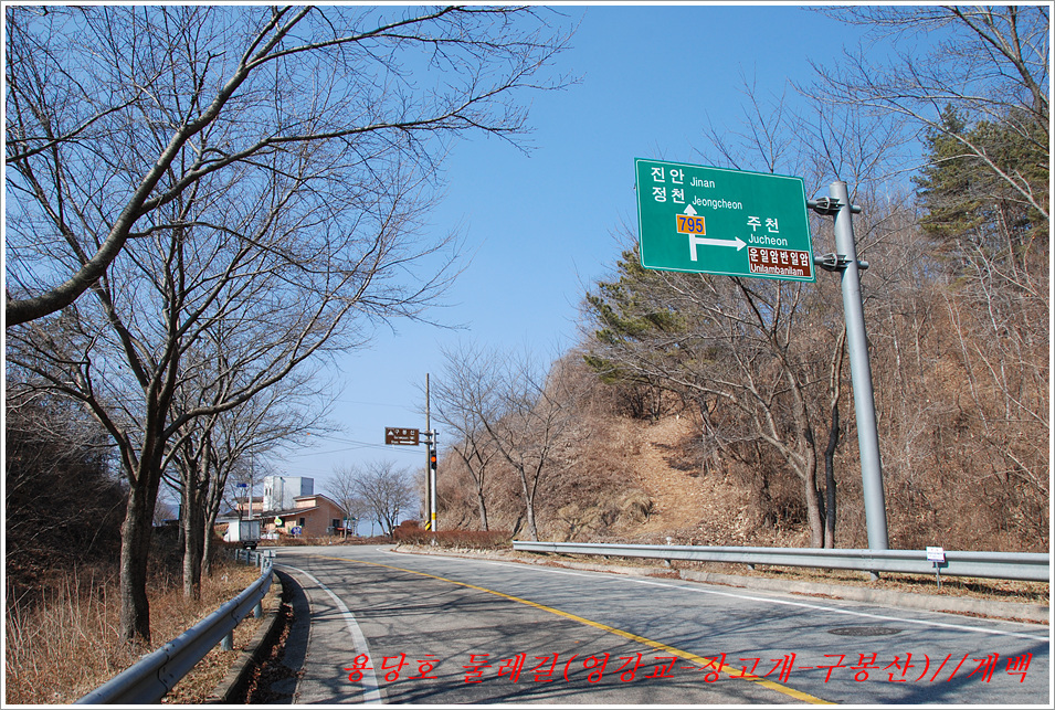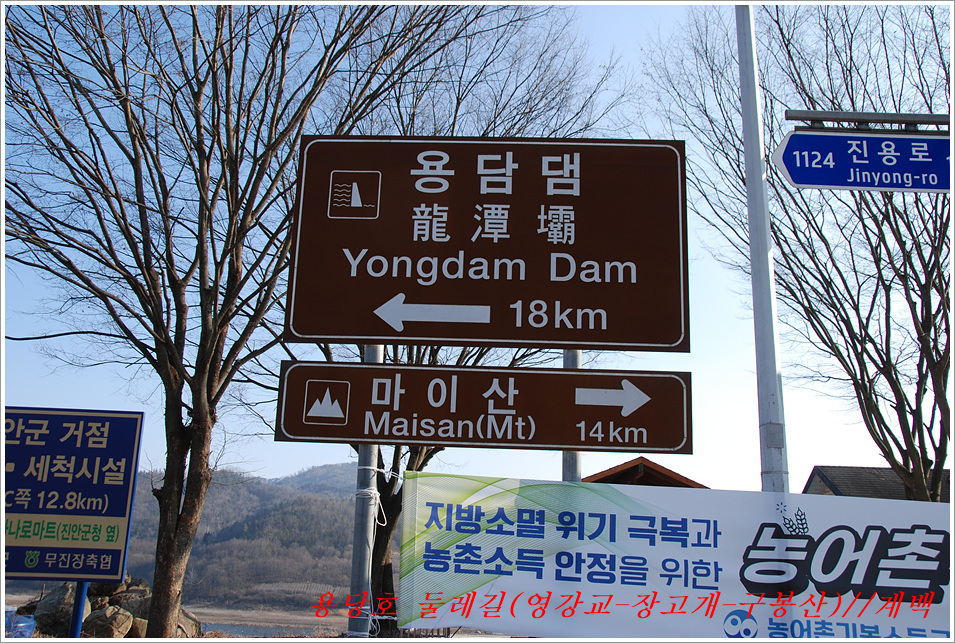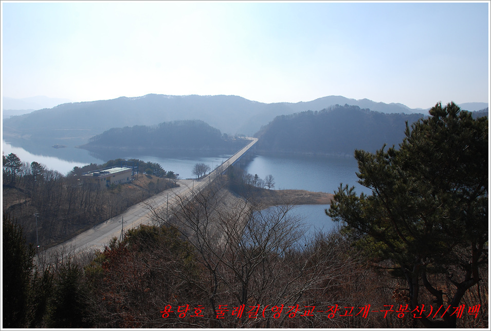 -망향동산 그리고 조망처에서 바라본 용담호, 구봉산 풍경- 5번째(남한) 인공호수 용담호를 가로지른 둘레길 26km를 거닐다. 제2022015015호 2022-02-12(토) ◆자리한 곳 : 전북 진안군 ◆지나온 길 : 영강교-장고개(금산갈림)-태고정-용담대교-사진문화관-정천망향동산-정천갈림길-천황사입구-구봉산 주차장 ◆거리및시간: 6시간 26분(10:58~17:24) ※ 도상거리 : 약25.8km 보행수(步行數) : 38,813보 ◆함께한 이 : 다음매일 산악회원 : 27명 ◆산행 날씨 : 비교적 맑음 <“해 뜸 07:26 해 짐 18:08 / ‘최저 -1도, 최고 11도’> 계획하지 않았는데 본의 아니게 다시 찾은 운장&구봉산 지난 10일(목) 함박단맥 산행중 임도를 만나 잠깐 다리쉼하고 있는데 전화벨이 울렸고 받았으나 통화불가 지역인지 연결은 됐지만 통화품질이 불량해 원활하지 못하고 연결됐다 끊겼다를 반복하는 바람에 상대방이 무슨 말을 하는지 정확한 내용을 파악하지도 못한 상태에서 얼떨결에 그러마고 동의했다. 하산해서 통화해 내용을 알아보니 주말 개인 사정이 생겼다며 산행지를 바꿔달라는 부탁이었다. 악법도 법이라고 그러겠다 답했으니 내가 가기로 정한 “체르마트길과 협곡열차와 트레킹”에서 운장&구봉산행으로 바꿔달라는 요청을 받아들여도 어려움이 없으니 약속은 지켜야 당연하지 않겠는가? -트레킹 들머리 영강교에서 장고개부근의 풍경- 운장산과 구봉산은 지난가을에 다녀온 곳이라 흥미가 반감됐으니 귀가해서 지도를 펼쳐들고 대안을 찾다 용담호를 둘러보면 좋겠다는 생각에 거리를 측정해보니 약 30km 으로 시간상으로 가능하다는 결론에 이르자 기초 사항 파악을 서두른다. 진안군 용담면 월계리, 금강 상류 용담다목적 용담댐 저수량 기준으로 소양호, 충주호, 대청호, 안동호에 이어 남한 5위의 호수를 탐험하려고 지도에 표시한 지적도를 간직하고 현관문을 나선다. 예정대로 피암목재(운장산휴게소) 주차장에서 운장&구봉산행을 선택한 산객 23명이 하차했다. 여유로운 마음으로 구봉산행을 선택한 3분의 회원님과 공지에 없는 호수길을 마음먹은 1사람이 버스에 남아 구봉산주차장으로 이동하다 영강교 삼거리에서 하차해 용담호 탐방에 돌입해 휴식시간 없이 거리 25.8km 소요시간 6시간 30분가량을 투지해 용담호 돌아보기를 깔끔하게 갈무리함에 만족한다. -용담호 주요 조망 지점에서 만난 풍경들- 용담호 : 용담댐은 진안군의 1읍 5개 면을 수몰시켜 만들어진 거대한 담수호로 이 댐은 유역변경식의 댐으로 금강 상류의 물을 하루 135만 톤씩 도수터널을 통하여 완주군 고산면 소향리 만경강 상류에 공급함으로써 전라북도 전주권의 생활용수 해결을 목적으로 건설되었다. 이 댐이 건설됨으로써 담수가 시작되면서 용담호는 진안군에서 빼놓을 수 없는 관광명소가 되었다. 특히, 용담호가 관광지로 사랑받는 명소가 된 것은 교량으로 댐 일주도로가 연결돼 있기 때문이다. 정천면-용담면-본 댐으로 이어지는 도로는 호수의 경관과 어울려 환상의 드라이브 코스로 여겨지며, 상전면-안천면-본 댐으로 이어지는 코스도 이에 못지않다. 생긴 지 얼마 되지 않은 만큼 호안에 별다른 시설물들이 들어서지 않아, 오히려 자연스러운 풍경을 보이고 있다는 것도 매력 중 하나다. -청천면 모산리 망향동산에서 만난 용담호 풍경- 용담호반 여러 곳에 망향의 동산이 세워져 있다. 수몰된 실향민들의 향수를 달래주기 위해 수자원공사가 조성한 것으로 대개 조망이 좋은 둔덕 위에 꾸며져 있다. 망향의 동산 중에도 용담대교 북단의 용담 망향의 동산이 가장 조망이 좋다. 용담호 중앙부쯤에 위치해 동서 양쪽으로 호숫물이 보이며 마을에 있던 목제 정자인 태고정(太古亭)은 짜임새 있는 목조 건물로, 1752년 건립된 것을 1998년 현 위치로 이전해 놓았다. 용담댐 공원에는 물 홍보관이 있는데 이곳은 물과 사람과의 여러 관계를 알려주는 곳으로, 어린 자녀들이 있다면 한 번 들러볼 만하다. 용담호 주위에는 또한 전국적 관광명소로 자리를 굳힌 지 오래인 마이산과 운일암, 반일암 계곡의 절경을 이루고 있다. -한국광광공사- - 5.8km 남겨둔 용담호 상류에서 구봉산 주차장까지- ~오라는 곳도 불러준 이도 없지만 찾아가 안기면 언제나 포근하기만 한 山을 찾아서 ~ 2022-02-21 계백 (배상) 클릭하시면 저에 관한 조금 더 많은 것을 보실 수 있습니다. http://blog.daum.net/goodhong |