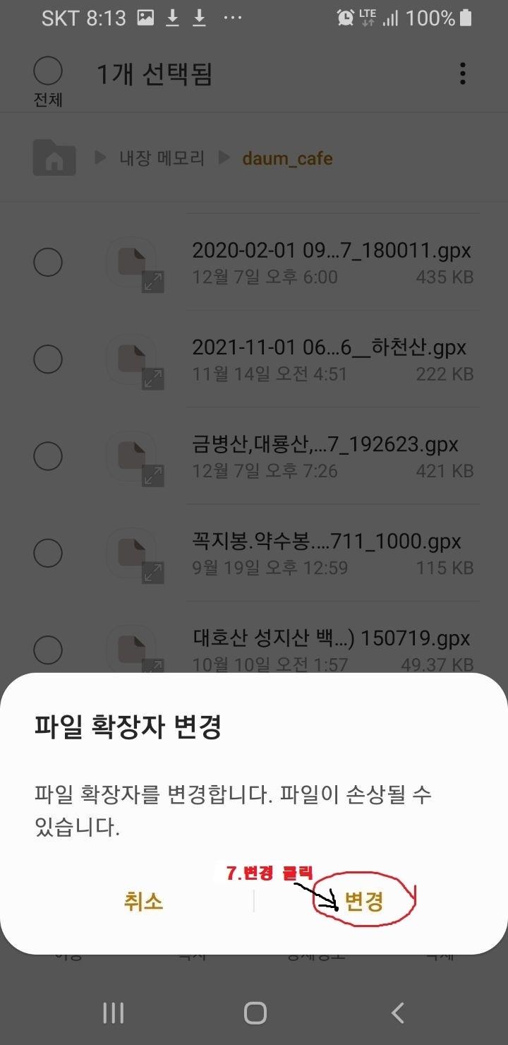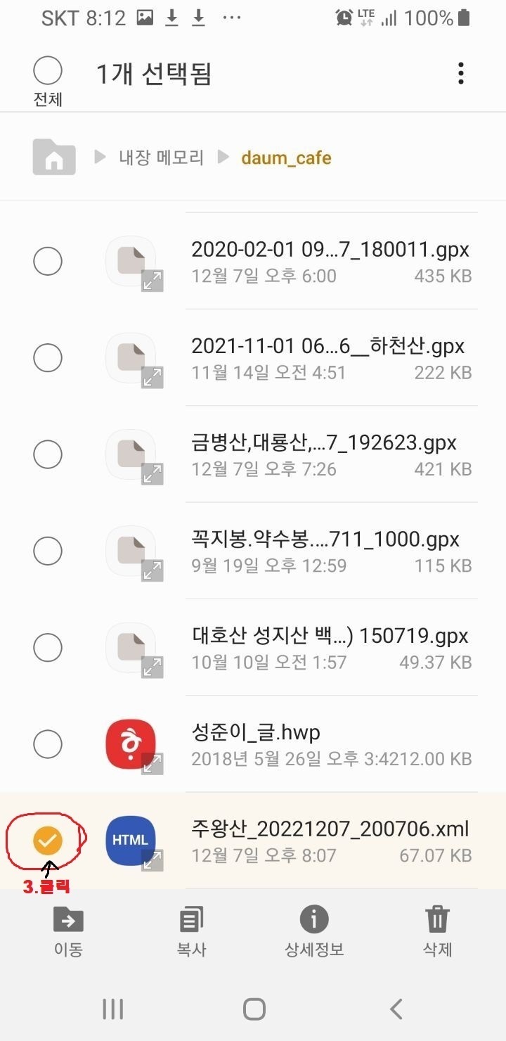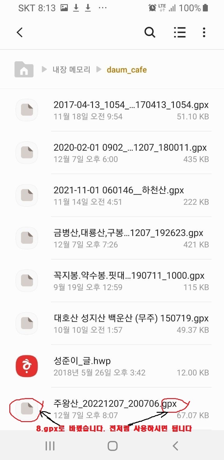 다음카페(daumcafe)에서 gpx 다운로드 시 xml(저장됨)을 gpx로 변경해야 볼(사용 할) 수가 있음