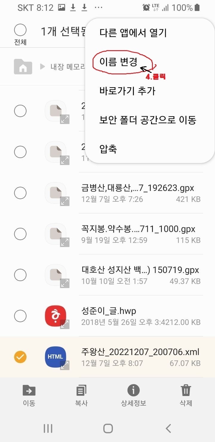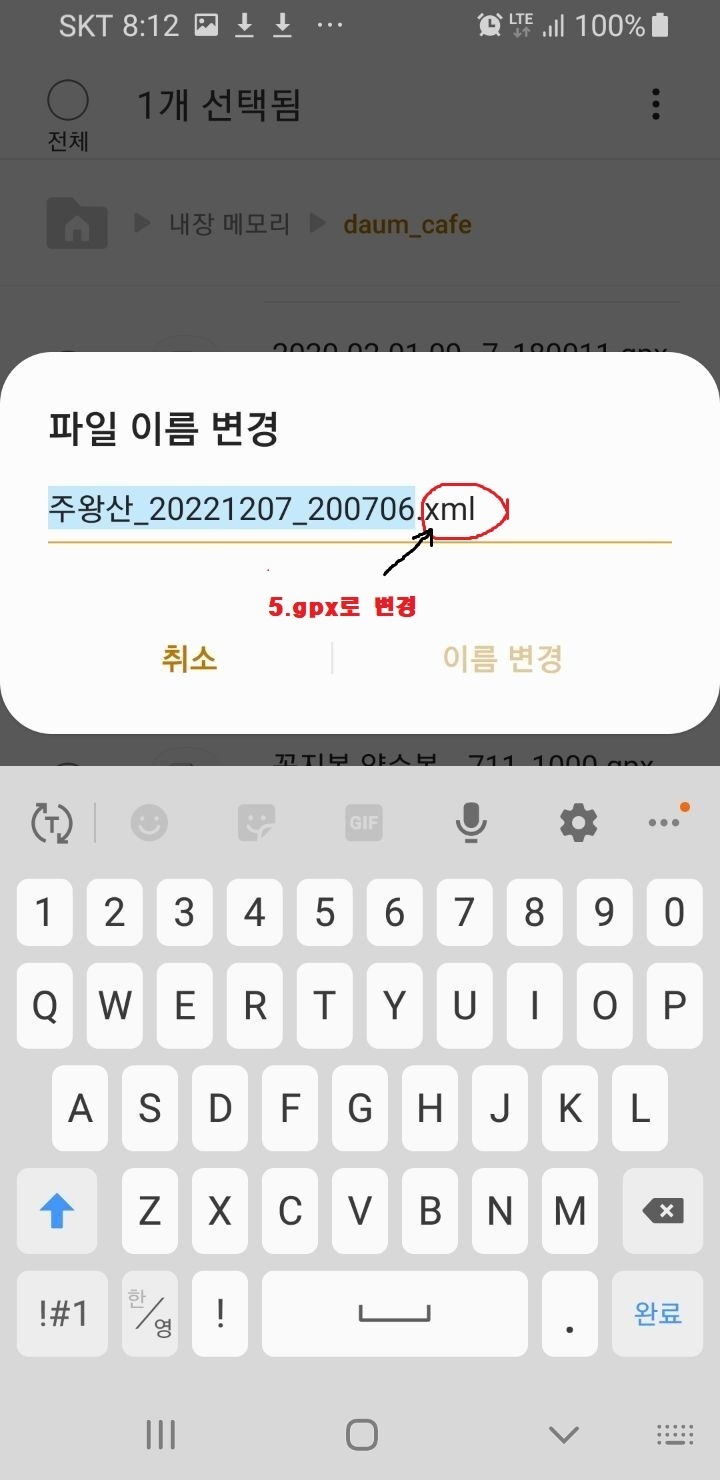 5. 확장자 xml을 gpx로 변경