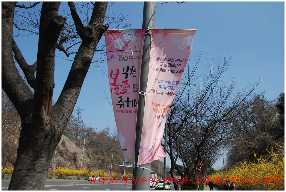 -원미산 진달래축제를 이틀 앞둔 목요일 풍경- 원미산(遠美山)<부천 진달래축제 개막 이틀 먼저 엿보기> 제2142023031호 2023-03-30(목) ◆자리한 곳 : 경기도 부천시 ◆지나온 길 : 까치울역-향토유적숲길-원미산-4거리쉼터-가톨릭대후문-힘기르는 숲-진달래동산-종합운동장-까치울역 ◆거리및시간: 2시간42분(12:56~15:38) ※도상거리 : 약7.5km <보행수(步行數) : 13,211보> ◆함께한 이 : 계백 혼자서 ◆산행 날씨 : 맑은 날이나 미세먼지 나쁨 <해 뜸 06:22 해 짐 18:52 / ‘최저 7도, 최고 21도> 조급증에 부천 원미산 진달래축제 개막 이틀 먼저 다녀왔다. 사랑하는 사람이 곁에 있는데도 때로는 그 사랑으로 인해 더 큰 외로움을 느끼는 시간도 있는 것이 우리들의 삶이라면 산행도 일정한 법칙이 있기에 굴레의 예외일수는 없나 보다. 어찌됐던 어제는 전국적으로 알려진 진해군항제에서 흐드러진 벚꽃과 꽃비까지도 마음껏 즐겼고 산행을 했음에도 만족하기보다는 무어라고 명확하게 설명하기 쉽지 않으나 허전하고 부족함을 느껴 잠시 망설이다 어제 다녀오려고 계획했다 접어둔 부천시 원미동에 자리잡은 높이 167m로 아담하고 야트막한 진달래명소에서 축제를 준비하느라 분주한 행사 이틀을 앞두고 있으므로 개화 상황이 궁금해 원미산을 둘러보려고 정오 가까운 시간 집을 나선다. 산행거리가 너무 짧아 먼저 능선으로 이어지는 둘레길부터 진행했다가 원점회귀 하면서 꽃구경하기로 마음을 정하고 거리를 늘리고자 까치울역에서 하차 부천종합운동장(보조경기장)에서 시작되 는 향토유적숲길 전망대에서 능선삼거리-힘기르는숲-원미산-네거리쉼터-가톨릭대후문-진달래축제장-부천운동장-까치울역으로 원점회귀, 개막을 앞두고 개화를 기다리는 진달래축제장 엿보기에 돌입했다 이미 꽃망울을 터트리고 있지만 만개까지는 시간이 필요하고 축제기간을 앞둔 평일인데도 많은 사람들이 찾아서 봄날을 즐기고 있다. -부천 둘레(향토 유적 숲)길에서 편안하게 만난 풍경들- 원미산(遠美山)공원 : 주변에 중앙도서관이 있으며 축구장, 테니스장, 농구장, 현충탑 등이 있다. 등산코스도 가꿔져 있고 삼림욕장도 있어 가벼운 마음으로 산에 오르기가 좋고 곳곳의 약수터도 인기를 끈다. 이처럼 부천 원미공원은 시민들의 휴식처와 어린이들의 교육장으로 인기가 높다. 원미산 아래 왕복6차선 멀뫼길 옆에 자리 잡은 이 공원은 휴식과 스포츠를 동시에 즐길 수 있는 곳으로 23,800여평의 부지에 조성돼 있다. 원미공원 내 현충탑에서 곧바로 올라가면 원미산 등산로와 연결된다. 정상까지의 거리는 4km로 부담 없는 산책 코스라 하겠다. 어린이 교통공원도 화젯거리다. 이 어린이 교통공원은 평일에는 부천과 인근 유치원생들이 찾아와 교통질서 의식과 법규를 배우고 개별적으로 찾아도 10명 이상이면 교통질서 비디오를 상영해 준다. -대한민국 구석구석- - 진달래동산과 부천종합운동장 주변의 봄꽃 개화 풍경- 부천 원미산 진달래축제 : 부천 원미산 진달래축제는 원미산의 진달래꽃을 소재로 하여 지역주민들의 화합을 도모하기 위해 열리는 지역축제이다. 진달래꽃이 만발한 원미산의 아름다운 자연경관을 배경으로 매년 4월 다양한 볼거리와 먹거리를 제공하는 부천 원미산 진달래축제는 새롭고 다양한 특화체험 프로그램과 수준높은 공연을 통해 축제 위상을 높이고 있으며, 부천시 뿐만 아니라 서부수도권을 대표하는 꽃 축제로 거듭나고 있다. <부천 3대 봄꽃축제 > 1. 구 간 : 도당산 - 원미산 - 춘덕산 축제장을 잇는 꽃길(전체 6.5km) 2. 참가자격 : 봄꽃축제를 사랑하고 걷기에 자신있는 시민 누구나 3. 참가혜택 : 트래킹코스에 설치된 총 6개의 스탬프존에서 스탬프 날인 시 , 총 4개의 기념 뱃지 증정 - 스탬프 3개 : 진달래꽃 뱃지 1개 증정 - 스탬프 4개 : 벚꽃 뱃지 1개 증정 - 스탬프 5개 : 복숭아꽃 뱃지 1개 증정 - 스탬프 6개 : 부천시 승격 50주념 기념 뱃지 1개 증정 4. 일 시 : 3대 봄꽃축제일 - 5일간 - 원미산 진달래축제 : 4.1 ~ 4.2 / 10:00 ~ 17:00 - 도당산 벚꽃축제 : 4.8 ~ 4.9 / 11:00 ~ 19:00 - 춘덕산 복숭아축제 : 4.15 / 10:00 ~ 17:00 ~오라는 곳도 불러준 이도 없지만 찾아가 안기면 언제나 포근하기만 한 山을 찾아서~ 2023-04-05 계백 (배상) 클릭하시면 저에 관한 조금 더 많은 것을 보실 수 있습니다. https://goodhong.tistory.com |