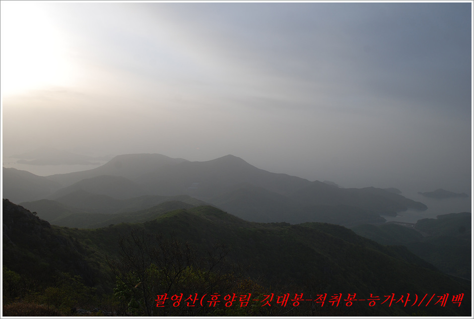 -팔영산 정상(깃대봉)에서 바라본 안개 자욱한 다도해 풍경- 팔영산자연휴양림 & 임진왜란 적전지 녹도만호(녹동항)를 찾아서 제214823037호 2023-04-15(토) ◆자리한 곳 : 전남 고흥군 ◆지나온 길 : 곡강-등산로-임도-포장도로-휴양림-주능선-깃대봉-적취봉-탑재-능가사-팔영제-편백숲-주차장 ◆거리및시간: 5시간24분(04:24~09:48) ※도상거리 : 약11.6km+3.9km=15.5km <보행수(步行數) : 23,537보> ◆함께한 이 : 다음매일 산악회원 : 28명 ◆산행 날씨 : 오전 한때 약한 비 오후 많음 <해 뜸 05:58 해 짐 19:08 / ‘최저 6도, 최고 17도> 강선(曲江)마을 주차장 : 원래 강산리에 속한 마을로써 마을 앞이 바다로서 포구(浦口)로 형성되어 일명 “갈개”라고 불리다가 마을 앞을 지나는 개울물이 구비 돌아 흐른다는 뜻을 형상화하여 곡강마을이라 부르게 됐고 현재에 이르고 있다. 팔영산 곡강마을-강선폭포-선녀봉에서 8개의 봉우리로 이어지는 등산객들의 편의차원에서 약 2년 전에 주차장이 만들어졌다. 3주전에 산행했으니 코스변경으로 변화를 갖기로 한다. 어른들께서 말씀하셨다 사람이 삶을 살아가는 평생 동안 누구에게나 변신할 기회가 반드시 3번은 찾아온다고, 분명 나에게도 어떤 방식으로든 기회는 왔었으며 유용하게 활용하기도 했었고, 준비 없이 넋 놓고 멍하니 있다가 감지하지도 못하다 지나간 뒤에야 돌이켜보니 그때가 기회였구나! 깨닫고 놓친 기회를 아쉬워하기도 했었다. 삶의 시간으로 어느덧 오후 4시의 저녁 무렵이니 다시기회가 오지 않겠지만 신께서 실수로 손에서 놓쳐버린 절호의 찬스가 어느 날 불쑥 찾아올지도 모른다는 야심찬 희망으로 기회를 붙잡을 준비에 한순간이라도 게으름이 없도록 몸가짐을 가지런하게 정돈하고 속담에 담겨있는 교훈을 곱씹있다. 두뇌 회전이 빠르지도 그렀다고 느낌도 좋지 않은 보통사람이니 노력하는 최선의 자세라면 무작정 기다리기는 무모함보다는 자신에게 알맞은 기회를 만들어 나가는 것이란 결론에 도달한다. 3주(3월25일)전에 같은 코스를 이미 산행했으니 지루함이 느껴지지 않도록 코스변경으로 해결책을 찾기로 마음먹고 곡강주차장에서 등산로입구에서 등산로를 버리고 무성한 잡초를 헤치며 임도를 진행해 팔영산 휴양림을 목표로 트레킹을 시작한다. -암봉들이 아침햇살에 반짝인다, 포근하게 느껴진 깃대봉 풍경- 다도해해상국립공원 팔영산지구 : 고흥군에서 가장 높은 608m의 산이다. 원래 도립공원이었는데 2011년 다도해해상국립공원 팔영산 지구로 편입되었다. 다도해상국립공원을 구성하는 8개 지구중 유일하게 해역이나 해변을 포함하고 있지 않은 지구이다. 다도해해상국립공원은 1981년 12월 23일 14번째 국립공원으로 지정되었다. 공원구역은 전라남도 신안군 홍도에서 여수시 돌산면에 이르며 면적은 우리나라 국립공원 중 가장 넓다. 이름에 걸맞게 국립공원 내 섬이 약 400여개가 있을 만큼 섬이 많은 곳이기도 하다. 구역에 따라 8개 지구(흑산/홍도 지구, 비금/도초 지구, 조도 지구, 소안/청산 지구, 거문/백도 지구, 나로도 지구, 금오도 지구, 팔영산 지구)로 구분되어 있다. 공원 및 주변은 고생대의 편암, 편마암부터 중생대 경상분지의 퇴적층, 화산활동 등에 의해 형성된 응회암 및 화강암 등 다양한 종류의 암상으로 이루어져있으며, 지질 특성을 관찰 할 수 있는 지질명소는 거문도 물넘이목, 흑산도 등이 있다. 또한 이곳은 한반도 해안지형 중 하나인 해식애의 특징을 잘 관찰할 수 있는 장소이기도 하다. -홈페이지- -휴양림풍경은 어둠 때문에 제대로 된 영상을 담지 못했다- 팔영산자연휴양림 : 고흥 10경 중 으뜸인 팔영산의 풍광과 굴참나무, 갈참나무, 고로쇠 등 참나무류가 주종을 이루는 천연림으로 이루어진 휴양림으로 8개의 객실을 갖춘 산림문화휴양관 1동과 숲속 사이사이 정겹게 배치된 숲속의 집 9개동으로 이루어져 있습니다. 또한 야영장, 운동시설 등 각종 휴양시설이 잘 갖추어져 있습니다. 가장 큰 볼거리는 해발 608m에 달하는 팔영산 정상에서 내려다보이는 다도해안의 절경과 다도해에서 떠오르는 장엄한 일출과 기암괴석이 병풍처럼 펼쳐진 8개의 암봉은 전국적으로 보기 드문 암릉산행의 묘미를 즐길 수 있는 곳으로 많은 등산객들이 찾는 곳이며 자연휴양림은 그 동쪽계곡 400m고지에 위치해 있어 좀 더 쉽게 팔영산을 오르실 수 있고, 아이들의 자연학습공간으로도 유명합니다. 참나무류로 이루어진 천연림과 고라니, 산토끼, 꿩, 참새, 노루 등의 다양한 동식물을 쉽게 접할 수 있어 가족단위 나들이객들에게도 좋은 추억과 자연학습의 장으로 이용되고, 각종 운동시설을 운영하고 있어 4계절 휴양공간으로 손색이 없습니다. 특히, 휴양림 주변에는 시원한 파도와 송림이 어우러진 남열 해수욕장, 갯바위 낚시터로 유명한 용바위, 신라의 원효가 창건한 고찰 능가사, 남도의 서정을 감상할 수 있는 남포 미술관 등 볼거리와 즐길 거리가 다양하여 휴양림 이용객이 매년 증가하고 있습니다. 스트레스로 지친 현대인에게 필요한 것은 휴식입니다. 팔영산 자연휴양림에서의 휴식으로 삶의 여유를 찾아보세요. -홈페이지- -정상(깃대봉)에