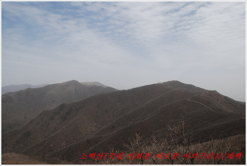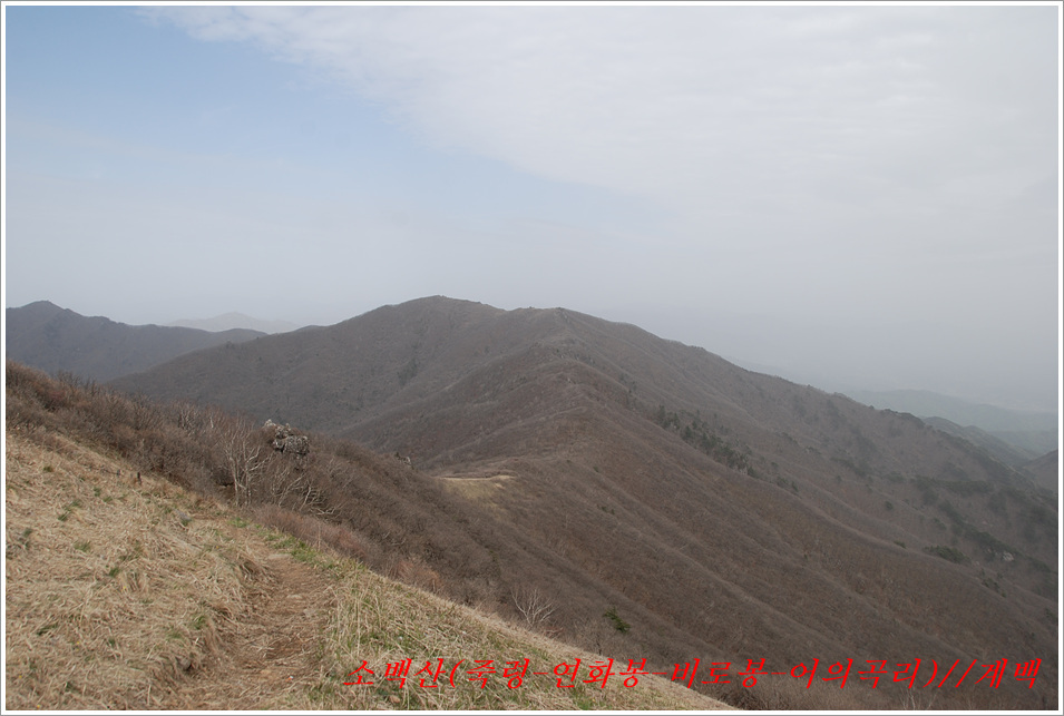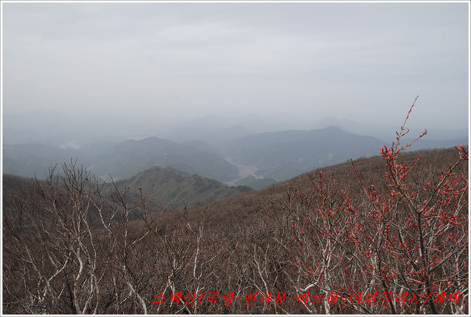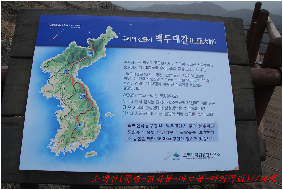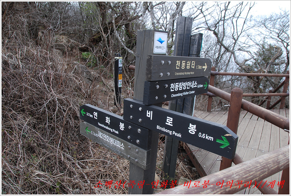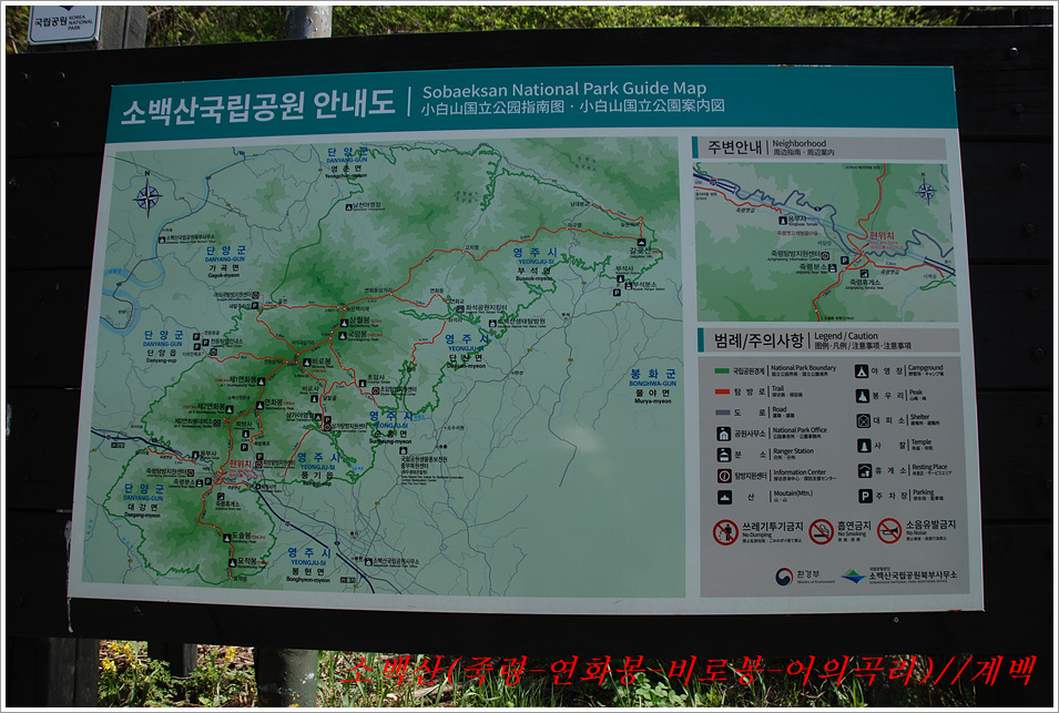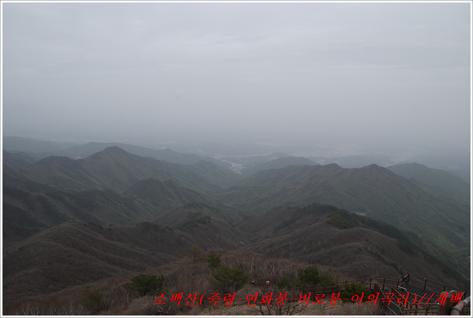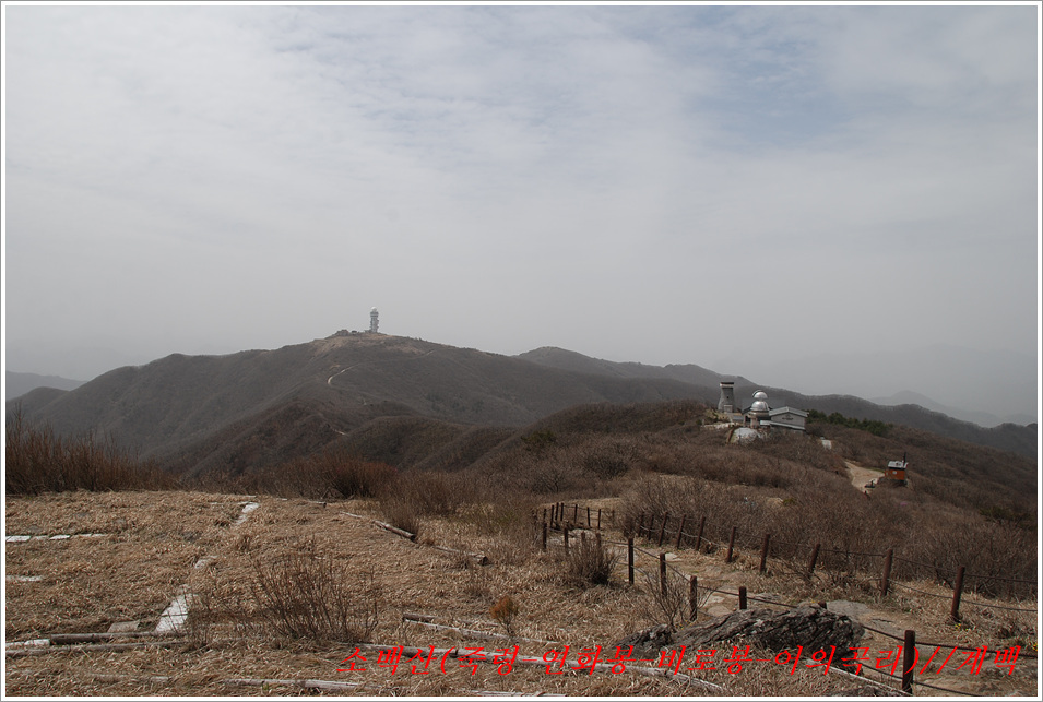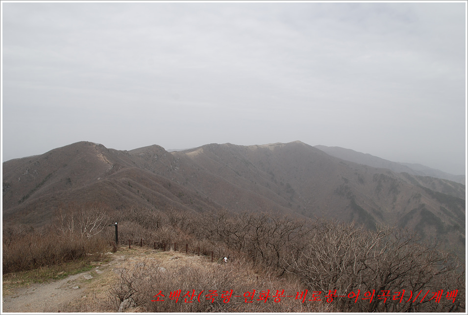 -소백산 정상풍경, 백두대간 능선에서 바라본 비로봉- 소백산<네 탓이 판치는 세상에 산꾼이 누굴 원망하고 무엇을 탓하랴!!!> 제2150023039호 2023-04-22(토) ◆자리한 곳 : 충북 단양, 경북, 영주시 ◆지나온 길 : 죽령휴게소-제2연화봉-연화봉(천문대)-제1연화봉-천동삼거리-비로봉-국망삼거리-어의곡주차장 ◆거리및시간: 6시간25분(10:34~16:59) ※도상거리 : 약16.6km <보행수(步行數) : 31,540보> ◆함께한 이 : 다음매일 산악회원 : 26명 ◆산행 날씨 : 흐림 <해 뜸 05:49 해 짐 19:13 / ‘최저 7도, 최고 21도> 지난 주말 무어라고 딱히 잘라 한마디로 말하기는 어려우나 나름으론 기대감으로 소백산국립공원을 다녀왔는데 결론은 사람으로 인해서 어긋나고 말았다. 평균보다는 아주특별한 사람들이 많아서 황당했던 날이었노라 혼자 삭히고 기억하면 그만이지 상식이하의 언행들을 미주알고주알 늘어놓는다면 자신만 좀스럽고 시시해지므로 그만 접고 산행정리는 손쉽고 간단한 방법 중의 하나인 소백산국립공원 홈페이지를 인용하기로 한다. -백두대간 소백산 능선에서 만난 4월 하순 풍경들- 소백산국립공원 : 1987년 18번째 국립공원으로 지정되었으며 면적은 322.011㎢로 지리산, 설악산, 오대산에 이어 산악형 국립공원 가운데 네 번째로 넓다. 해발 1,439.5m인 비로봉을 중심으로 국망봉(1,420.8m), 연화봉(1,383m), 도솔봉(1,314.2m)등이 백두대간 마루금 상에 솟아있다. 퇴계 이황이“울긋불긋한 것이 꼭 비단 장막 속을 거니는 것 같고 호사스러운 잔치 자리에 왕림한 기분”이라며 소백산 철쭉의 아름다움을 묘사한 것처럼 수많은 탐방객이 봄철 소백산국립공원을 방문하고 있으며, 겨울이면 장중한 백두대간 위에 설화가 만발하는 절경을 이룬다. -홈페이지- -죽령탐방로 들머리에서 만난 풍경들- 죽령~연화봉 탐방로(천상의 화원으로 가는 야생화와 함께하는 탐방로!) : 7.0Km, 2시간30분(편도)소요 굽이굽이 능선길을 따라 오르는 천상의화원 연화봉으로 가는 부담 없는 난이도의 코스 잘 정비된 탐방로와 굽이굽이 능선을 따라 오르는 죽령~연화봉 탐방로는 특히 철쭉이 만개하는 5~6월 사이 많은 탐방객이 찾고 있다. 제2연화봉에 마련되어있는 산상전망대에서 바라보는 경관도 빼놓을 수 없는 탐방코스 중 하나이다. 산상전망대에서 바라보고 있노라면 저 멀리 아름다운자태의 월악산, 웅장한 백두대간 능선이 소백산을 휘몰아치는 모습에 압도당한다. 충청북도 및 경상북도 경계에 있는 죽령~연화봉 탐방로는 차량으로 5번 국도변에 위치한 죽령휴게소에 이르러 죽령 탐방지원센터부터 능선지형의 탐방로를 본격 산행하게 된다. 탐방로 연장이 7.0Km로 약 2시간30분소요되며, 중간 중간 쉬어 갈 수 있는 쉼터(이야기, 잣나무쉼터)와 태양계관찰로가 조성되어 있다. 관찰로에는 태양계 행성의 해설판이 설치되어 있어 태양계에 대한 전체크기, 행성간 거리 등을 간접체험해 볼 수 있다. 또한 제2연화봉에서는 국립공원 최고 높이에 있는 산상전망대에서 소백산을 전체적으로 조망 가능하다. 산행 난이도는 비교적 높지 않으나 콘크리트 포장구간이 많아 발목과 무릎에 무리가 올 수 있으므로 산행 전 스트레칭과 안전장비(스틱, 무릎보호대 등)를 준비하면 안전산행에 도움이 된다. -홈페이지- -천동리 갈림길 능선에서 만난 안내판과 백두대간지도- 천동계곡~비로봉 탐방로(소백산국립공원 대표탐방로!) : 6.8km, 편도 3시간소요 누구나 쉽게 비로봉 정상까지 갈 수 있는 소백산국립공원을 찾아주시는 많은 탐방객이 선호하는 코스 잘 정비된 탐방로와 쉬운 난이도의 탐방코스로 천동계곡과 함께하는 자연 그대를 느낄 수 있는 소백산국립공원 대표적인 탐방코스이다 .하산은 연화봉을 거쳐 소백산 천문대를 경유하여 죽령이나 희방사로의 하산이 가능하며, 비로봉에서 국망봉을 거쳐 초암사로의 하산코스와 비로봉에서 어의곡매표소 및 삼가매표소로 직접 하산하는 코스가 있다. 천동계곡 탐방로는 계곡을 따라 이어진 비교적 완만한 경사로의 탐방로이다. 천동계곡의 맑은물을 바라보며 거슬러 올라가면 4.2㎞지점에 천동쉼터와 만난다. 이곳에는 마지막 화장실이 위치하고 있다. 천동쉼터에서 약40분을 더 오르면 눈앞에 넓은 시야가 들어온다 한숨 돌리며 능선을 따라 가노라면 좌우로 500년 수령의 주목을 만난다. 이후 능선길을 걸어 1km, 20분이면 소백산국립공원 최정상 비로봉에 오를 수 있다. 총 6.8km, 편도 3시간소요 된다. -홈페이지- -산불예방 차원에서 국망봉 탐방로 통제 안내판- -해발 1,400m엔 진달래가 이제야 꽃망울이 맺혔다, 어의곡리 주차장- 어의곡~비로봉 탐방로(소백산국립공원 비로봉으로 가장 빨리 갈 수 있는 탐방로.) : 5.1㎞, 2시간40분소요 탐방객이 집중되지 않아 훼손되지 않은 원시림과 탐방로 변의 맑은 계곡물 등으로 많은 탐방객 이용충북 단양에서 소백산 정상에 이르는 가장 짧은 코스가 본 탐방로이다. 본 탐방로는 비교적 원시상태의 생태계가 잘 보전되어 있다. 탐방객이 집중되지 않아 훼손되지 않은 원시림과 탐방로 변의 맑은 계곡물, 이러한 조건들이 본 코스를 찾는 탐방객이 증가하는 이유이다. 어의곡에서 어의곡