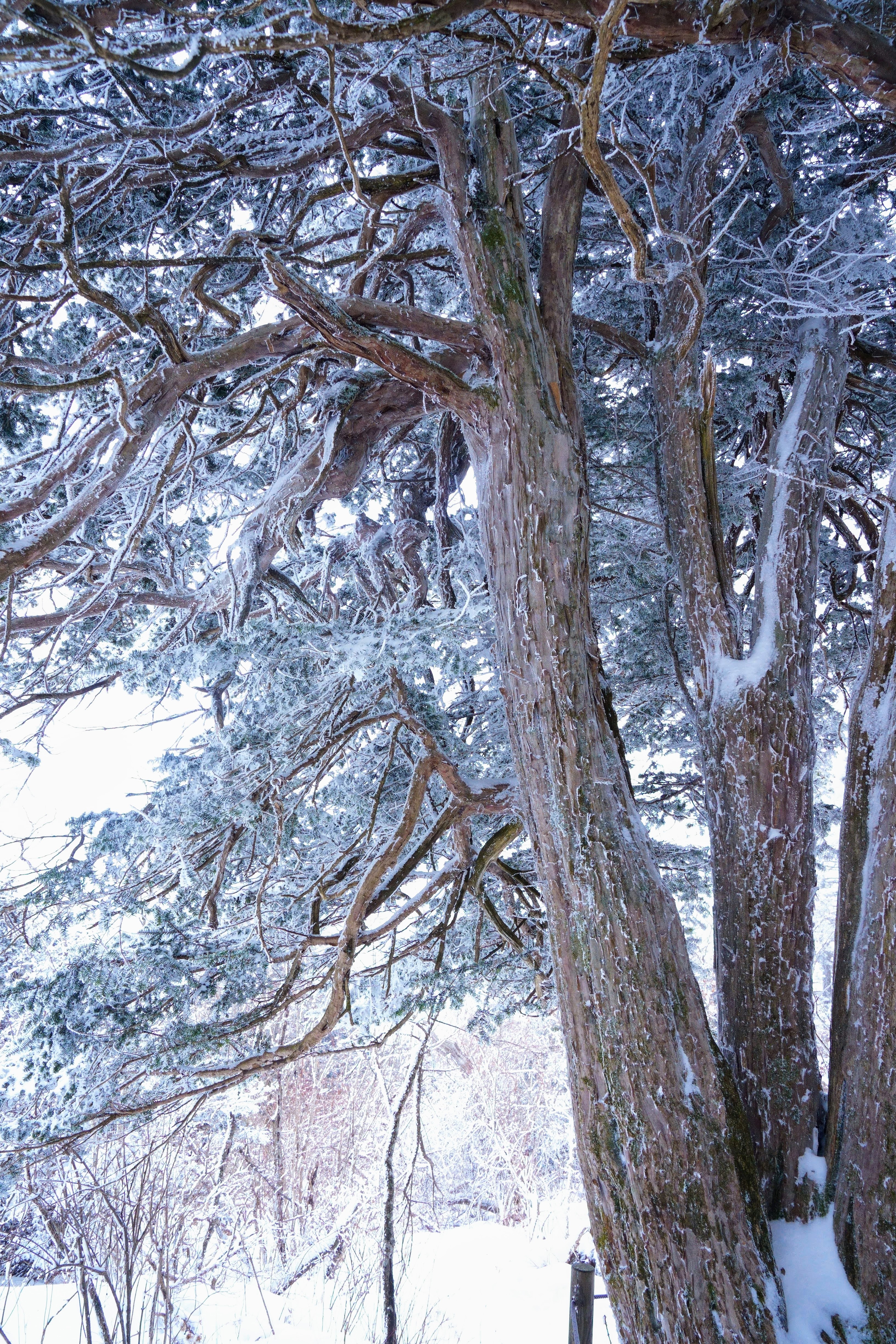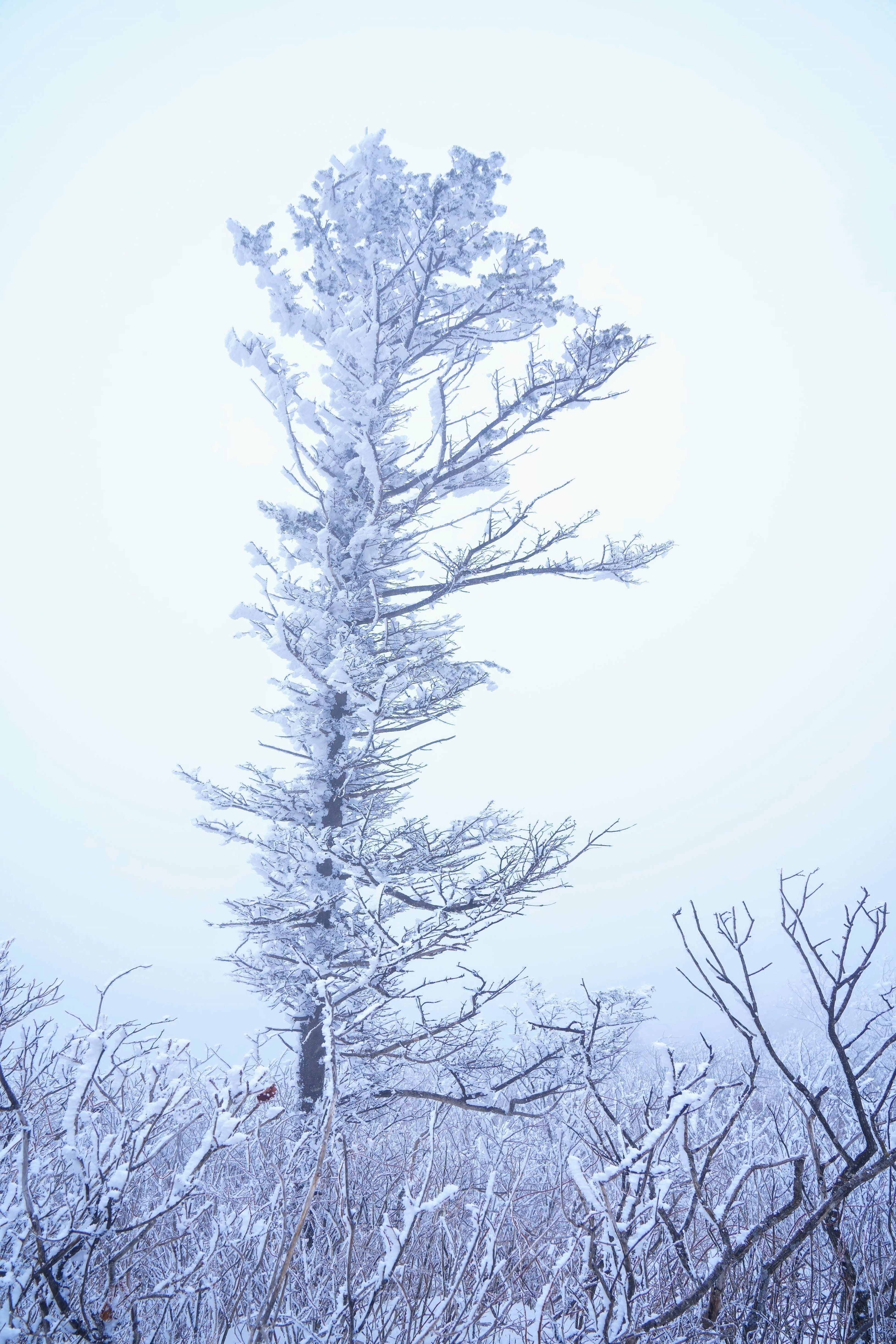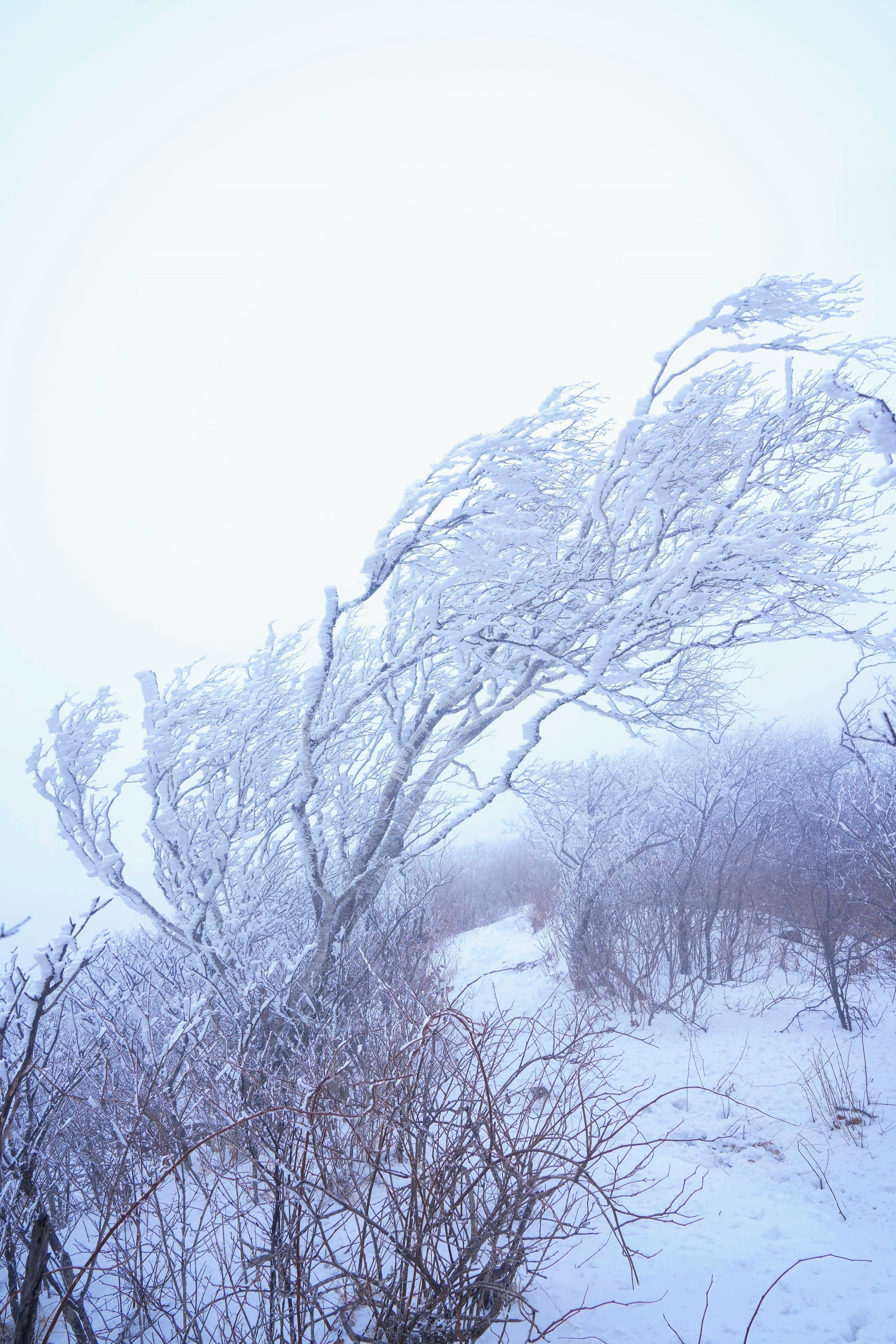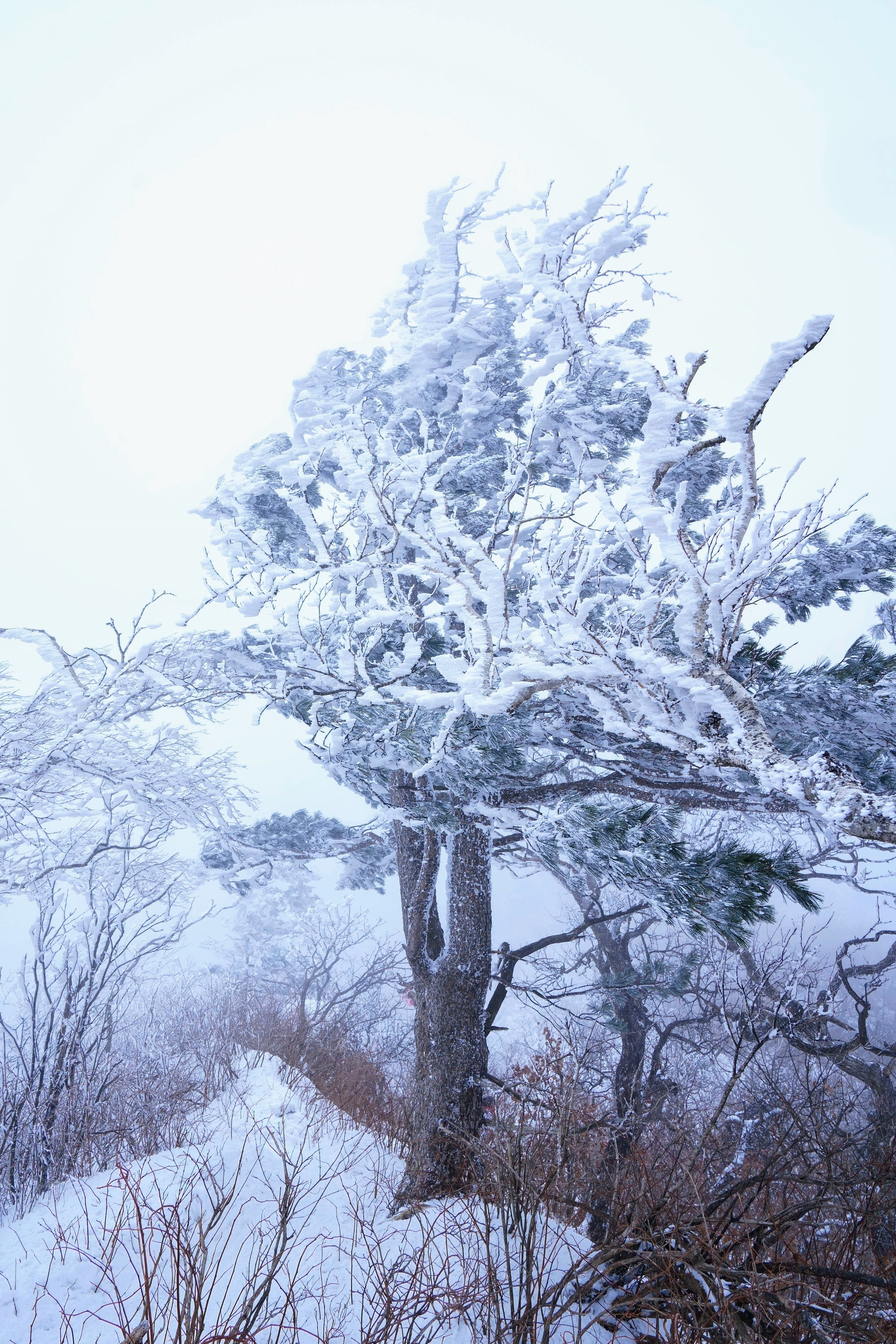 휴식을 마치고는 다시 배낭을 짊어지고 하산을 시작합니다. 능선을 따라서 진행하는데 구름에 갇혀서 시야는 보이지 않고 바람은 거세게 몰아칩니다. 중간 중간 나뭇가지에 붙은 상고대를 사진에 담으면서 진행하다 보니 삼거리가 나타나고 우회전해서 내려가니 바로 하얗게 눈을 덮은 주목들이 나타납니다. 주목에서도 사진을 담아가면서 하산길을 이어갑니다. 이후로는 산 정상에서 시간을 많이 소비했기에 빠른 걸음으로 눈길을 따라서 하산길을 이어갑니다.