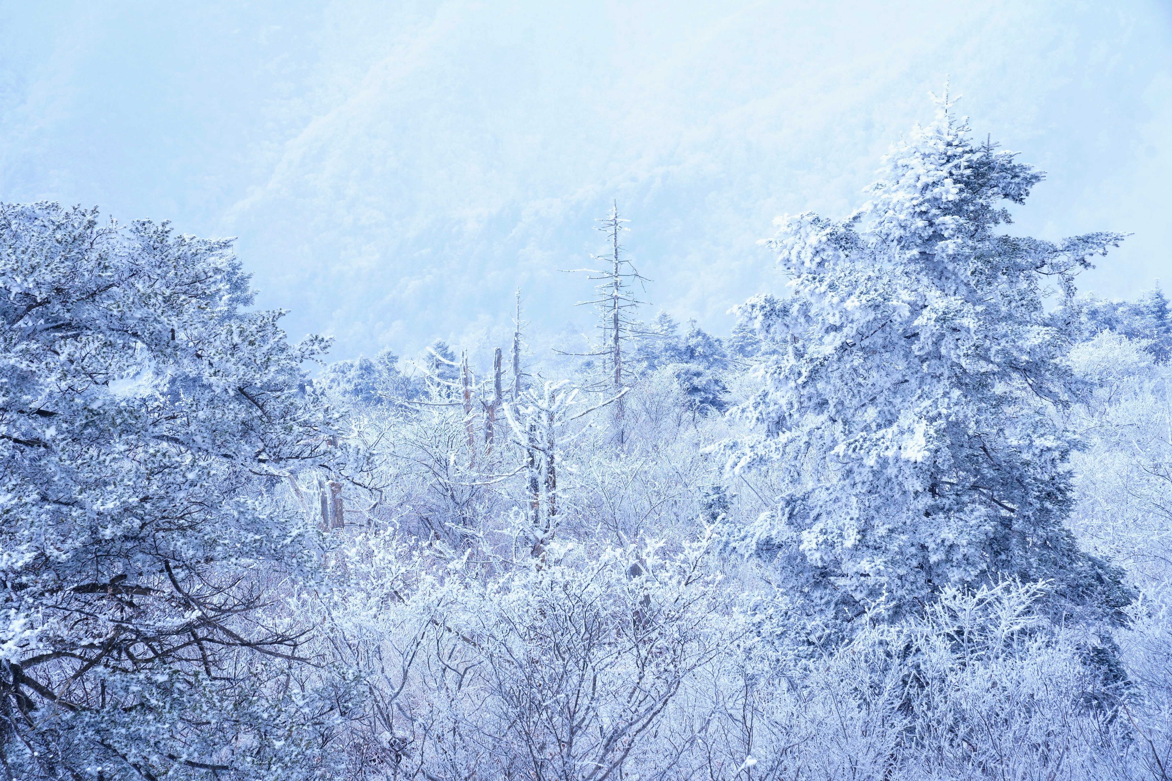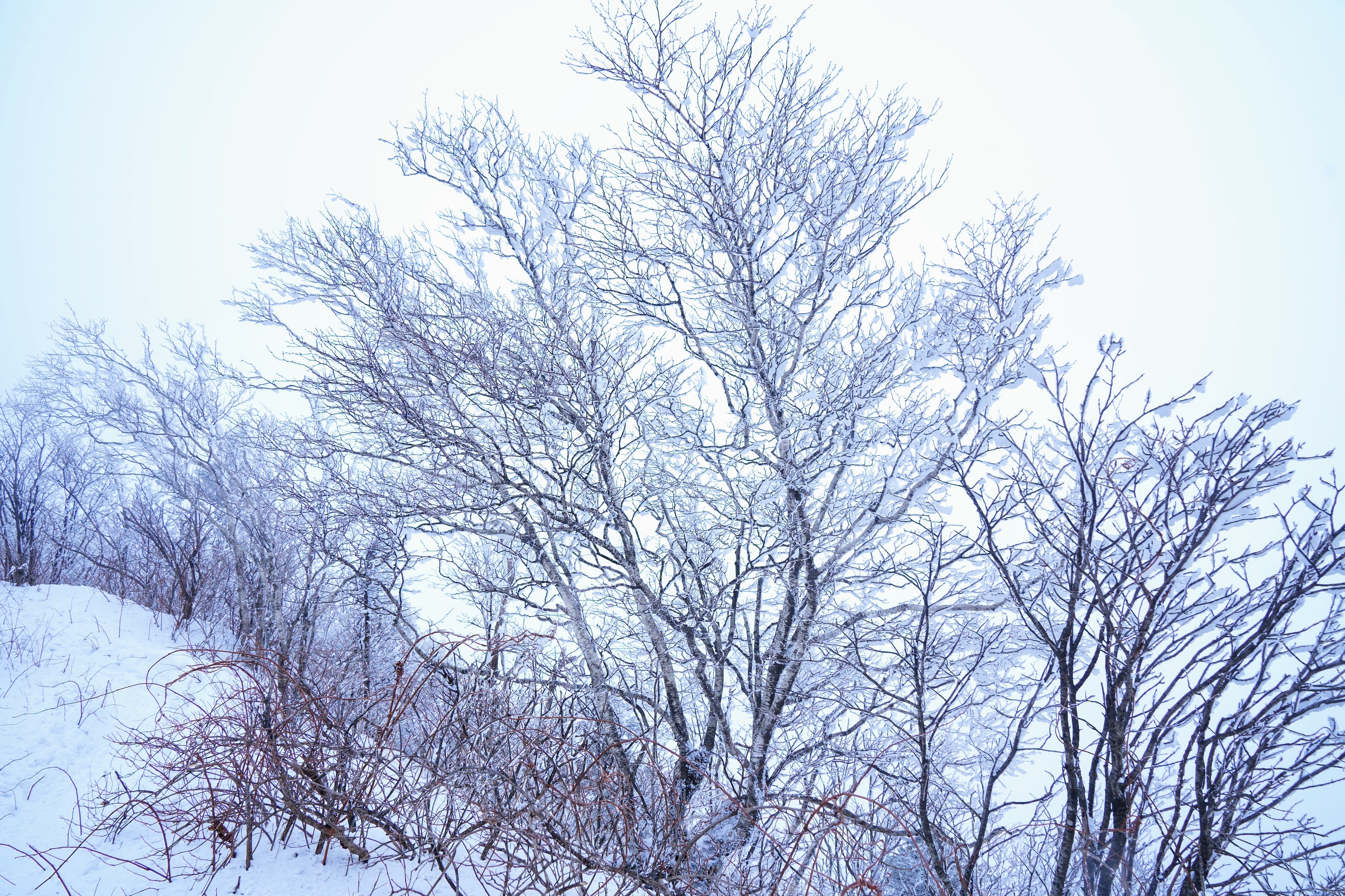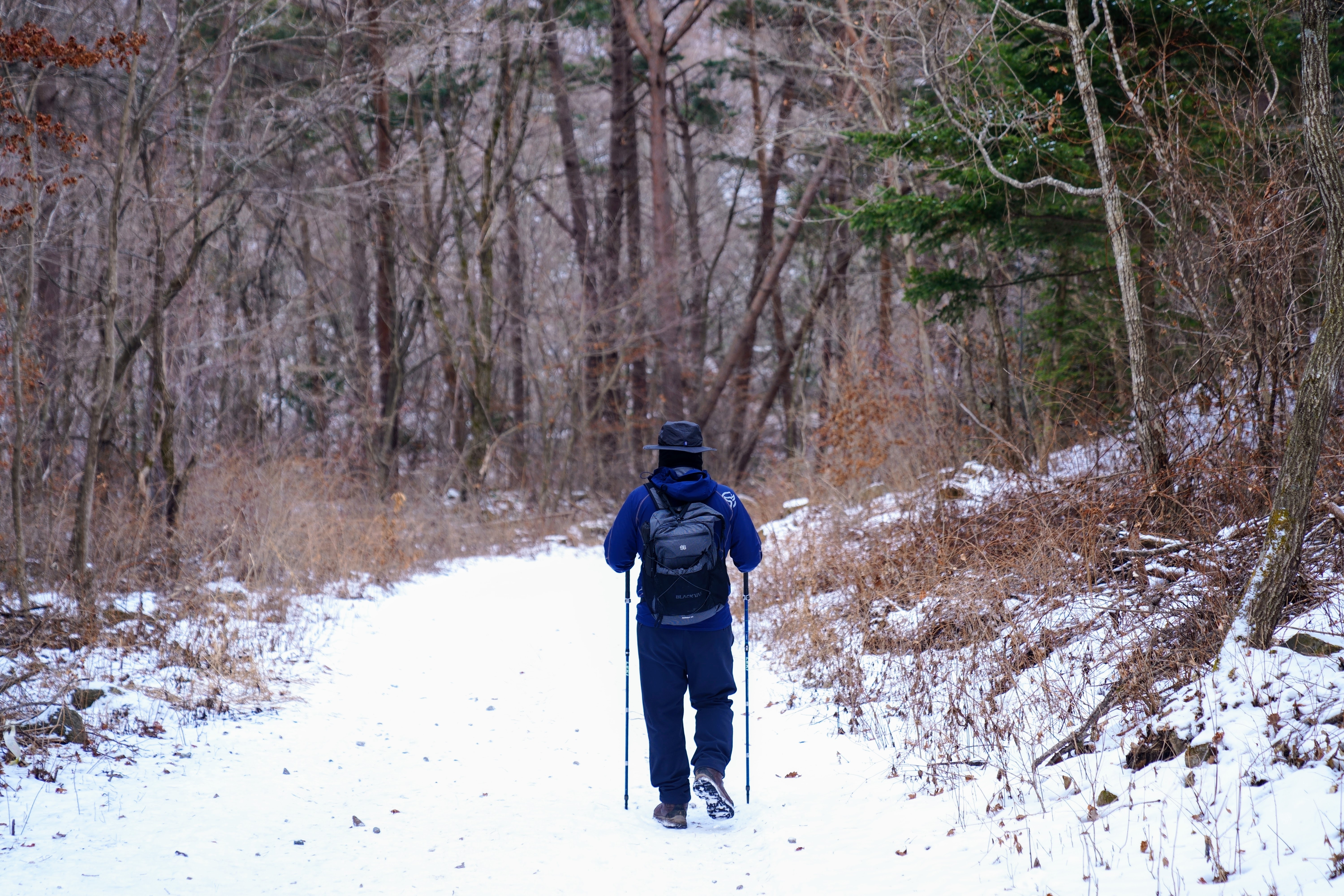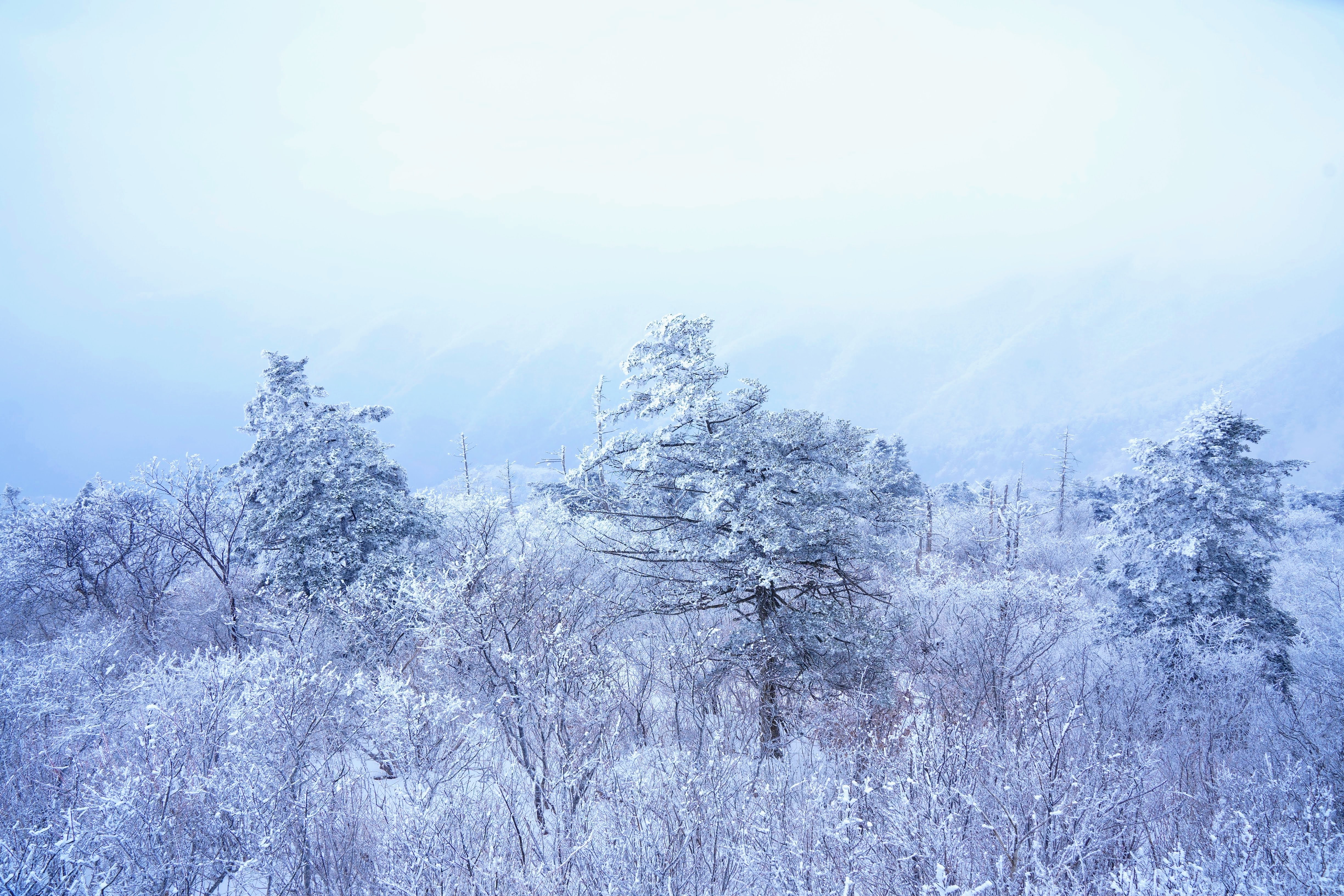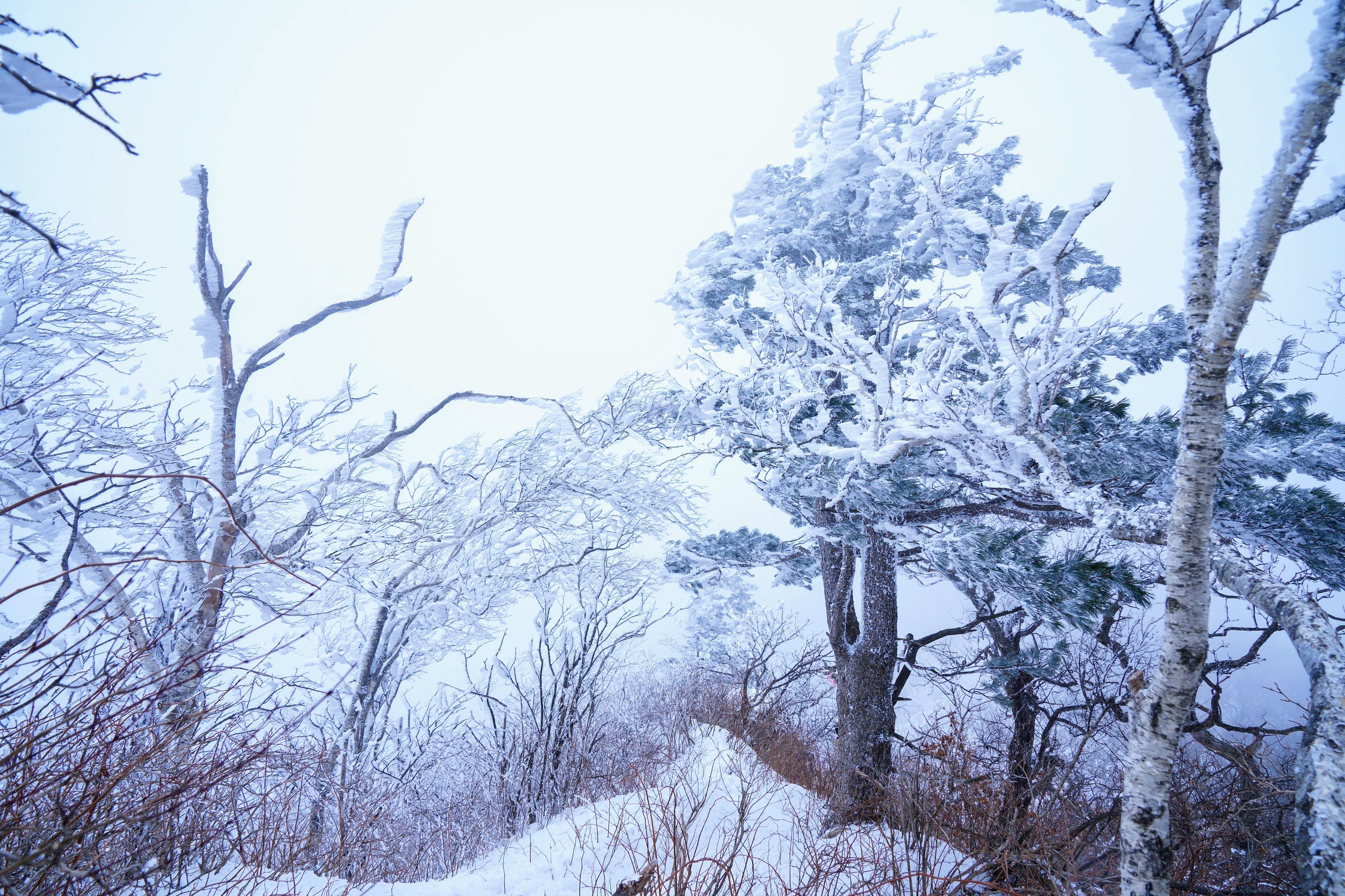휴식을 마치고는 다시 배낭을 짊어지고 하산을 시작합니다. 능선을 따라서 진행하는데 구름에 갇혀서 시야는 보이지 않고 바람은 거세게 몰아칩니다. 중간 중간 나뭇가지에 붙은 상고대를 사진에 담으면서 진행하다 보니 삼거리가 나타나고 우회전해서 내려가니 바로 하얗게 눈을 덮은 주목들이 나타납니다. 주목에서도 사진을 담아가면서 하산길을 이어갑니다. 이후로는 산 정상에서 시간을 많이 소비했기에 빠른 걸음으로 눈길을 따라서 하산길을 이어갑니다.