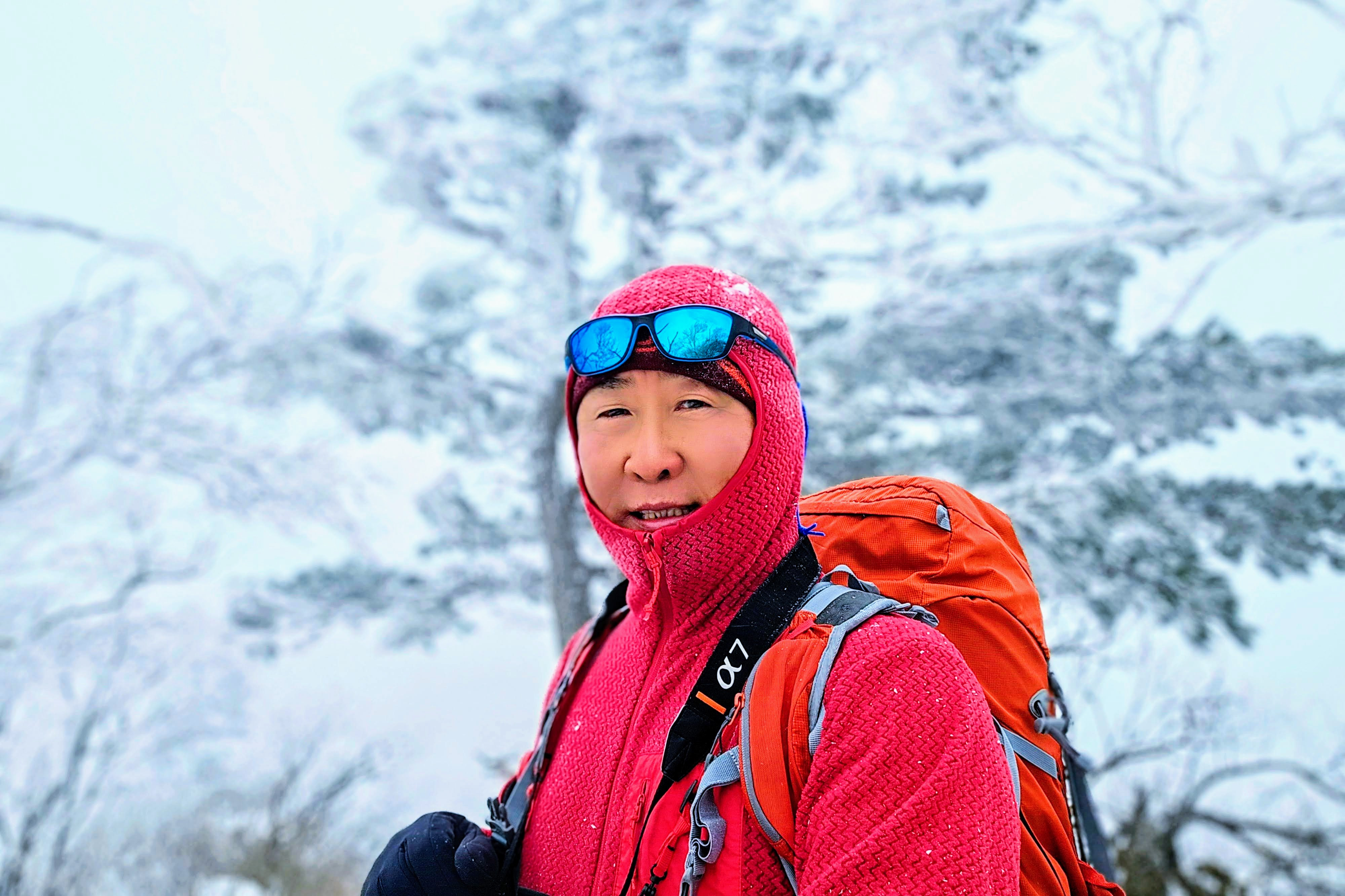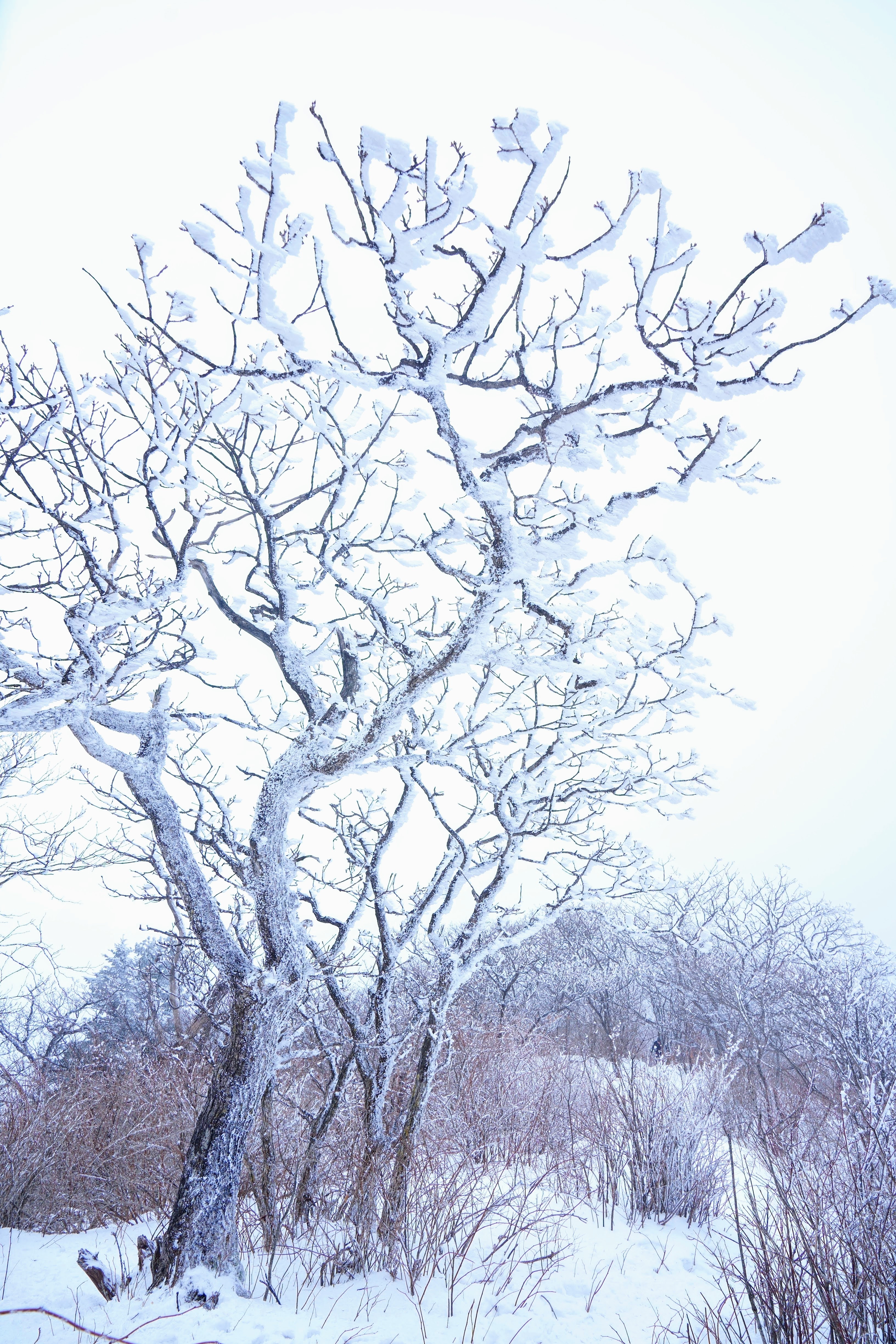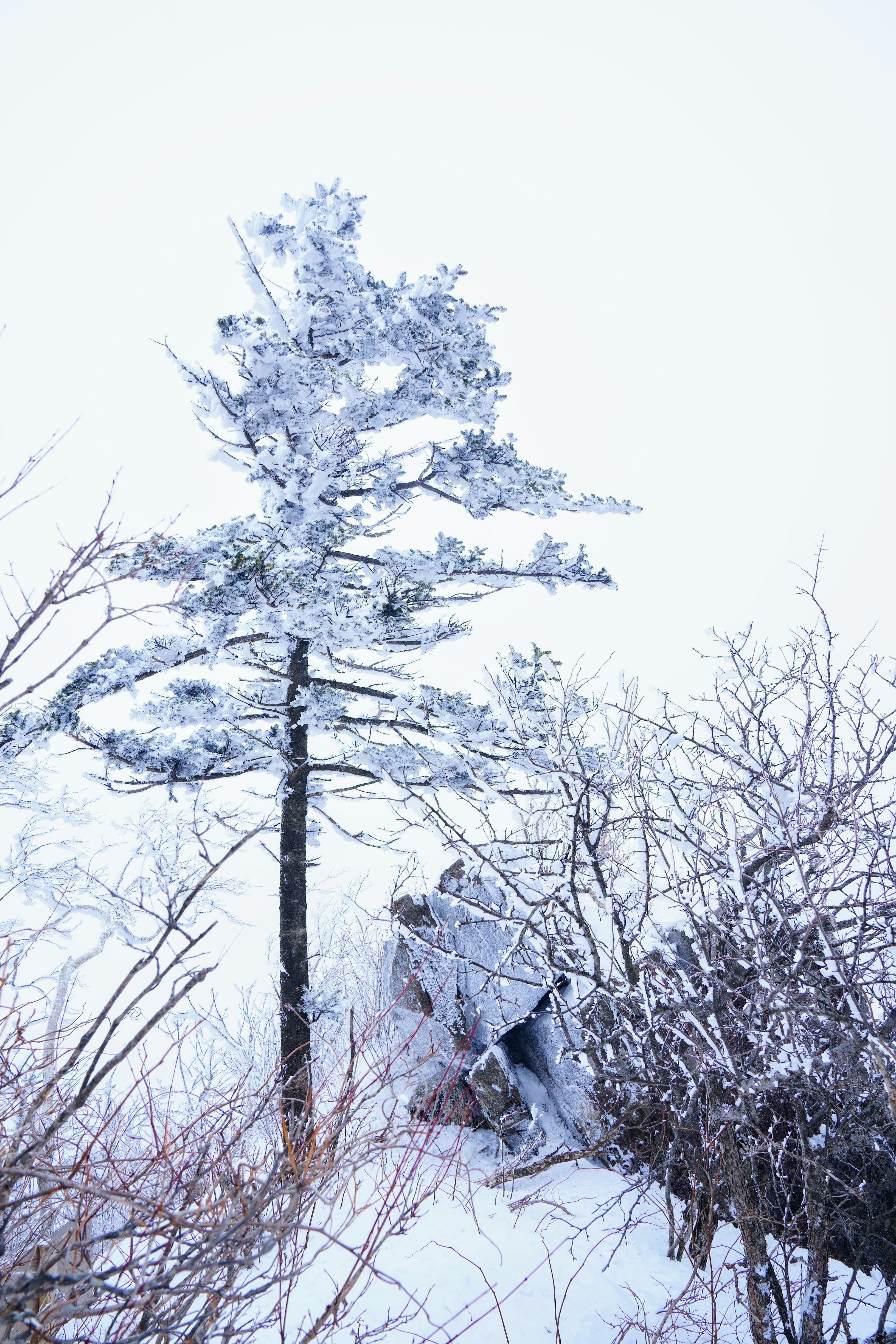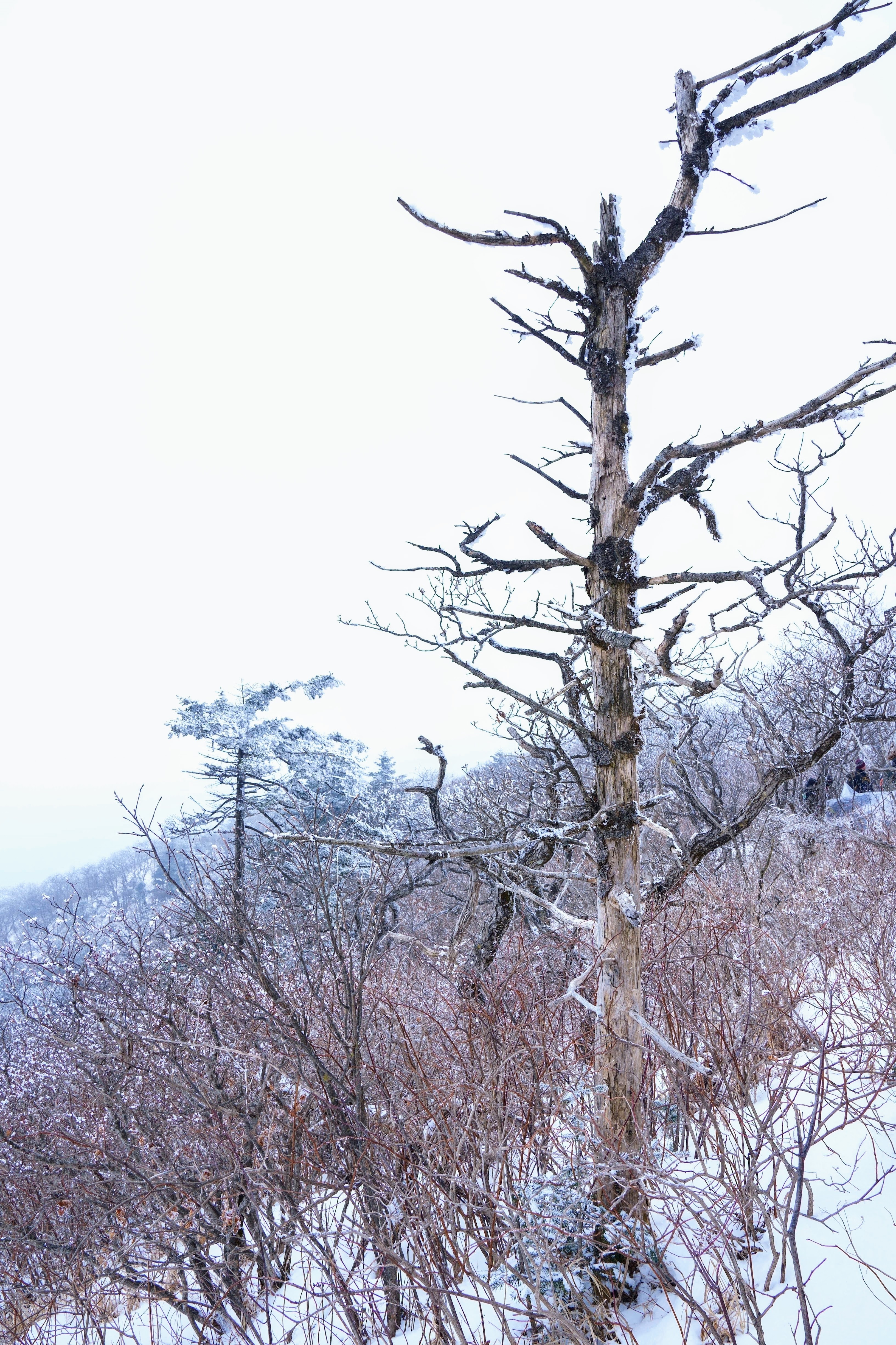 휴식을 마치고는 다시 배낭을 짊어지고 하산을 시작합니다. 능선을 따라서 진행하는데 구름에 갇혀서 시야는 보이지 않고 바람은 거세게 몰아칩니다. 중간 중간 나뭇가지에 붙은 상고대를 사진에 담으면서 진행하다 보니 삼거리가 나타나고 우회전해서 내려가니 바로 하얗게 눈을 덮은 주목들이 나타납니다. 주목에서도 사진을 담아가면서 하산길을 이어갑니다. 이후로는 산 정상에서 시간을 많이 소비했기에 빠른 걸음으로 눈길을 따라서 하산길을 이어갑니다.