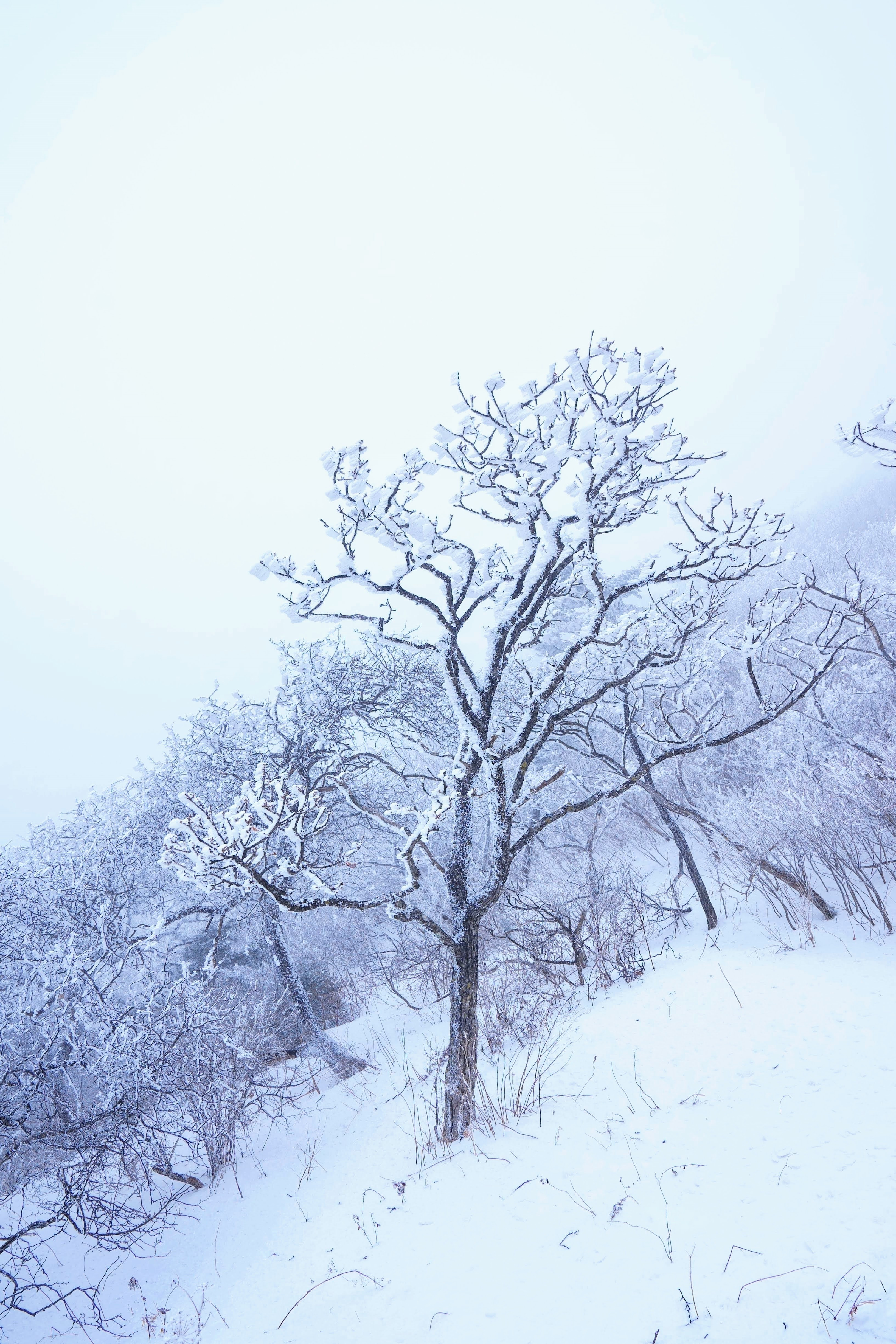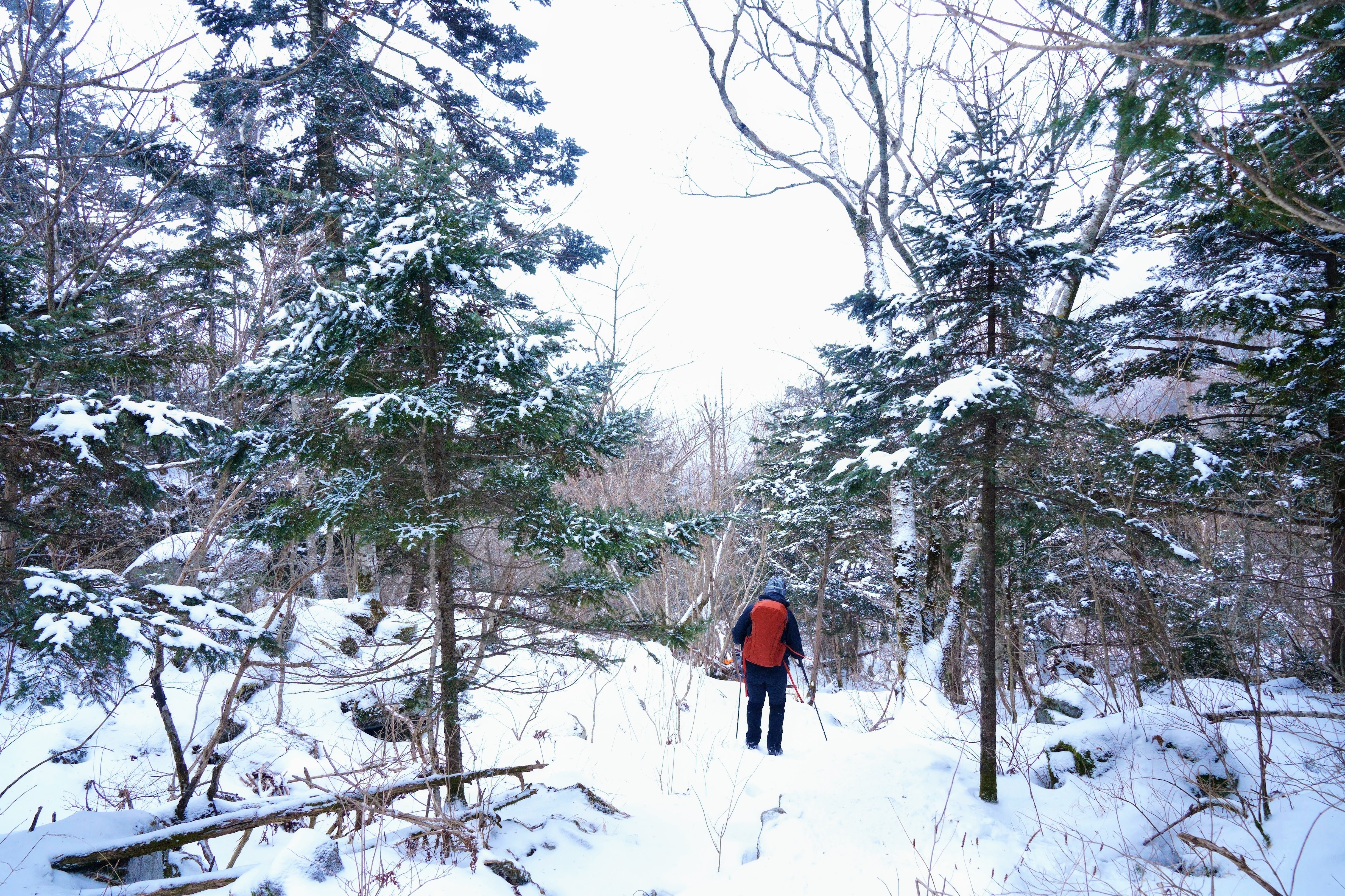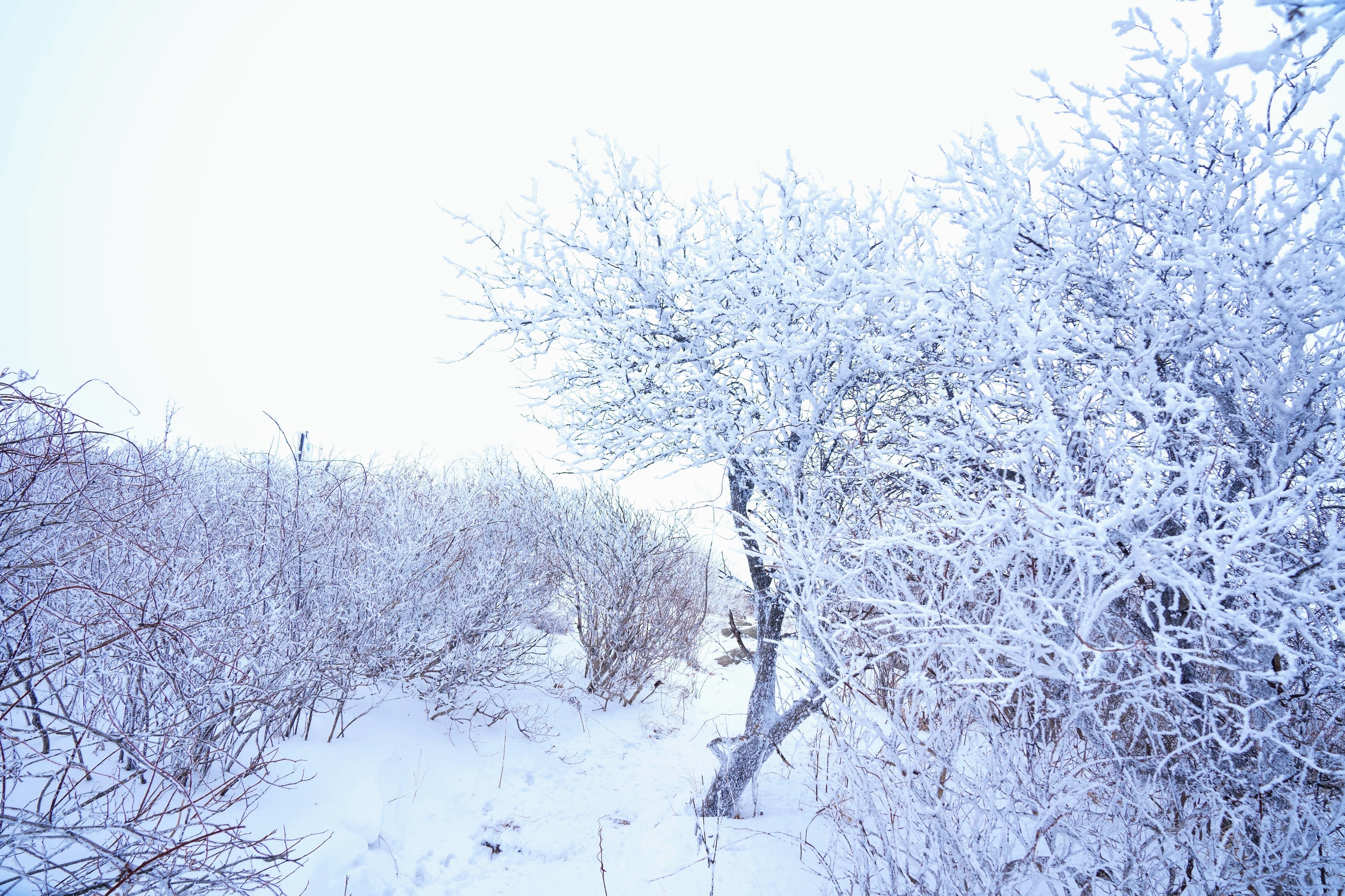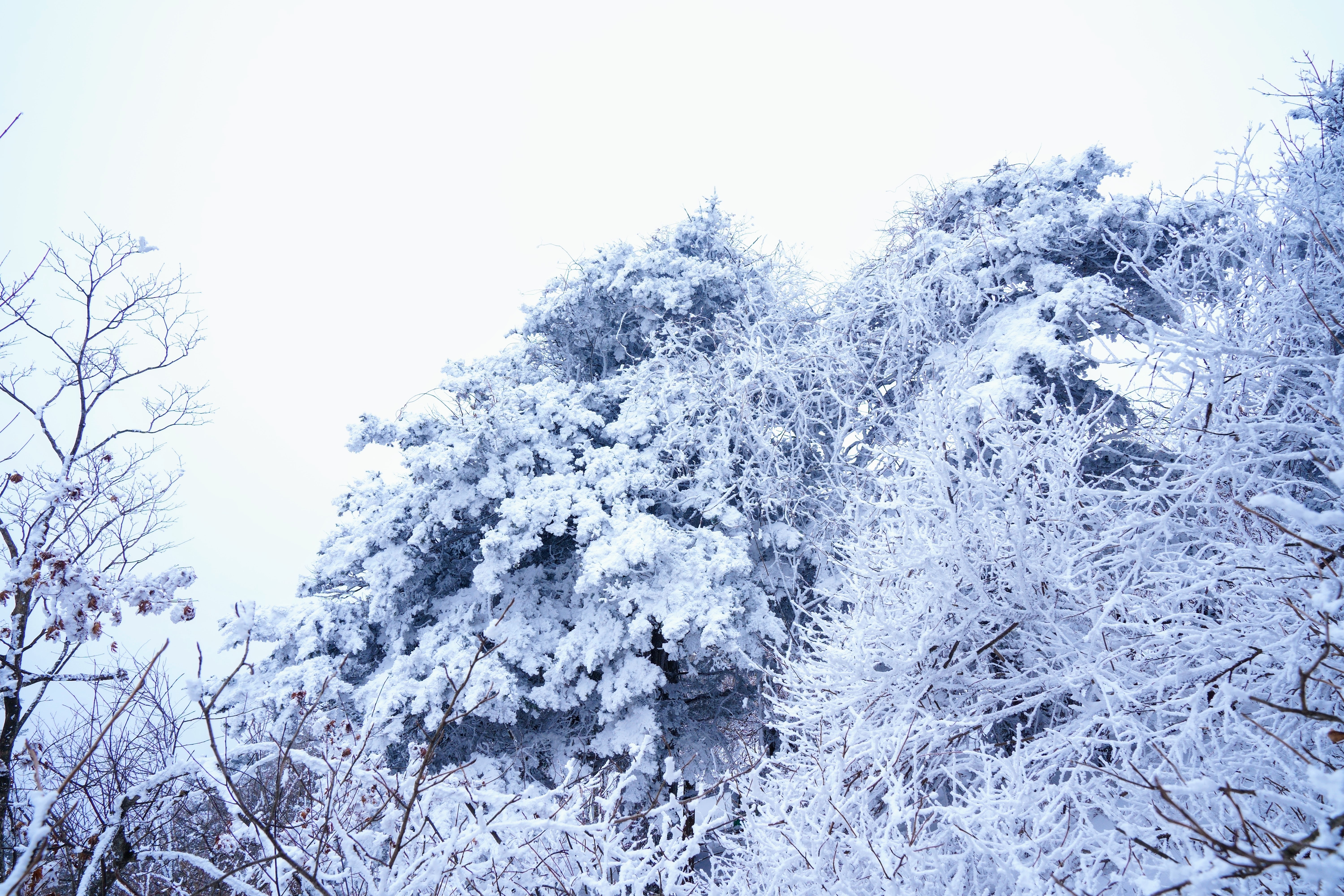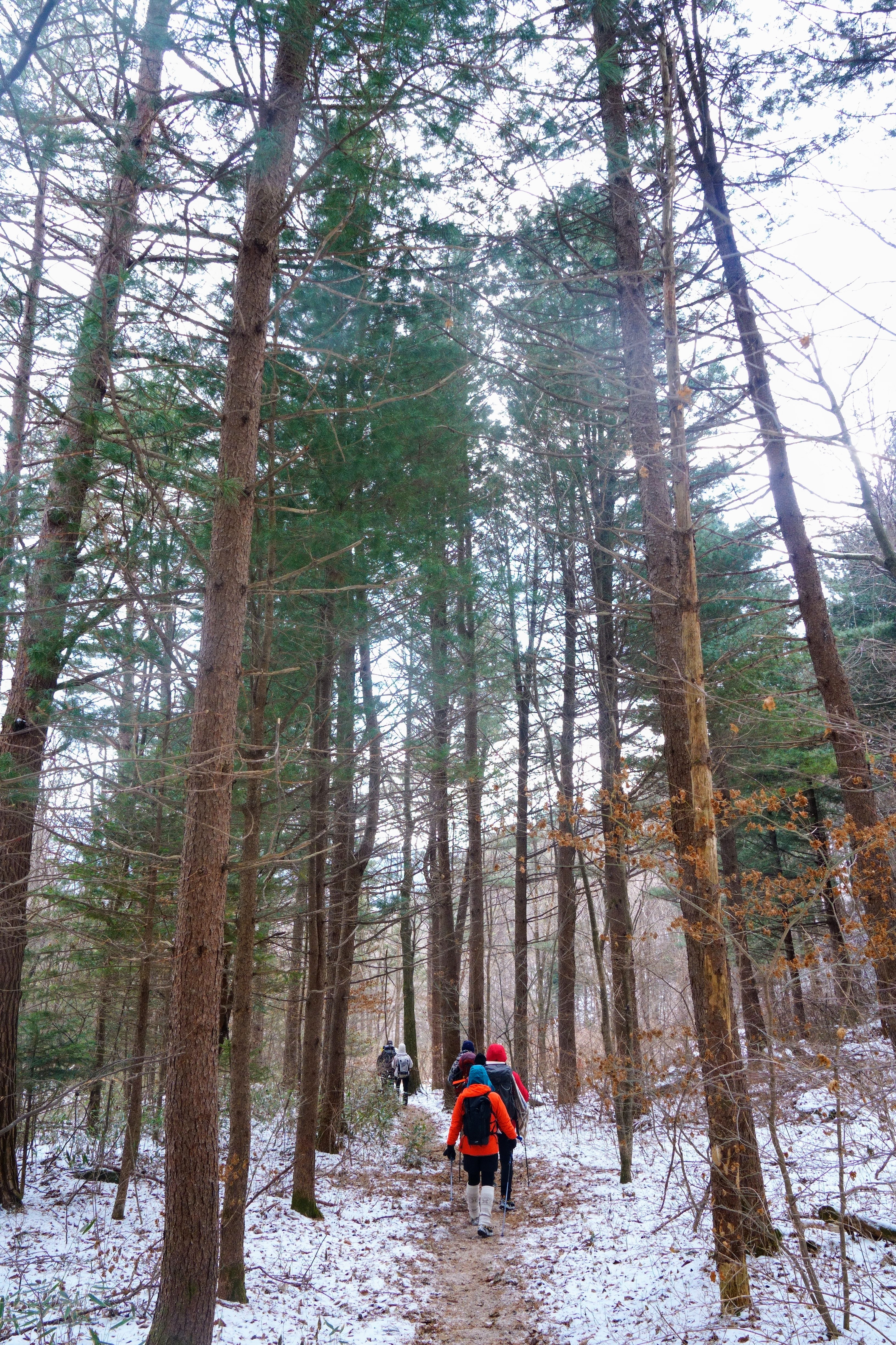휴식을 마치고는 다시 배낭을 짊어지고 하산을 시작합니다. 능선을 따라서 진행하는데 구름에 갇혀서 시야는 보이지 않고 바람은 거세게 몰아칩니다. 중간 중간 나뭇가지에 붙은 상고대를 사진에 담으면서 진행하다 보니 삼거리가 나타나고 우회전해서 내려가니 바로 하얗게 눈을 덮은 주목들이 나타납니다. 주목에서도 사진을 담아가면서 하산길을 이어갑니다. 이후로는 산 정상에서 시간을 많이 소비했기에 빠른 걸음으로 눈길을 따라서 하산길을 이어갑니다.