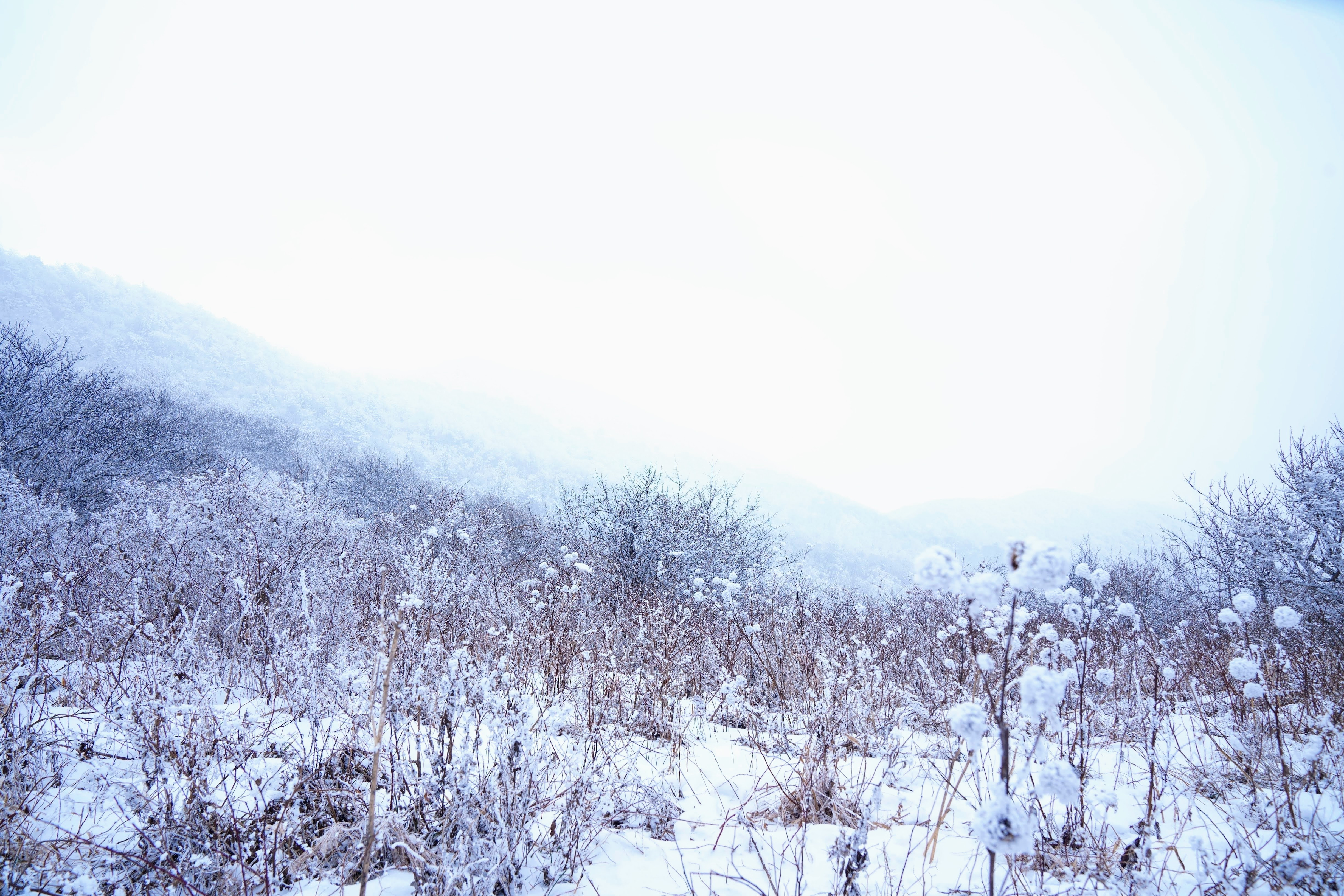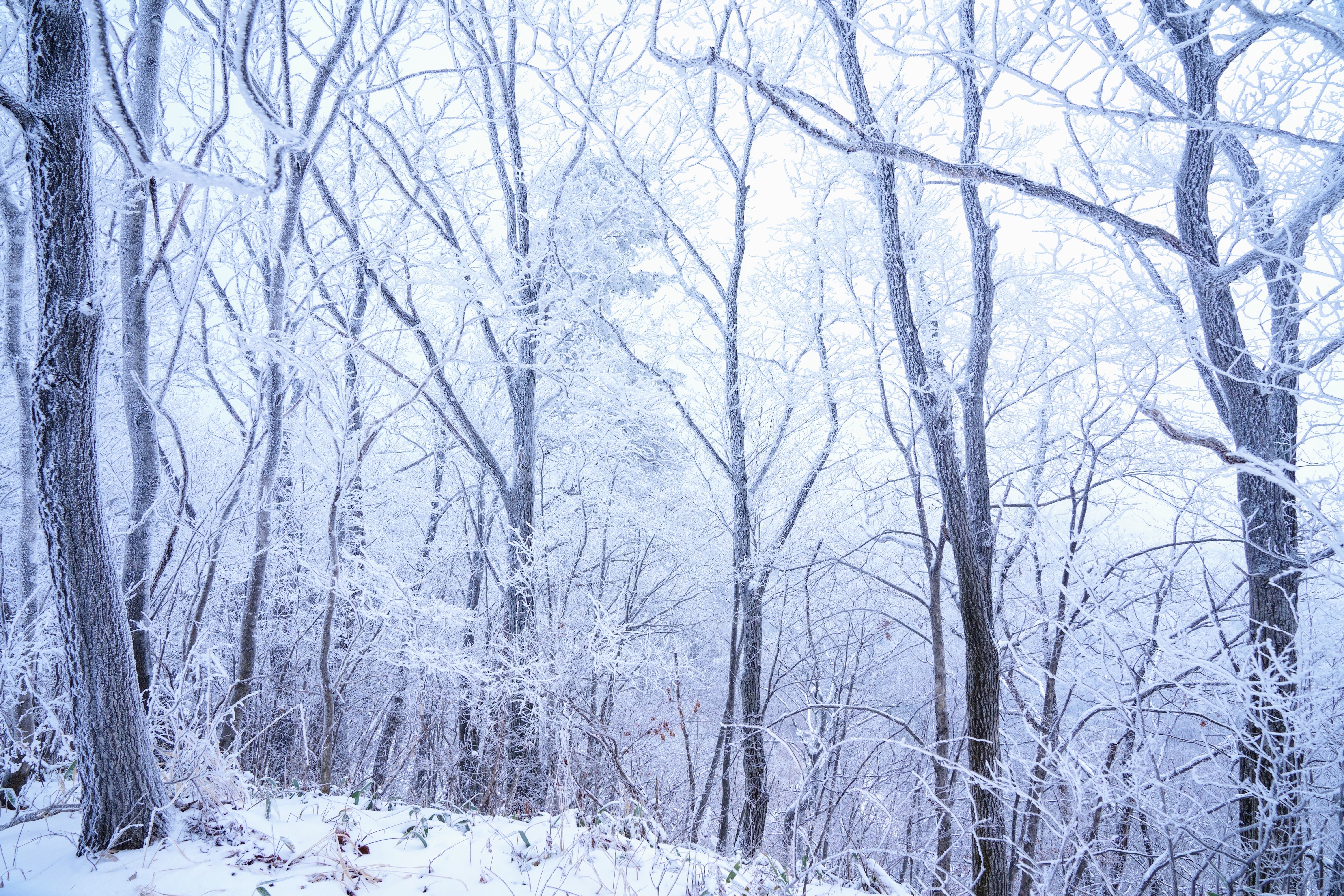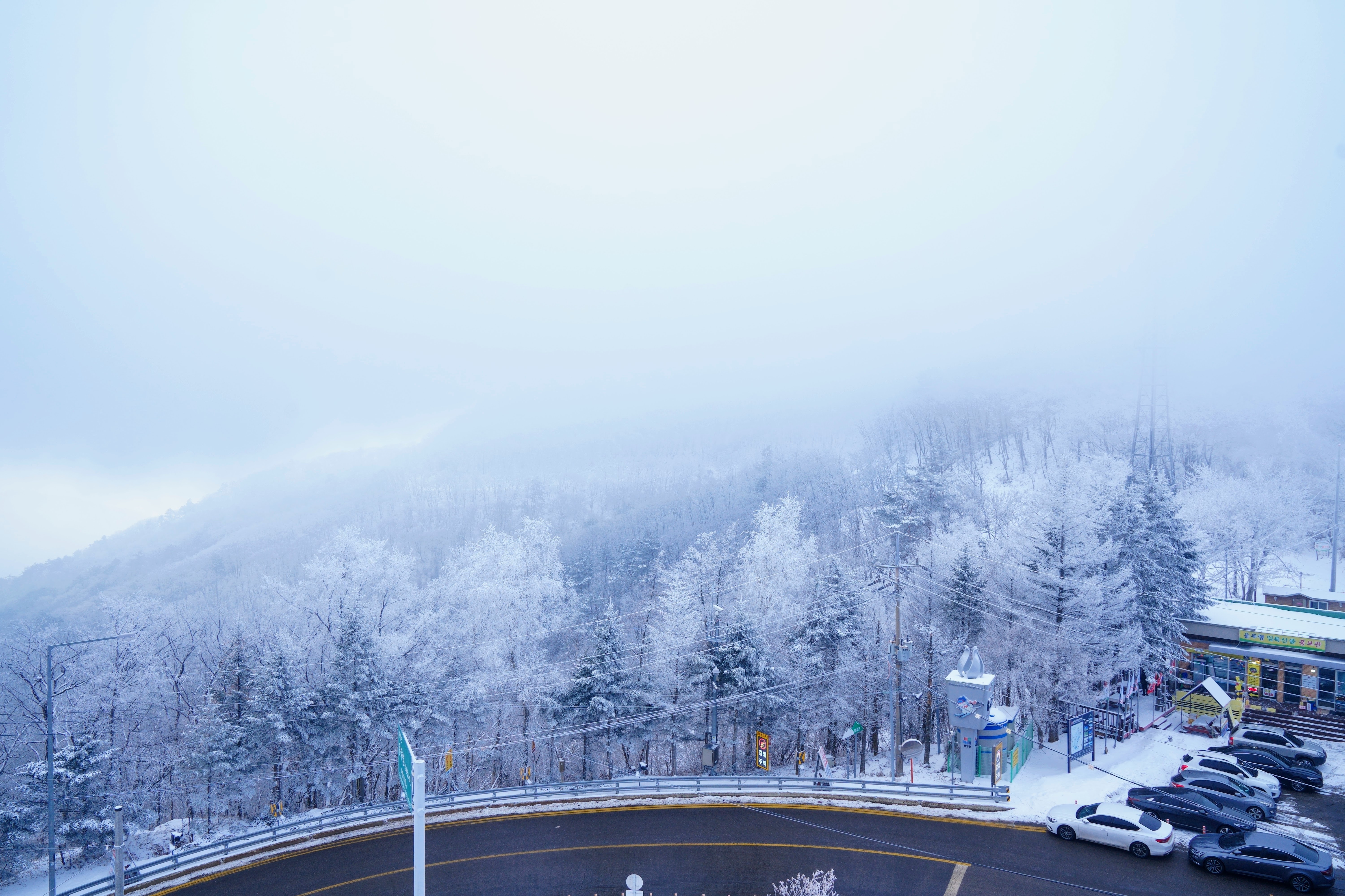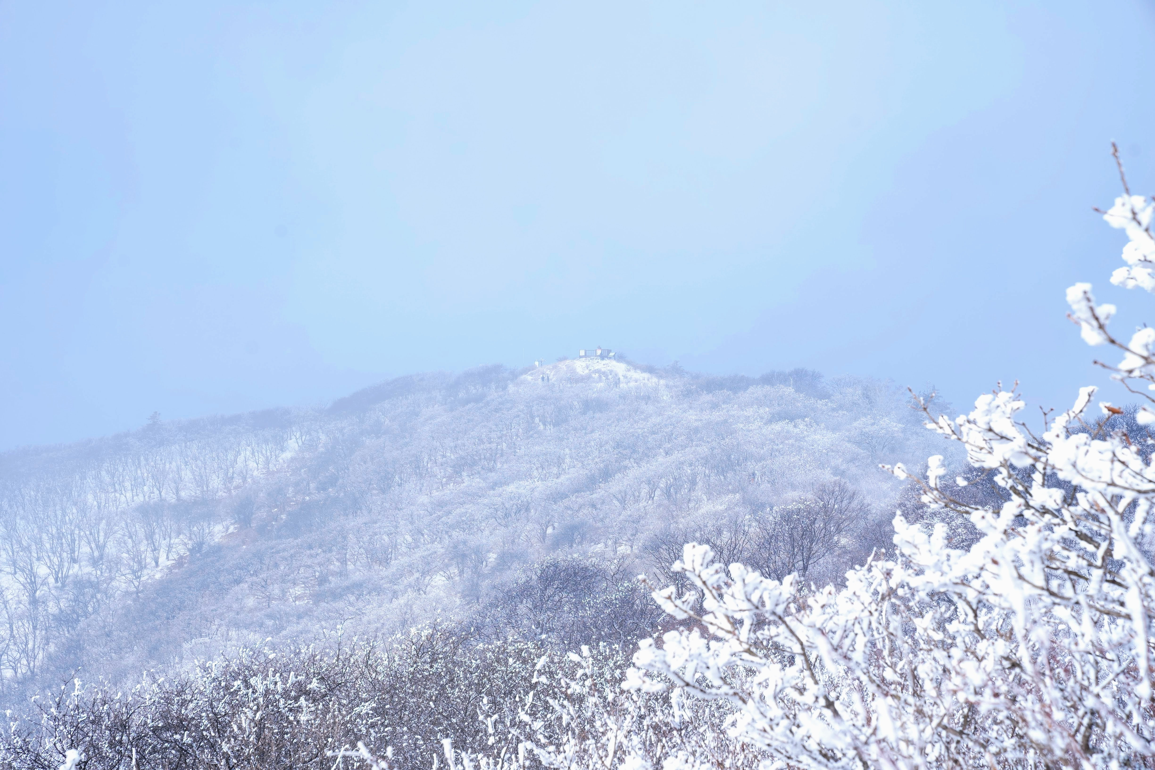 버스는 고속도로를 달려서 평창을 지나서 운두령으로 올라갑니다. 운두령이 가까워질 무렵 버스 창밖으로 산능선을 올려다 보니 예상대로 상고대가 하얗게 덮고 있습니다. 게다가 파란 하늘에 희미한 하얀 구름... 이정도면 이상적인 상고대 풍광이 예상됩니다. 마음 속으로 쾌재를 부르면서 마음이 급해집니다.