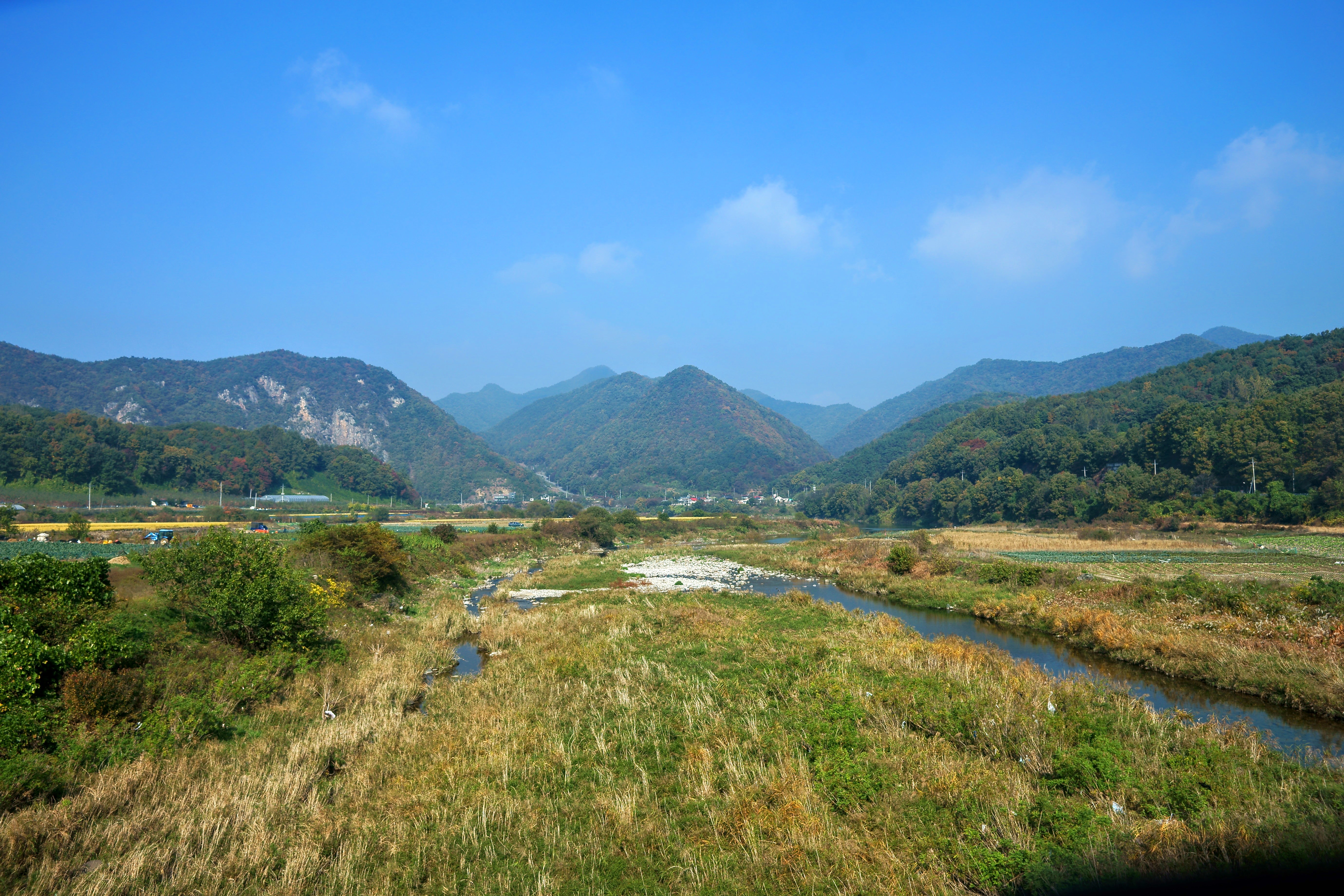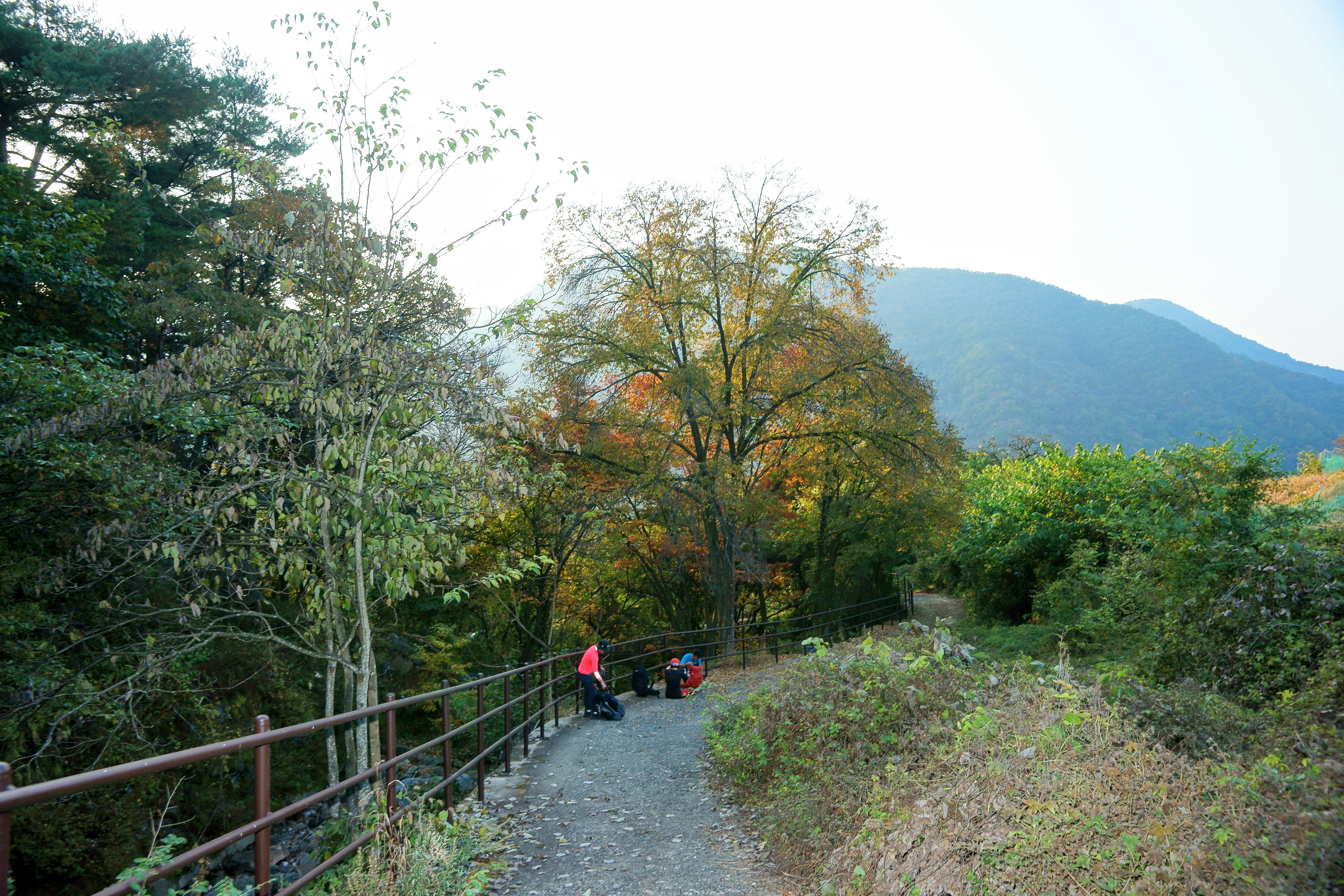단풍철이라서 역시 어느 정도의 교통체증으로 이동시간이 지체되어 수산교에 하차해서 산행 준비를 마치고 산행을 시작한 시간은 10시 15분.. 버스에서 내려다 보니 사방의 시계가 먼지가 낀 것처럼 좋지 않네요. 이상하게도 월악산에 와서 시야 좋은 날을 만나지 못한 것 같습니다. 시야가 맑아서 월악산의 능선에서 내려다 보는 호반의 풍광이 그림처럼 펼쳐질텐데...