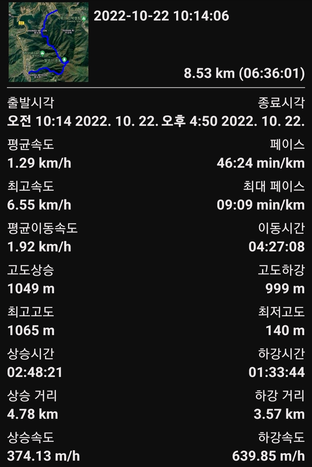 산행종료: 16시 50분