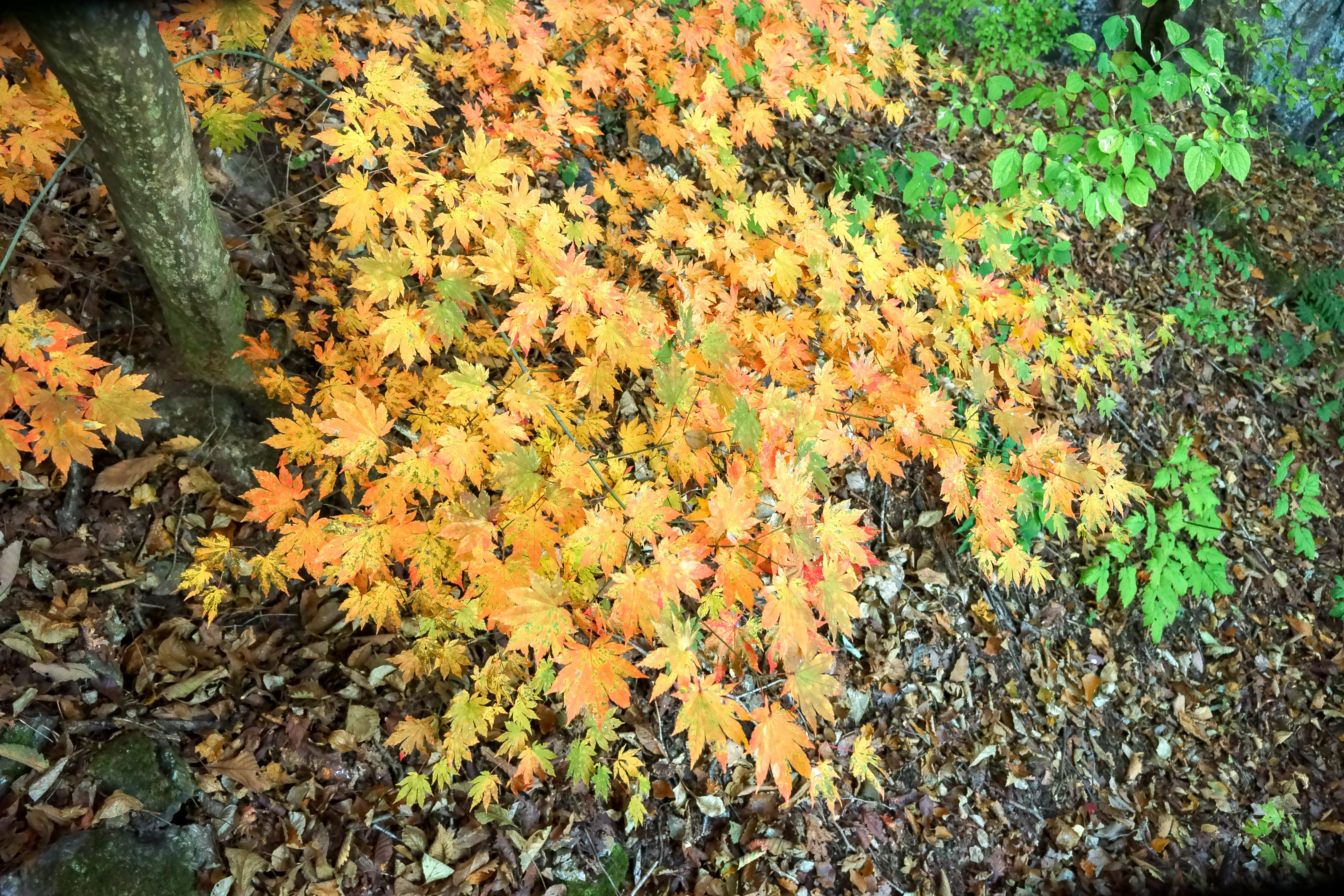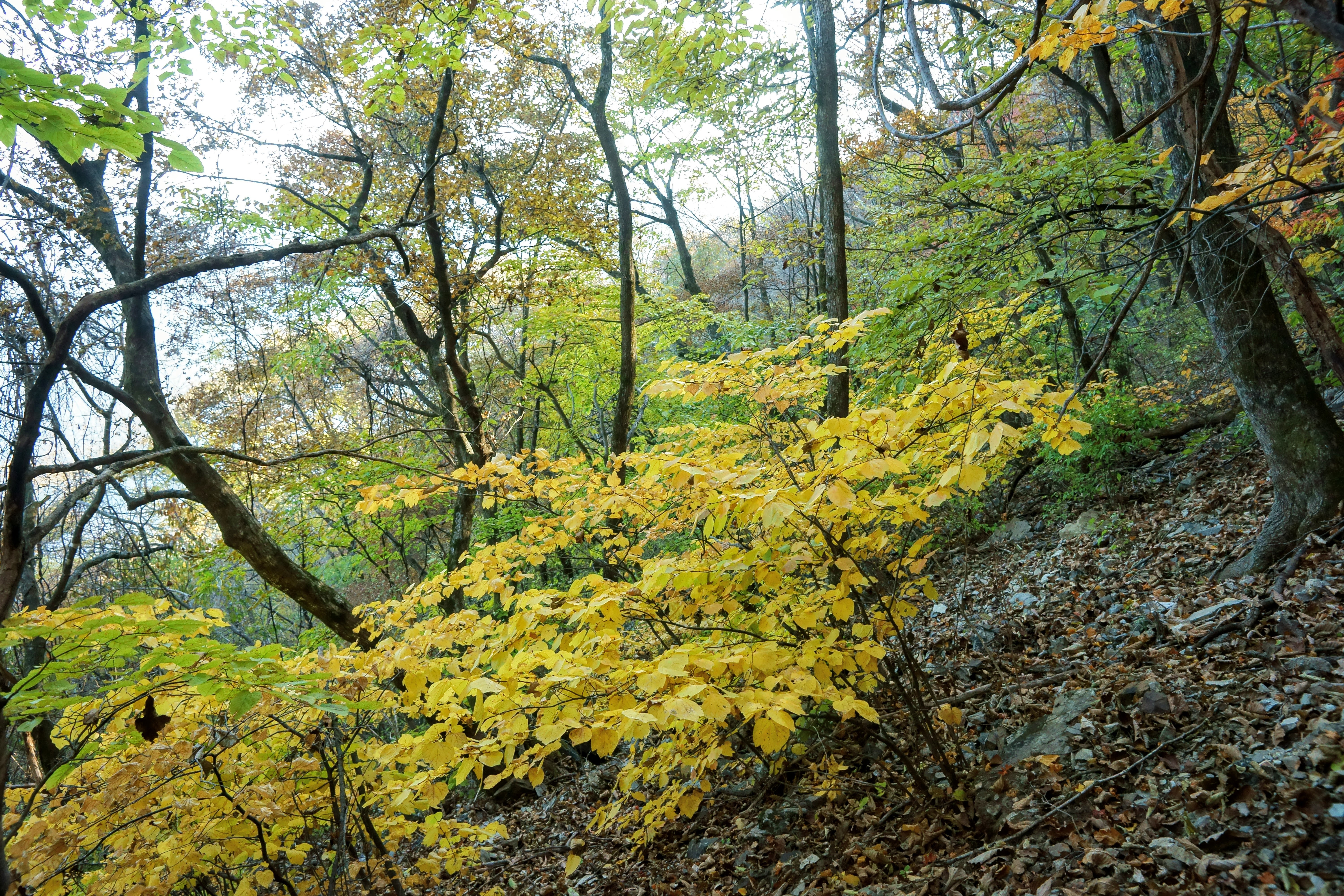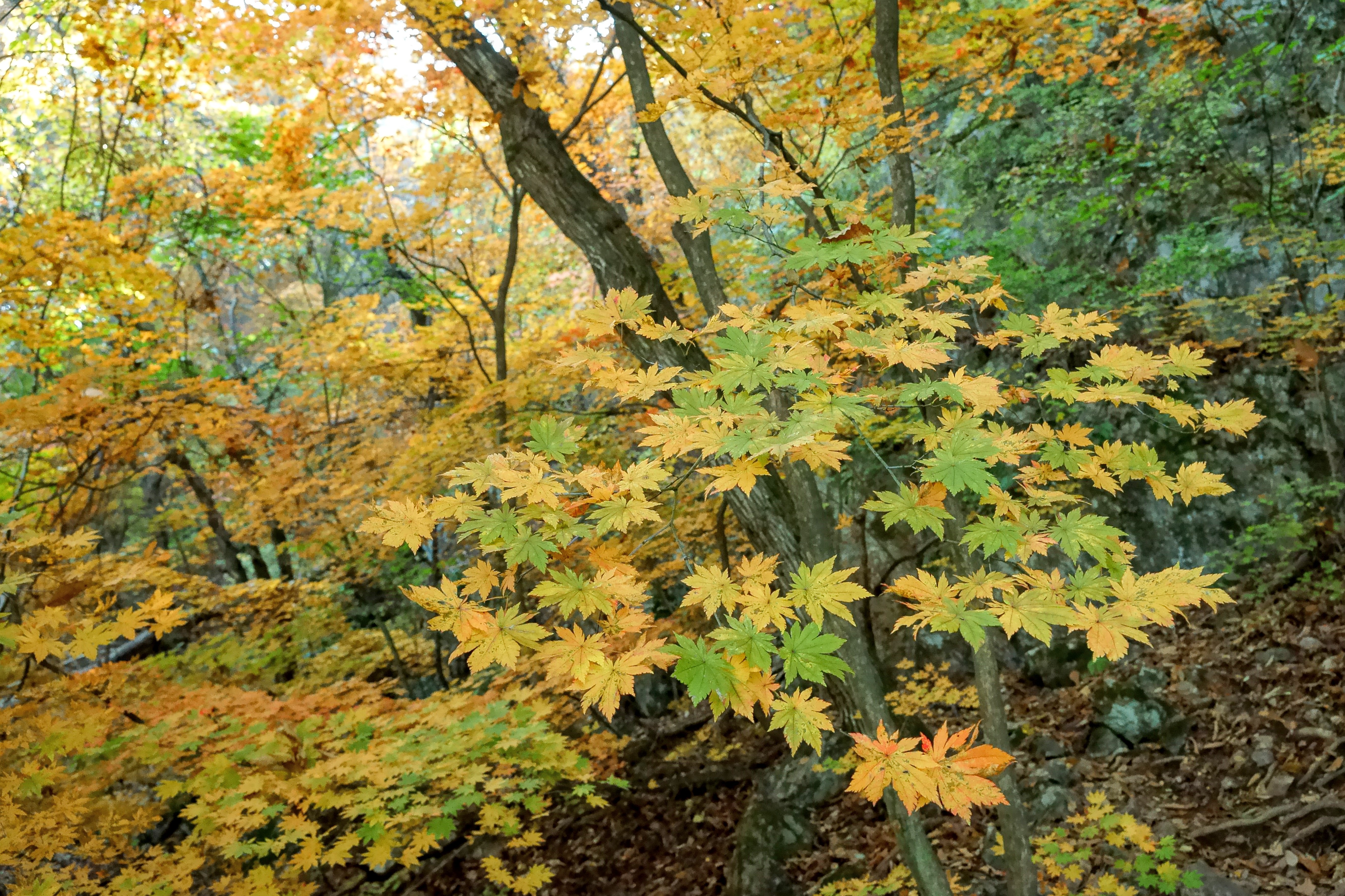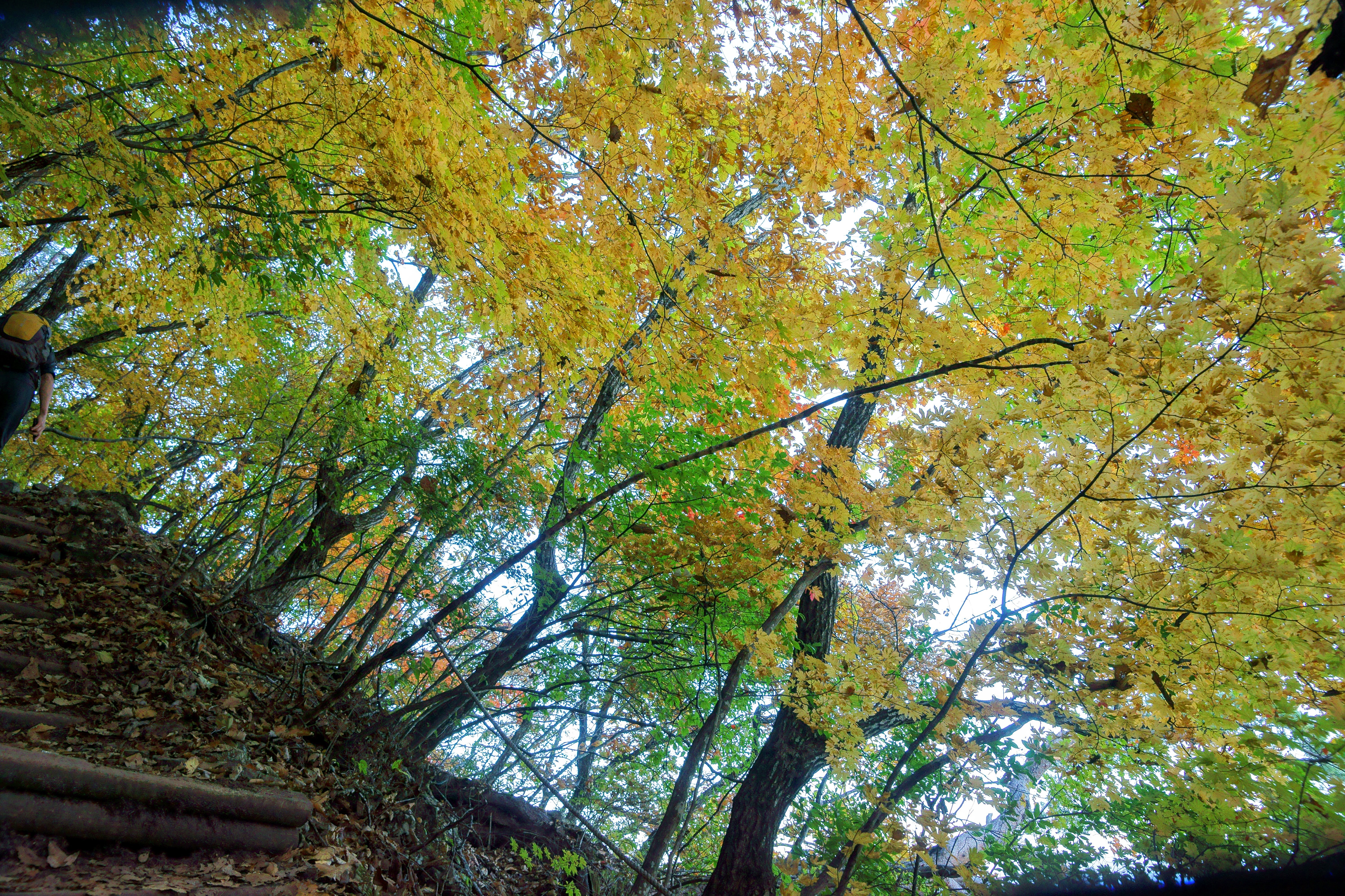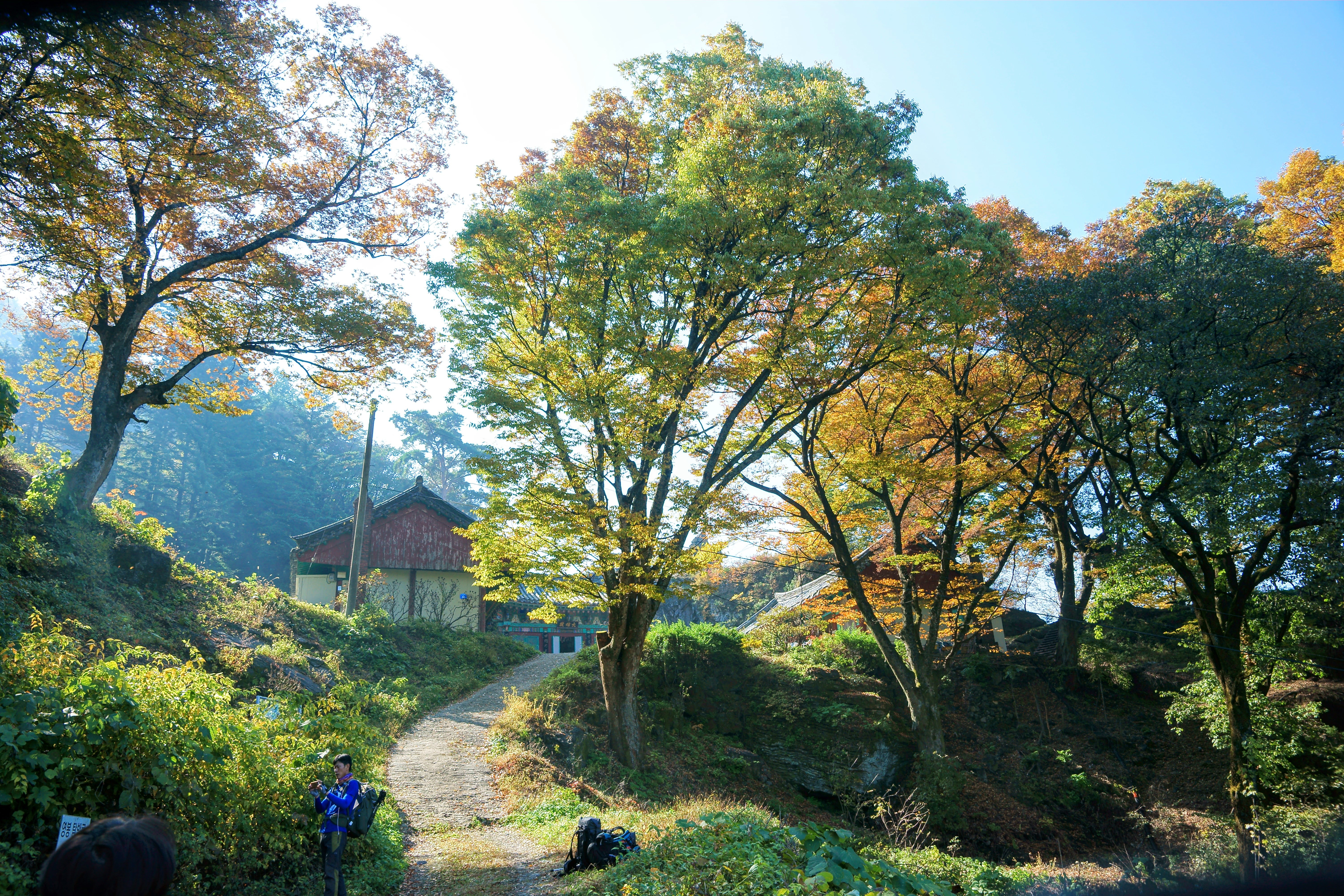 천천히 후미에서 걸어올라가다 보니 보덕암이 나오고 여기서 날씨가 더운 탓에 땀이 많이 쏟아지기에 얇은 티셔츠로 갈아 입고 능선길을 따라서 상승을 이어갑니다. 월악산의 단풍은 능선 주위로 있는 단풍이기에 마른 단풍이라서 단풍자체로는 그다지 점수를 주기 어렵네요.