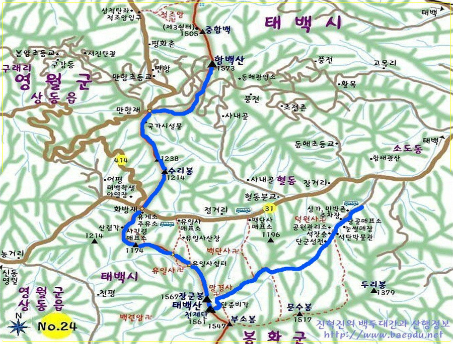 | 5.산 행 코 스 | 함백&태백(2산) : 만항재~함백산~만항재-(버스이동)-유일사~유일사쉼터~태백산장군봉~천제단~ 망경사~당골광장~태백산가는길식당 ( 약 10.5km ) 태백산만 : 만항재(대기)~유일사~쉼터~정상~천제단~망경사~용정~당골~태백산가는길식당(약 8.2km ) 함백산만: 만항재~함백산정상~만항재~태백산 당골에서 자유시간(약2Km) @산행 후 당골주차장 우리 전용 식당 태백산가는길 옆 버스 대기@ |