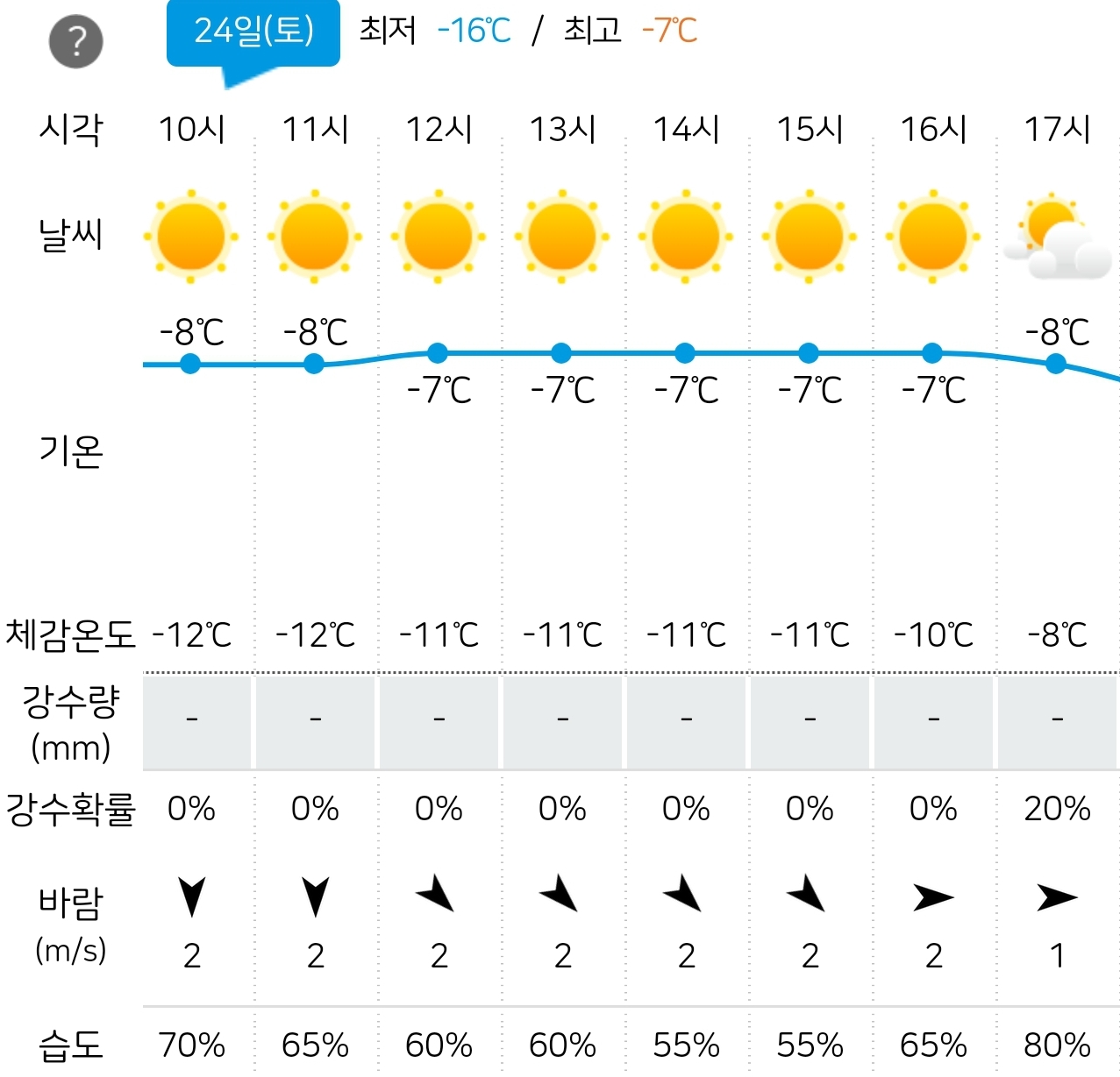 - 보온을 위한 방풍 방한복 및 장갑 착용 필수