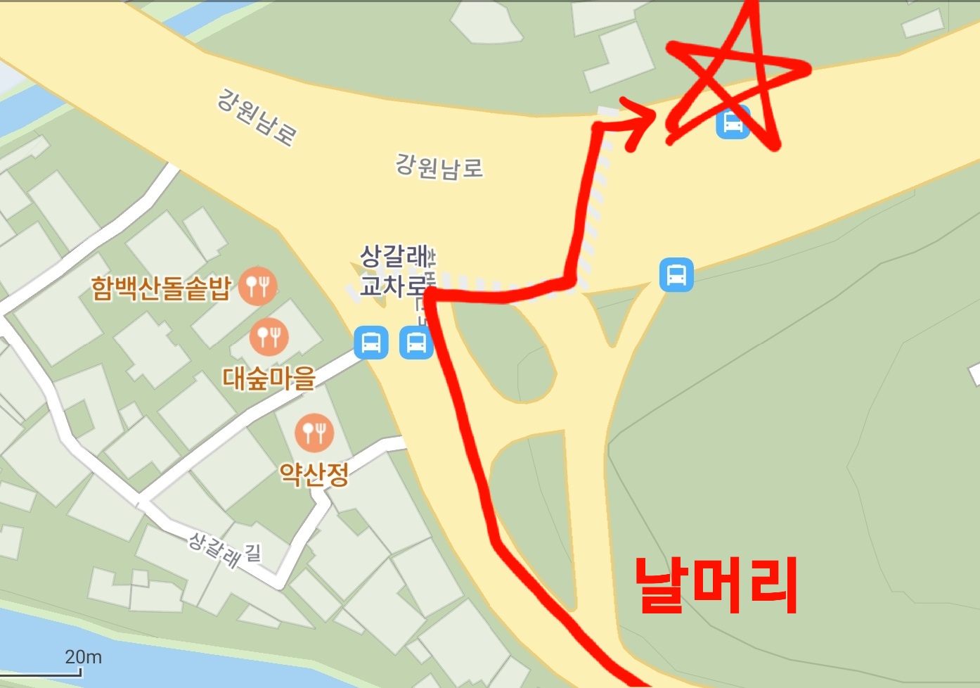 - 식당 '태백산 가는길' 바로 옆 도로가