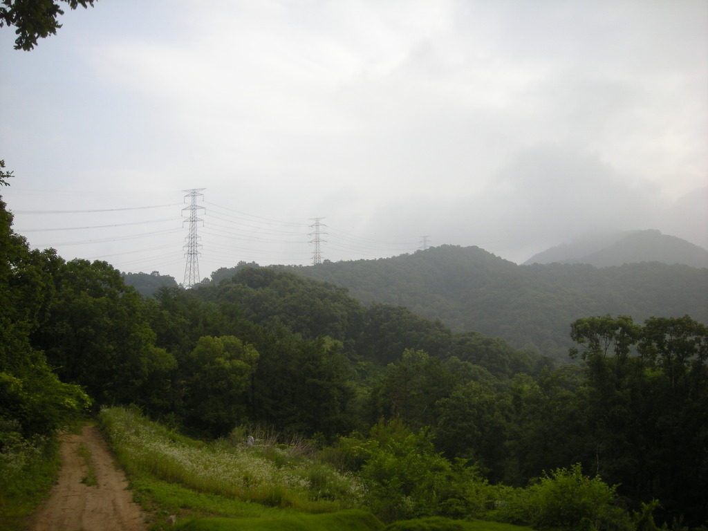 코스 날머리를 진행 할 쯤에 소나기가 세차게 내렸고, 그 와중에 코스를 잃어버려 길도 없는 험한 산비탈을