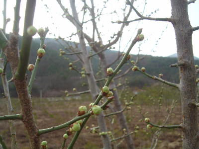 매실 꽃망울이 움트이고 있습니다.