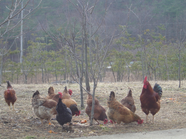 앞집 닭들이 날마다 산야에 널려 있는 벌레들을 정리하고 있습니다.