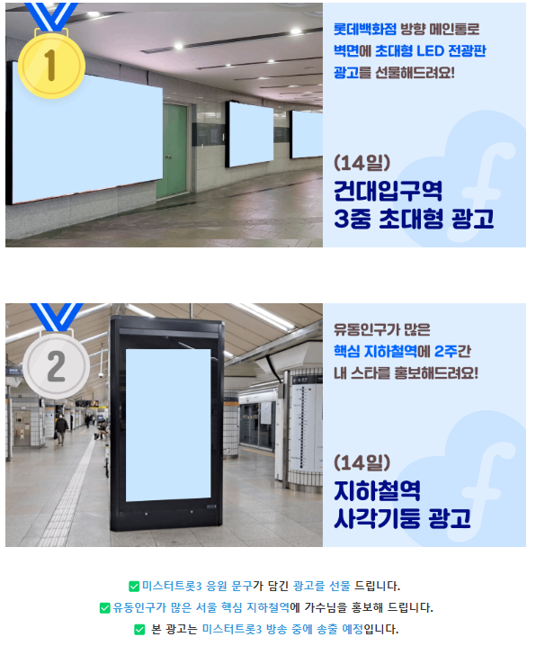그리고 무엇보다 좋은 건 1,2위에게는 이렇게 지하철 광고 해주나봐요