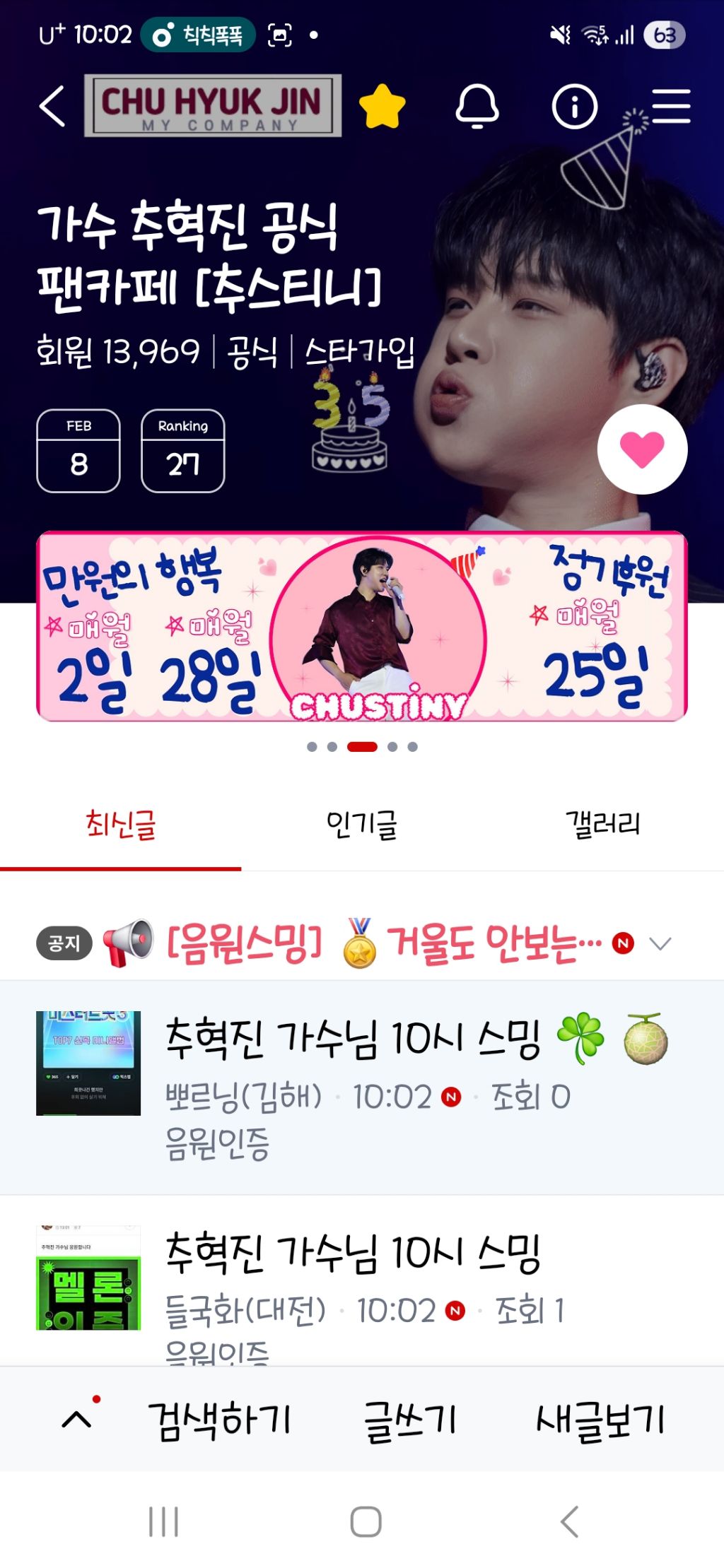 추혁진님 10시♥️ 작성자뽀르닝(김해)|작성시간26.02.08|조회수3 목록 댓글 1 글자크기 작게가 글자크기 크게가 다음검색 현재 게시글 추가 기능 열기 북마크 공유하기 신고 센터로 신고 댓글 댓글 1 댓글쓰기 답글쓰기 댓글 리스트 작성자천사윤(김해)l경상지역장 | 작성시간 26.02.08 new 뽀르닝님 추혁진 가수님을 향한 ❣️ 감사랑합니당 😍 댓글 전체보기