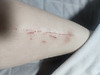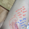 왼쪽 다리 무릎 위 혈관 공격으로 멍이 듦