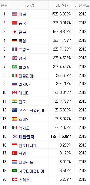 [스크랩] 2002년 vs 2012년, 국가별 총 GDP 순위 작성자진해|작성시간14.04.10|조회수242 목록 댓글 0 글자크기 작게가 글자크기 크게가 명목상 GDP 기준임. 2002년 2012년 다음검색 스크랩 원문 : 이종격투기 현재 게시글 추가 기능 열기 북마크 공유하기 신고 센터로 신고 댓글 댓글 0 댓글쓰기 답글쓰기 댓글 리스트