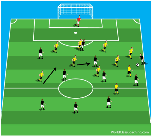 (사진에서도 볼 수 있듯이 측면 풀백과 센터백에 따라 팀의 전체적인 'ㅡ' 자 대형이 유동적으로 형성됨을 알 수 있다)