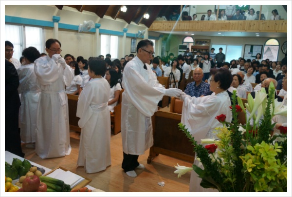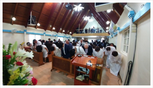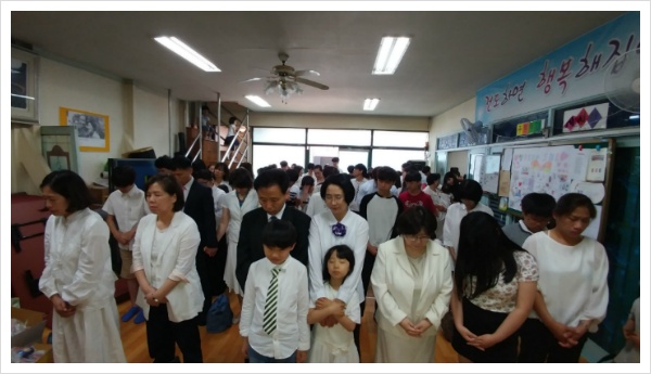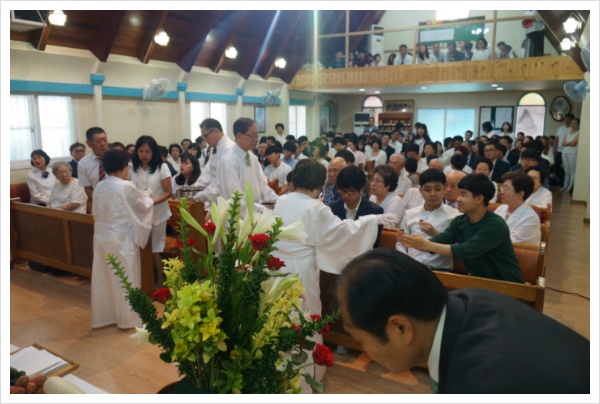 오랜만에 식구들로 성전과 소성전, 등을 가득 채운 가운데 회개와 상속, 결의와 새출발의 엄숙한 분위기 속에서 예배를 마치고 화기애애한 분위기속에 떡과 과일, 음료로 점심식사를 대신하였다.