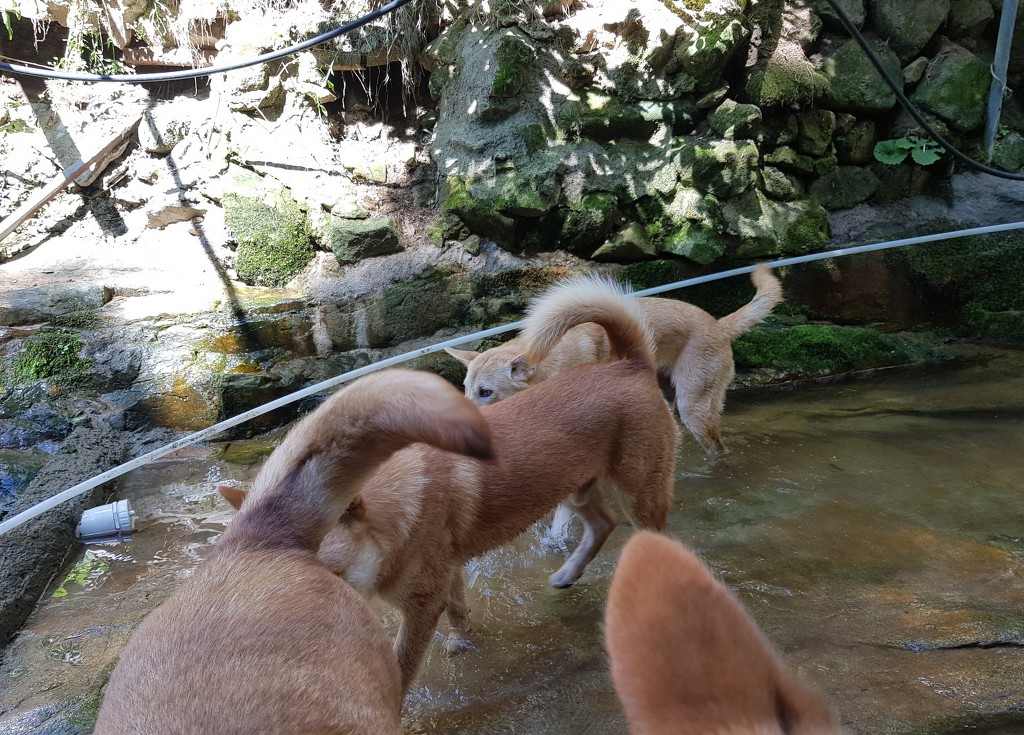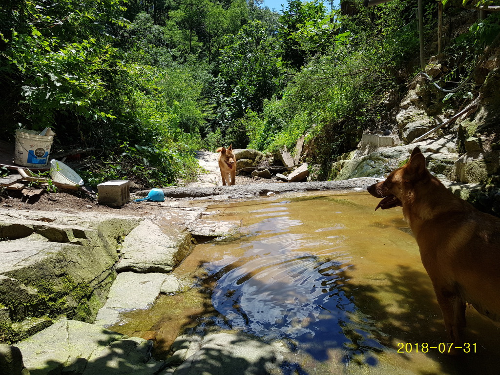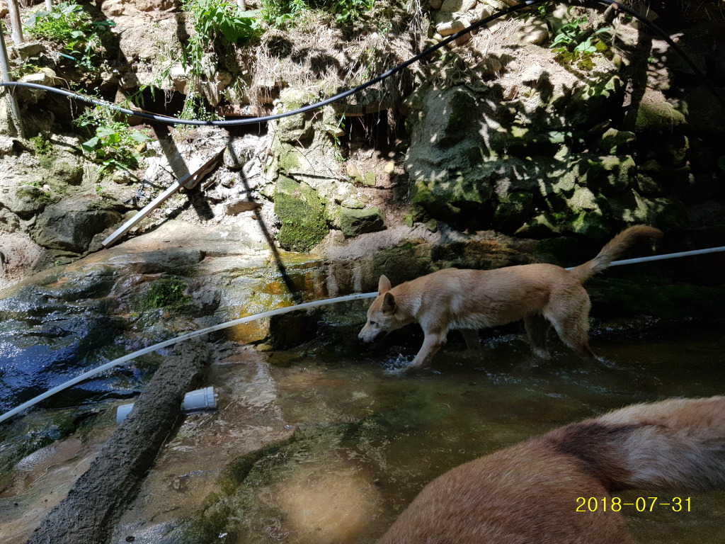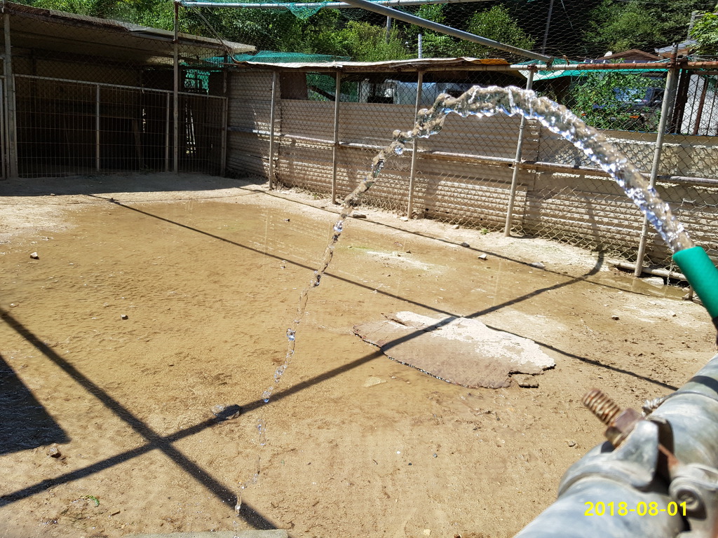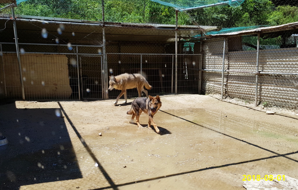 관측이래 최대의 무더위를 애견들은 계곡으로 피할수 있지만 늑대들은 늑대 막사 밖으로 나올수 없어 계곡물을 끌어 마당에 넣으니 온도가 많이 떨어져 늑대들도 생기가 돌고 활력을 찿은것 갔읍니다