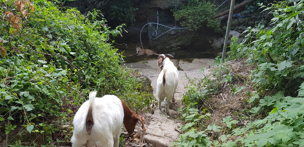 ㅇ 무더위를 피해 걔곡으로 내려오는 염소들