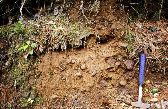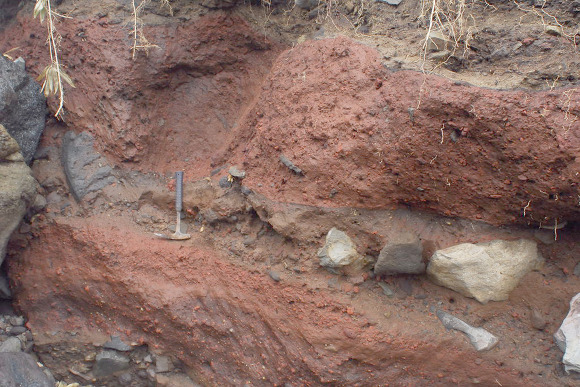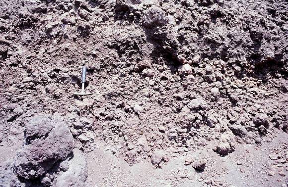 답댓글 작성자장두곤 작성시간 12.02.16 1) 본문의 사진5 가 소위 제가 알고 잇는 " 송이층"과 유사한 그림으로 우선 1~4)의 다른 그림들과 차별되는 특징으로서, 우선 matrix의 색깔이 붉고, 수십cm~ 수m 에 이르는 이암(?) 사이에 원마도가 아각~각형 이고 입도가 불량한 자갈이 포함된 지층으로 기억됩니다. 그리고 고화된 상태가 마치 화성기원의 용결 형태를 보엿습니다.