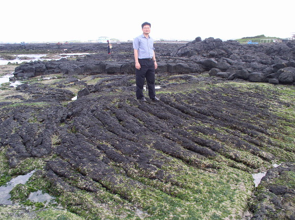 사진 1. 표선리현무암군의 파호에호에 용암, 새끼줄구조가 발달되어 있다. 구좌읍 월정리해안.