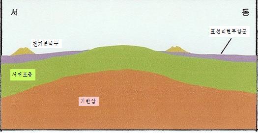 도면. 2. 표선리현무암군 시대의 모식단면도. (윤선 외, 2009, MS.)