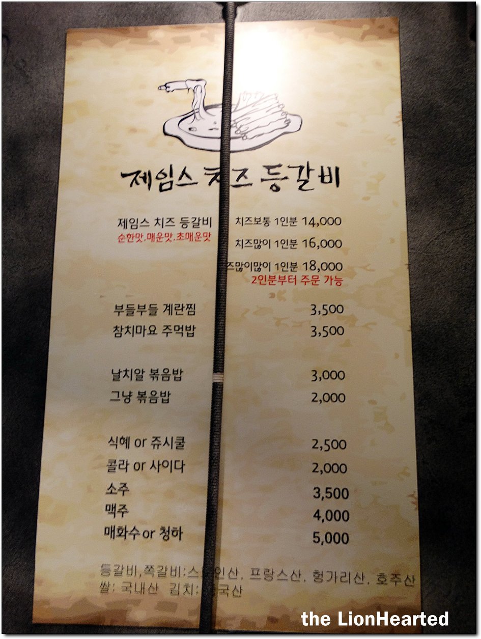상호에 '제임스'란 단어가 들어 있어서 등갈비 등의 음식을 서부스타일로 조리되어 나오는 것으로 생각했었다, 평소에 잘 먹지 않는 메뉴인데다가 서울 홍대쪽에서 힛트를 치고 있는 메뉴라고 하길래 관심이 간 것은 사실이다,