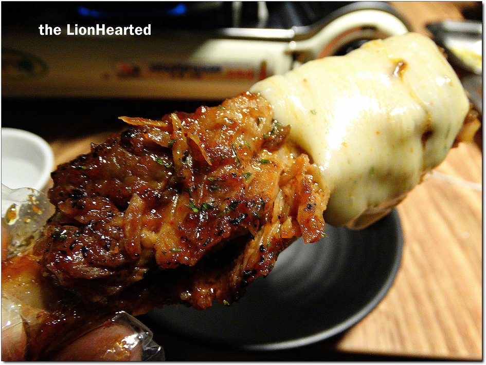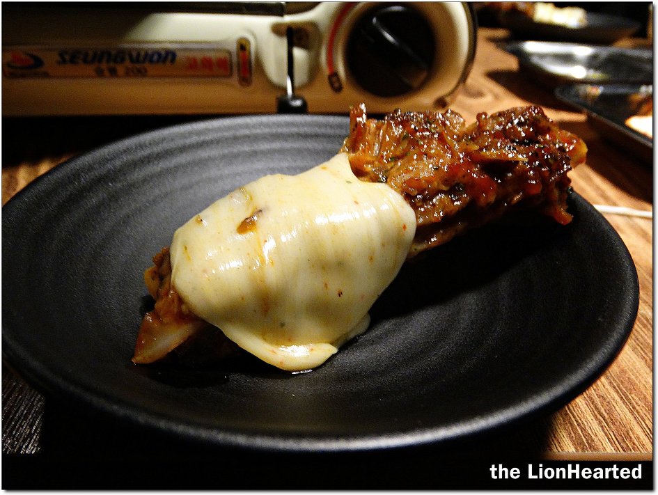 잘 녹은 치즈를 ~ 등갈비나 쪽갈비 한 조각에 돌돌말아서 먹는다,