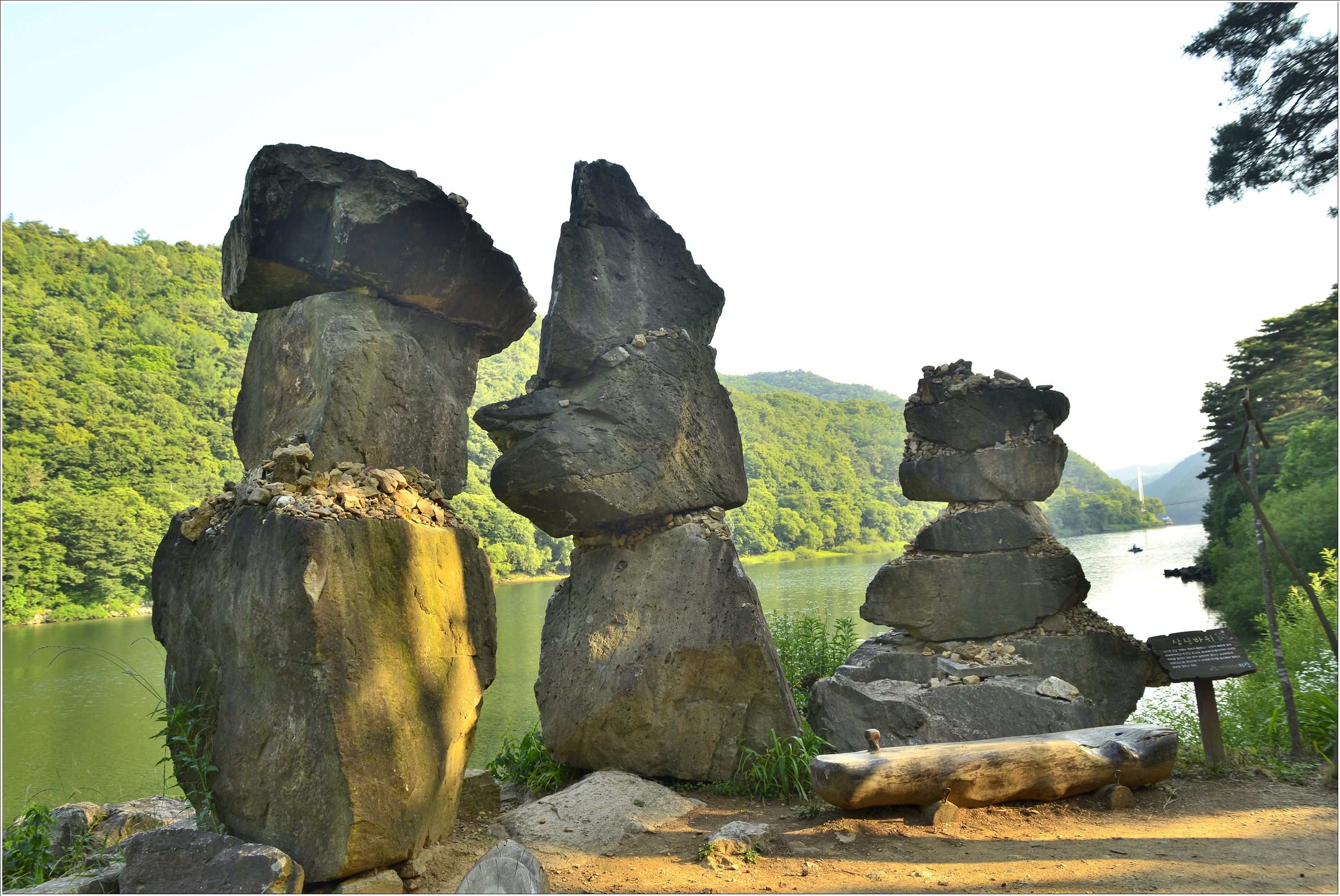 지나 500여m 더 가면 괴산호를 지키는 삼신바위가 있다.