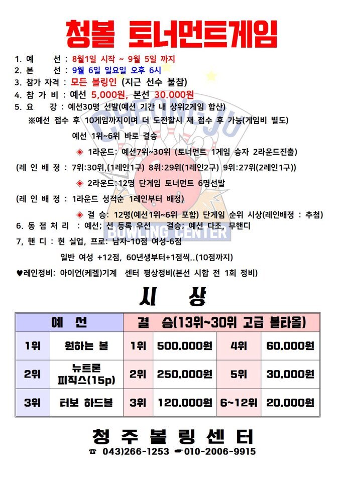 청주볼링장 토너먼트게임 작성자진이|작성시간20.07.25|조회수131 목록 댓글 0 글자크기 작게가 글자크기 크게가 8월1일부터 시작 다음검색 현재 게시글 추가 기능 열기 북마크 공유하기 신고 센터로 신고 댓글 댓글 0 댓글쓰기 답글쓰기 댓글 리스트