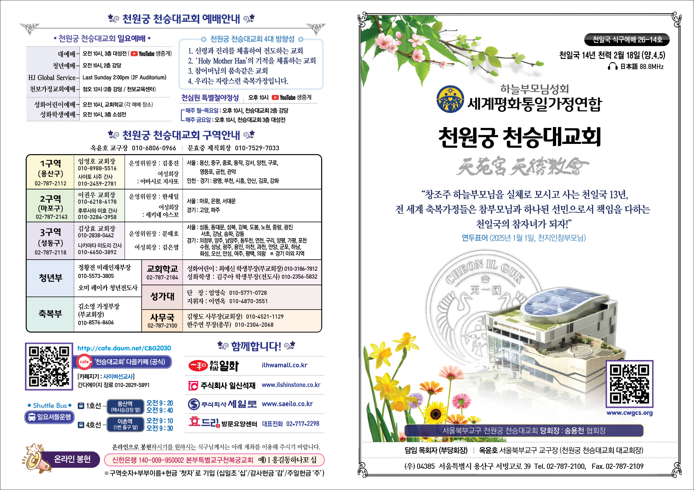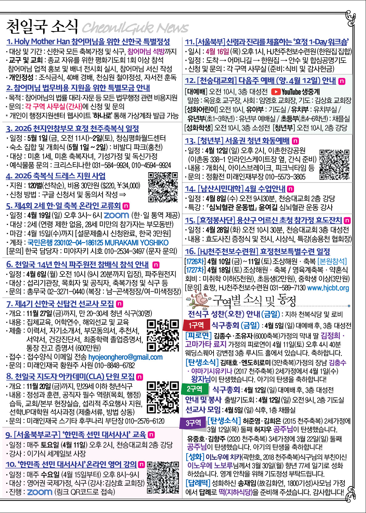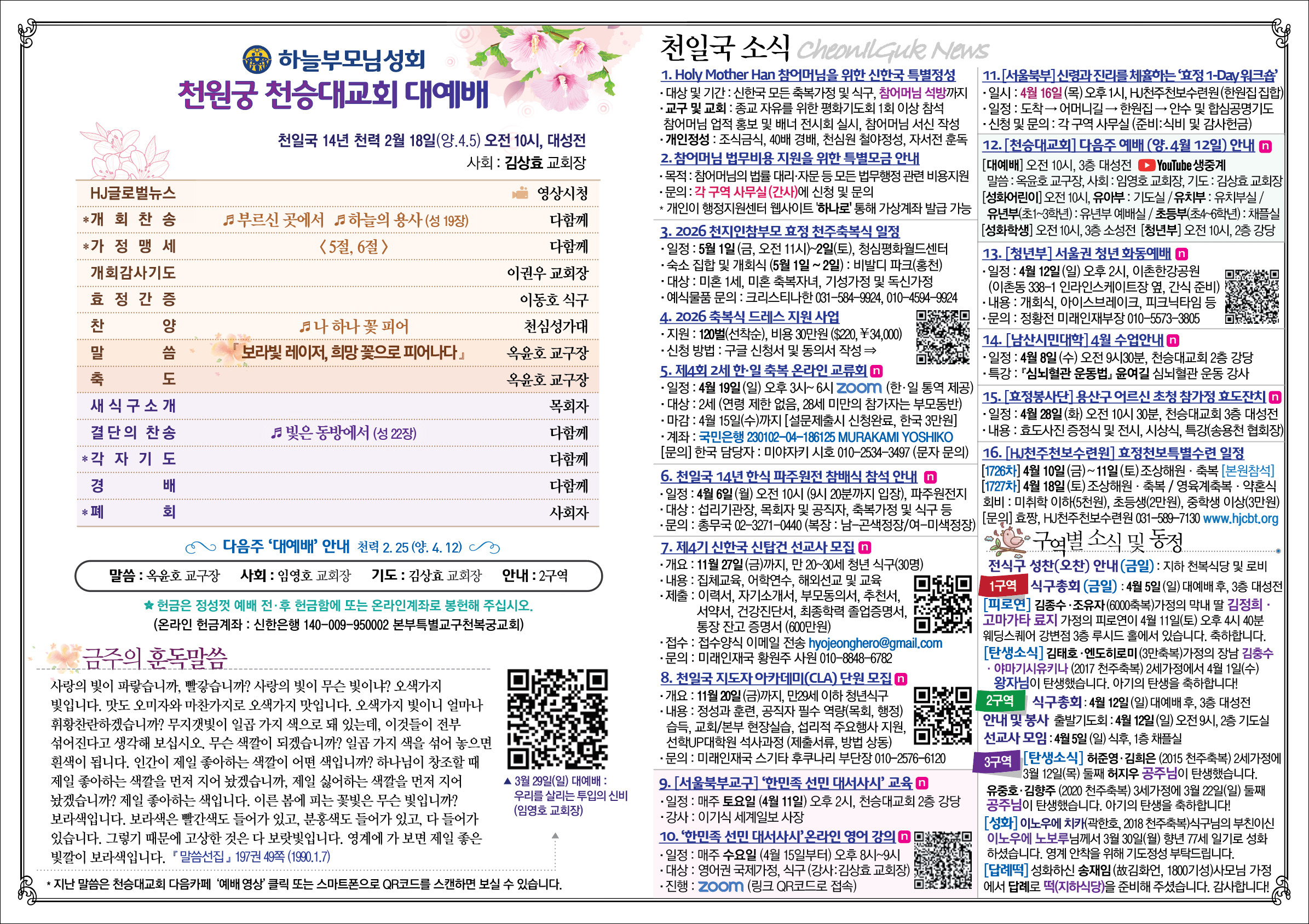 천일국 14년 천력 2월 18일 (양.4.5) 작성자CWG_CS|작성시간26.04.04|조회수119 목록 댓글 0 글자크기 작게가 글자크기 크게가 다음검색 현재 게시글 추가 기능 열기 북마크 공유하기 신고 센터로 신고 댓글 댓글 0 댓글쓰기 답글쓰기 댓글 리스트