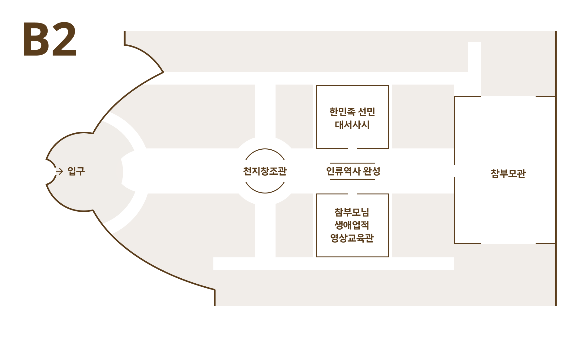 하늘부모님 꿈의 완성, 천원궁 하늘이 보이는 투명한 유리 천장은 지상의 인류가 천원궁에서 하늘과 소통하는 공간을 상징합니다. 3단으로 구성된 빛의 기둥은 각각 천상세계와 지상세계, 그리고 천상과 지상을 하나로 이어주신 참부모님을 상징합니다. 상단의 원형 디스플레이는 하늘부모님의 천지창조의 심정과 함께 천상세계를 표현하며 하단으로 넓게 펼쳐진 디스플레이는 지구성 천지만물을 나타냅니다. 중앙의 원형 기둥은 천상과 지상을 연결하며 하늘부모님의 꿈을 이루신 참부모님의 위대한 업적과 참사랑으로 찾으신 효정의 빛을 표현합니다.