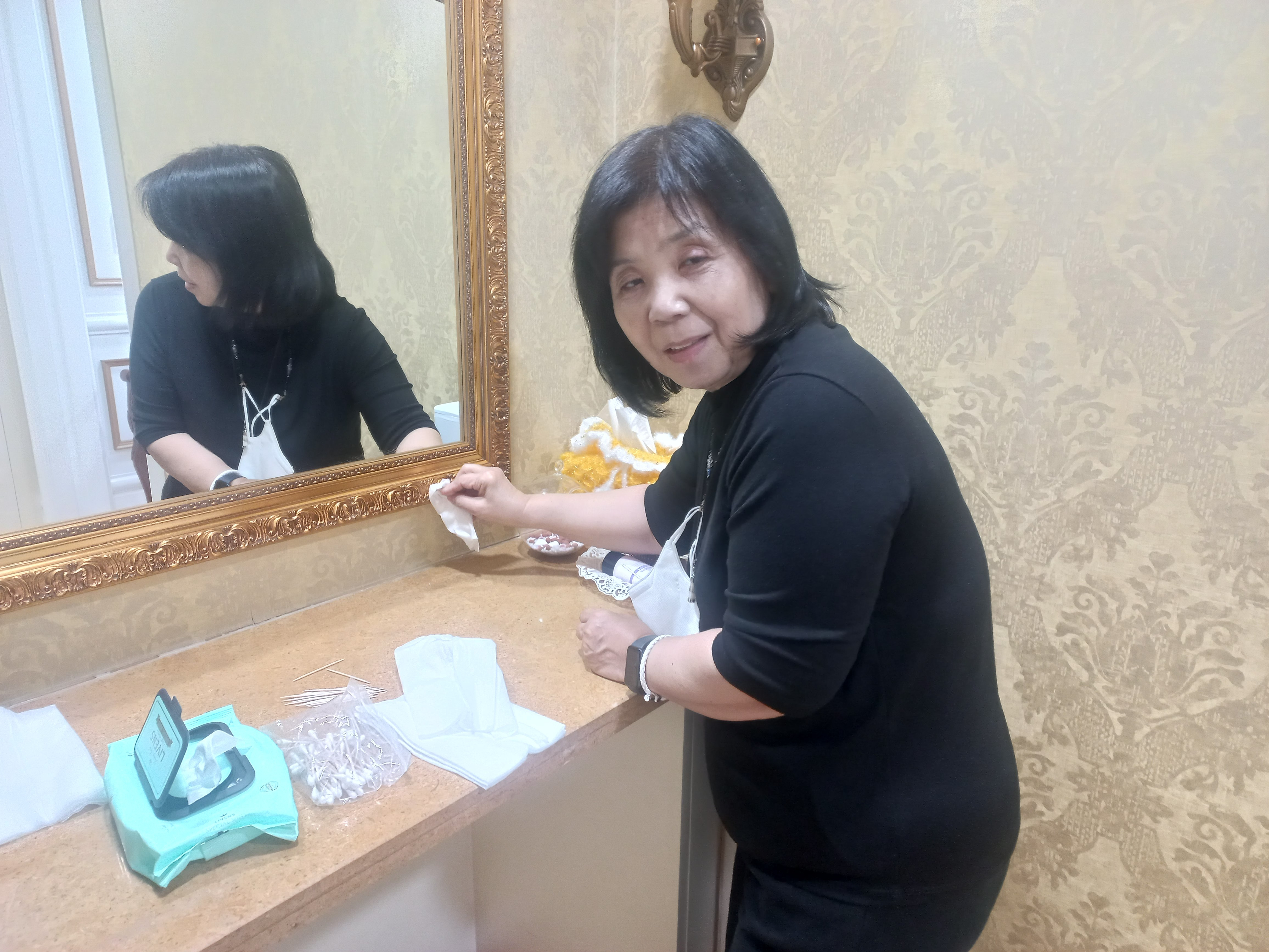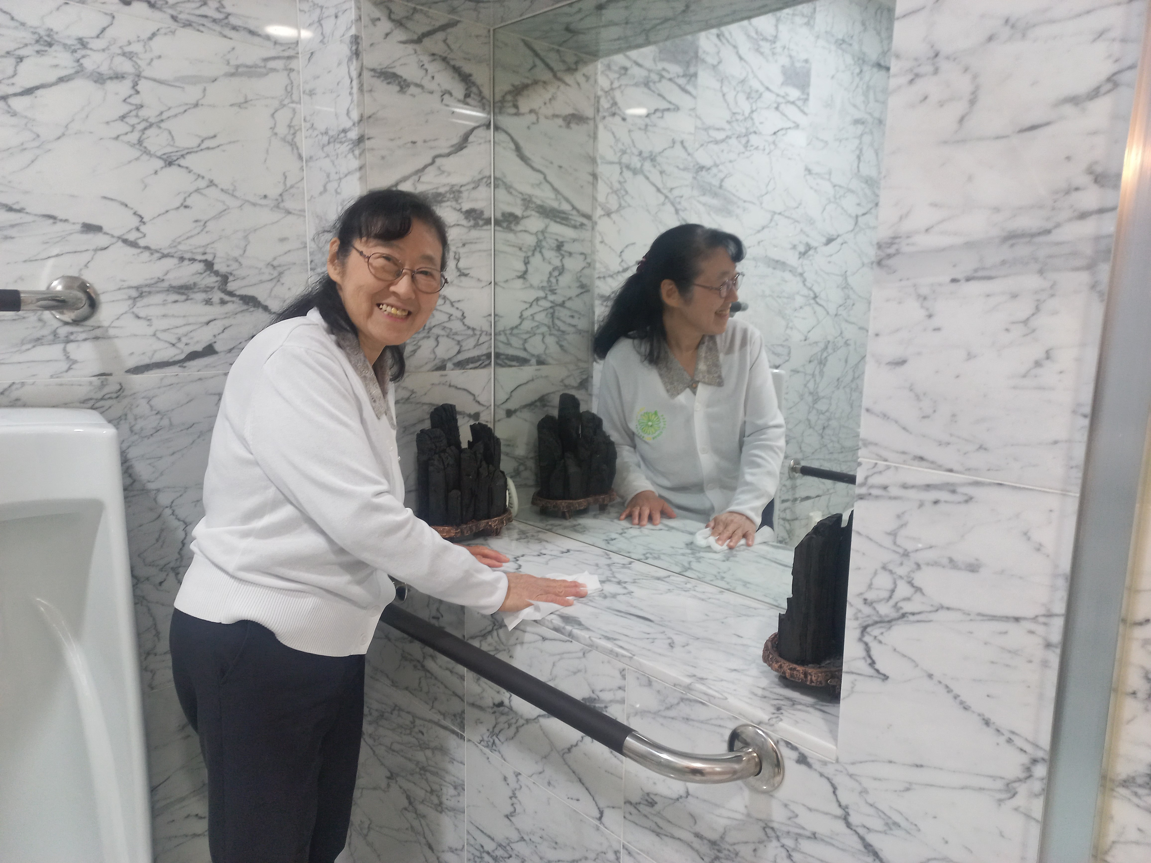 2층 공관 특별기도실에 있는 화장실 거울 액자 닦이, 화장대와 바닥 청소를 했습니다.