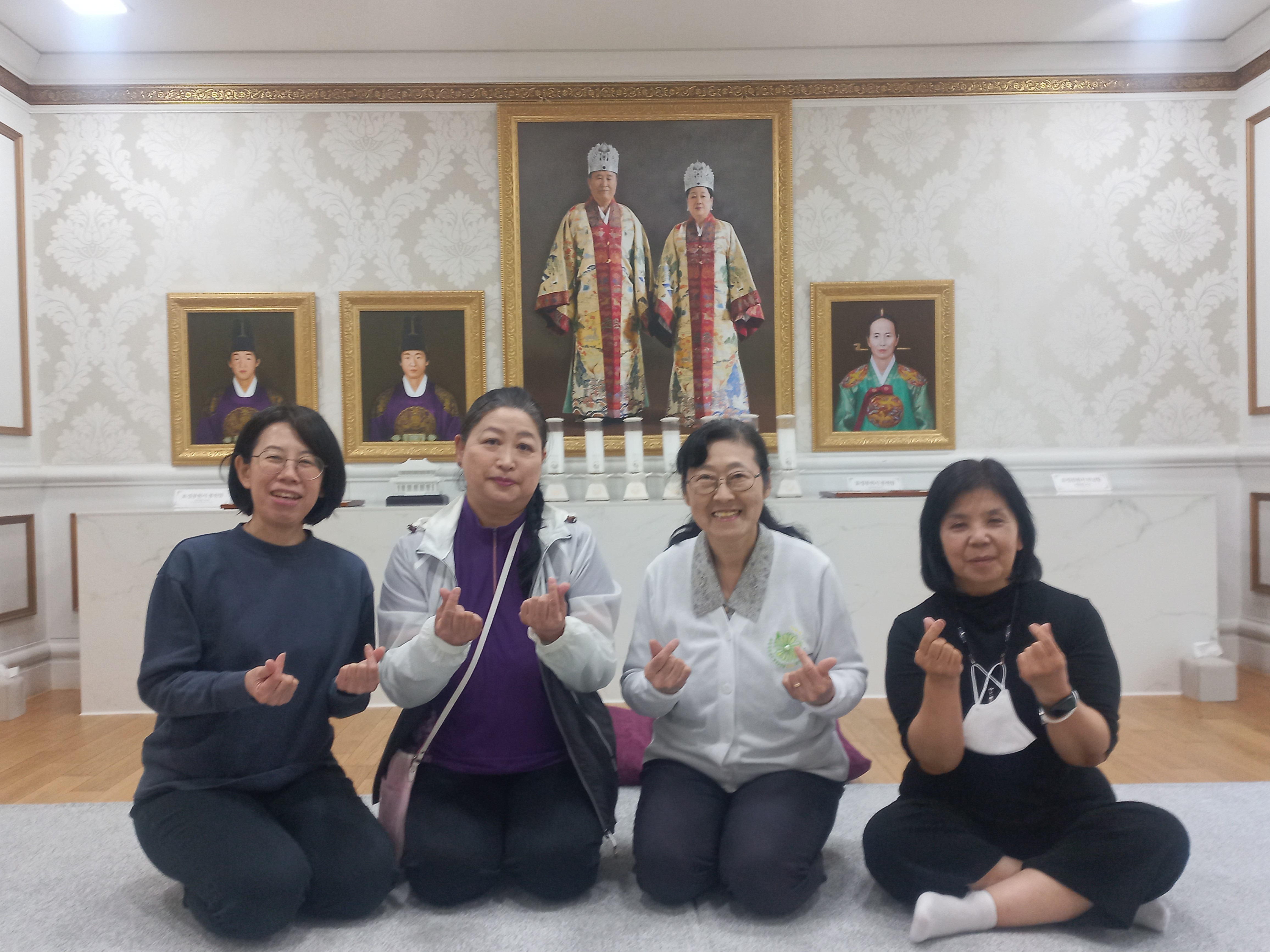 2층 공관 특별기도실에서 경배, '평화의 어머니' 자서전 훈독, 기도정성을 드리고